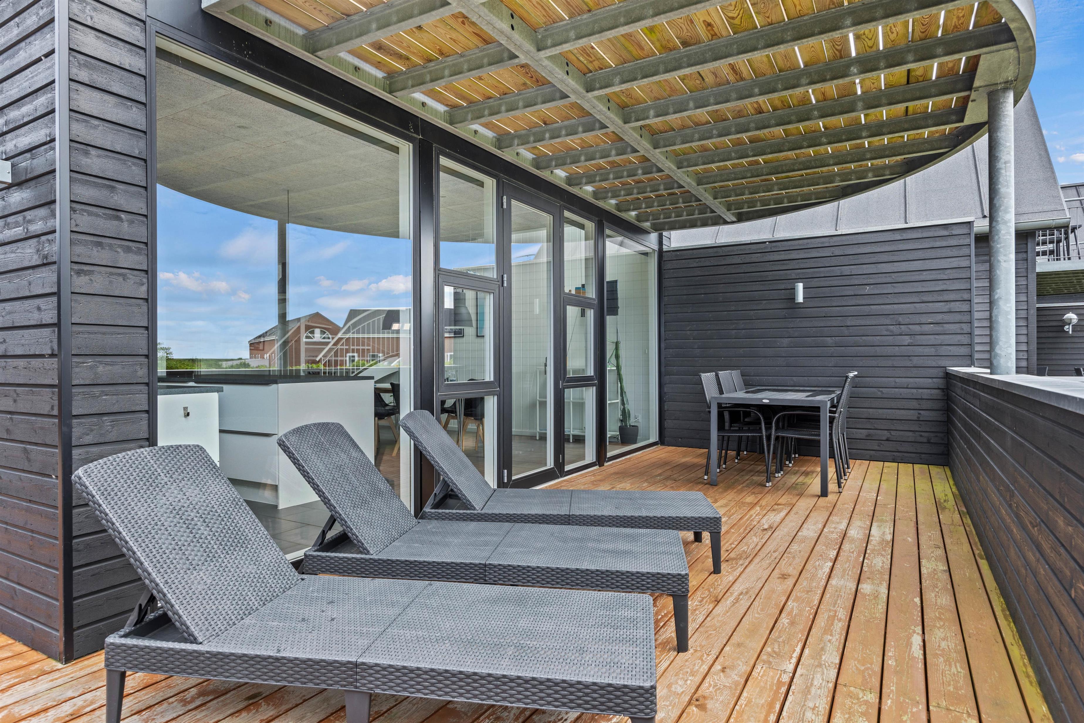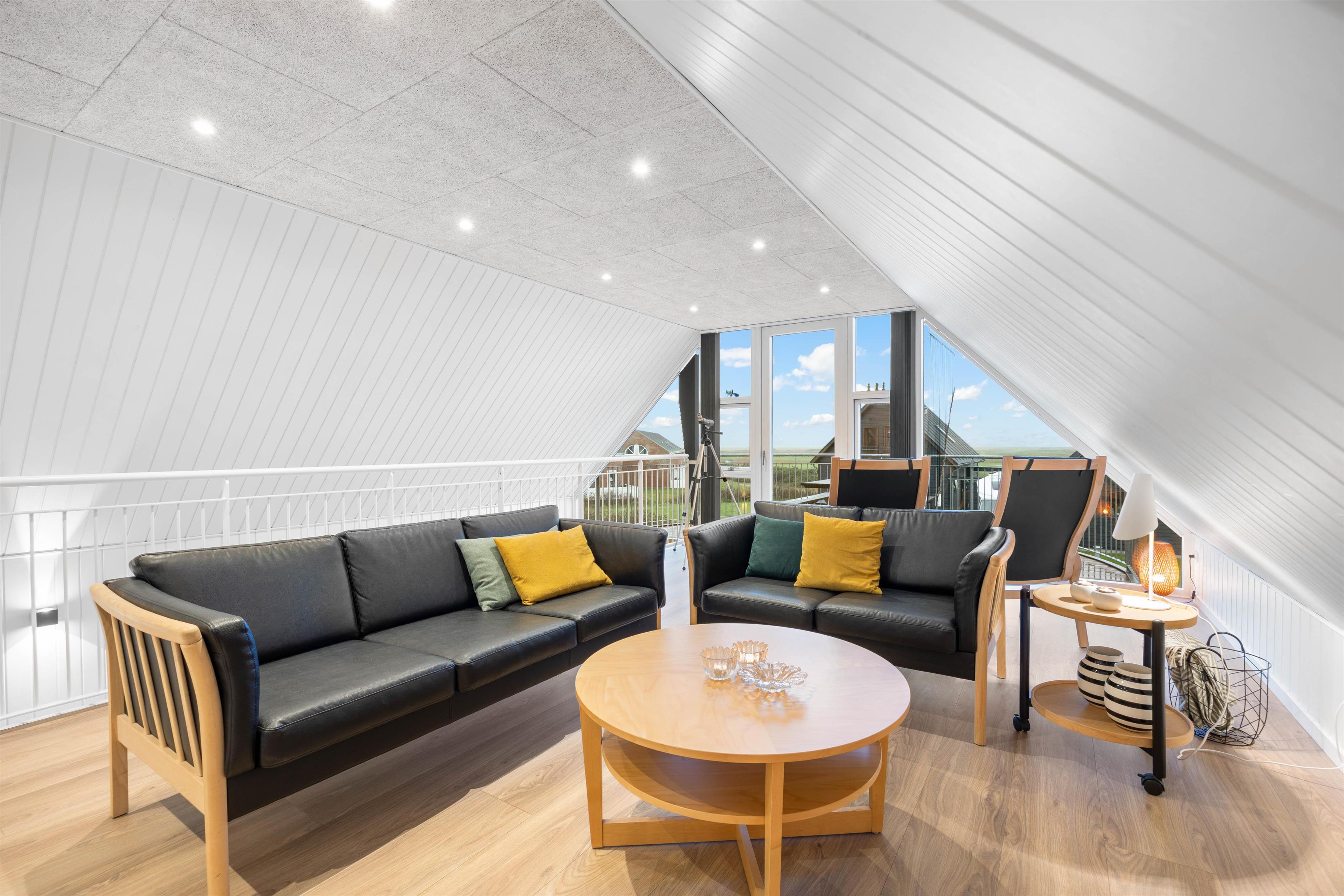 På terrassen kan I tage solbad på liggestolene eller slappe af i havemøblerne. Her er både vildmarksbad og sauna, så på kølige dage kan I blive varmet rigtig godt igennem samtidig med, at I nyder udelivet. Tænd op i grillen til aften og nyd et lækkert grillmåltid sammen, imens skyggerne bliver lange. I kan nå at opleve solnedgangen ved Vesterhavet – det er en imponerende oplevelse i al slags vejr.