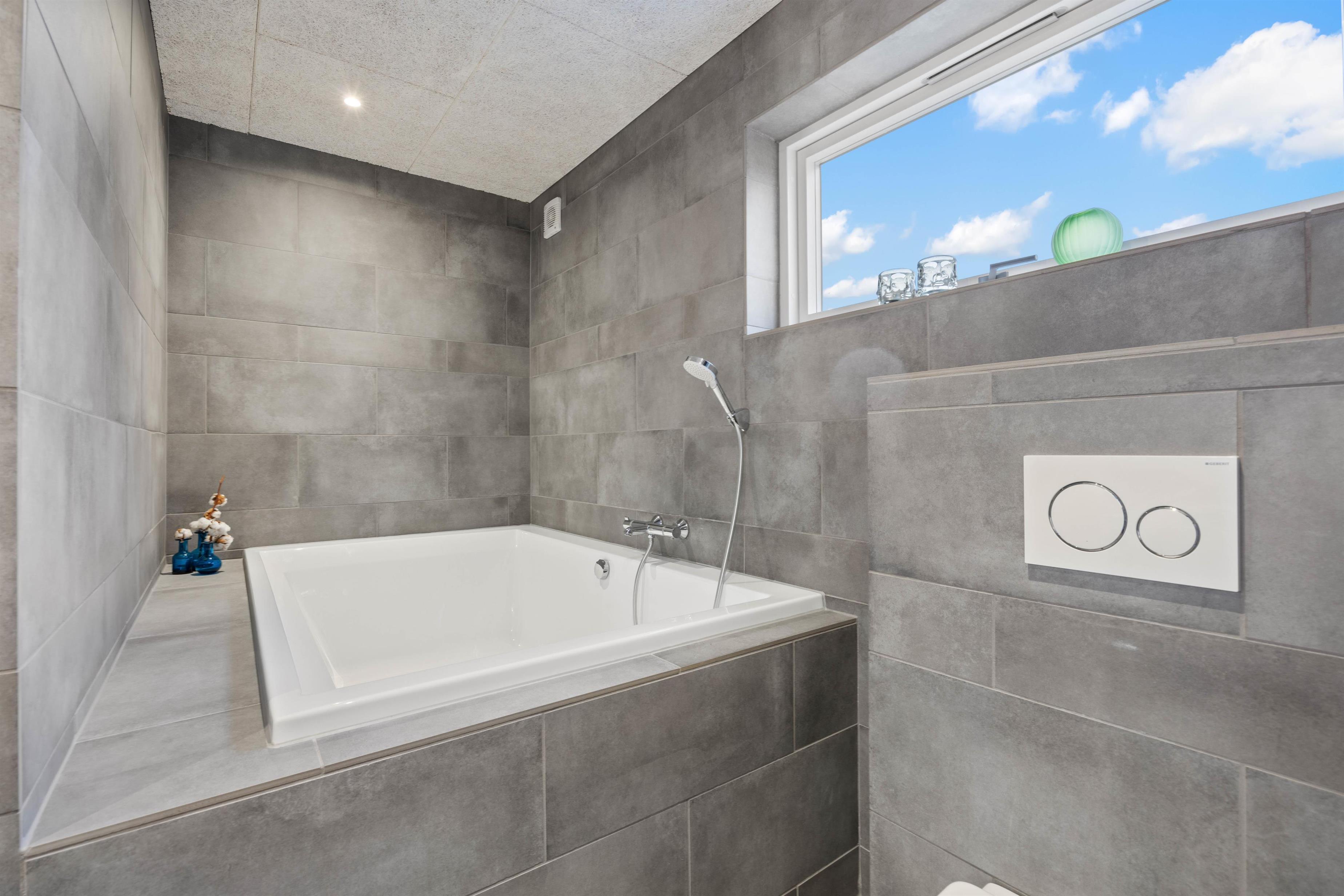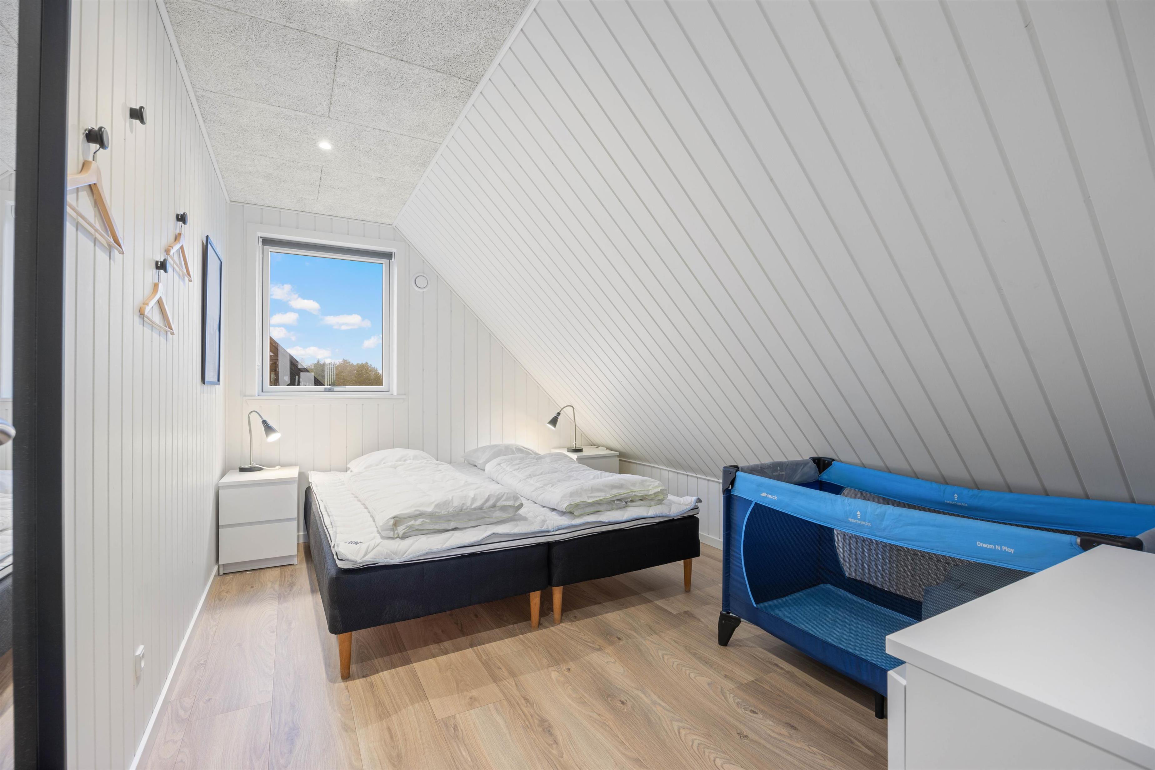 I det praktisk indrettede badeværelse er der både brusekabine og badekar. Den hyggelige stue med skråvægge på 1. sal har udgang til en skøn balkon med udsigt. I kan hygge jer sammen i sofagruppen eller trække jer tilbage i lænestolene med en god bog eller bare nyde udsigten. På balkonen kan I nyde solen og udsigten, imens I får en snak ved bord-bænkesættet. De 3 soveværelser er alle indrettet med komfortable dobbeltsenge. Det ene soveværelse ligger i stueetagen, de to andre på 1. sal, så I kan indrette jer, som det passer jer bedst. Der er barneseng til rådighed i feriehuset.