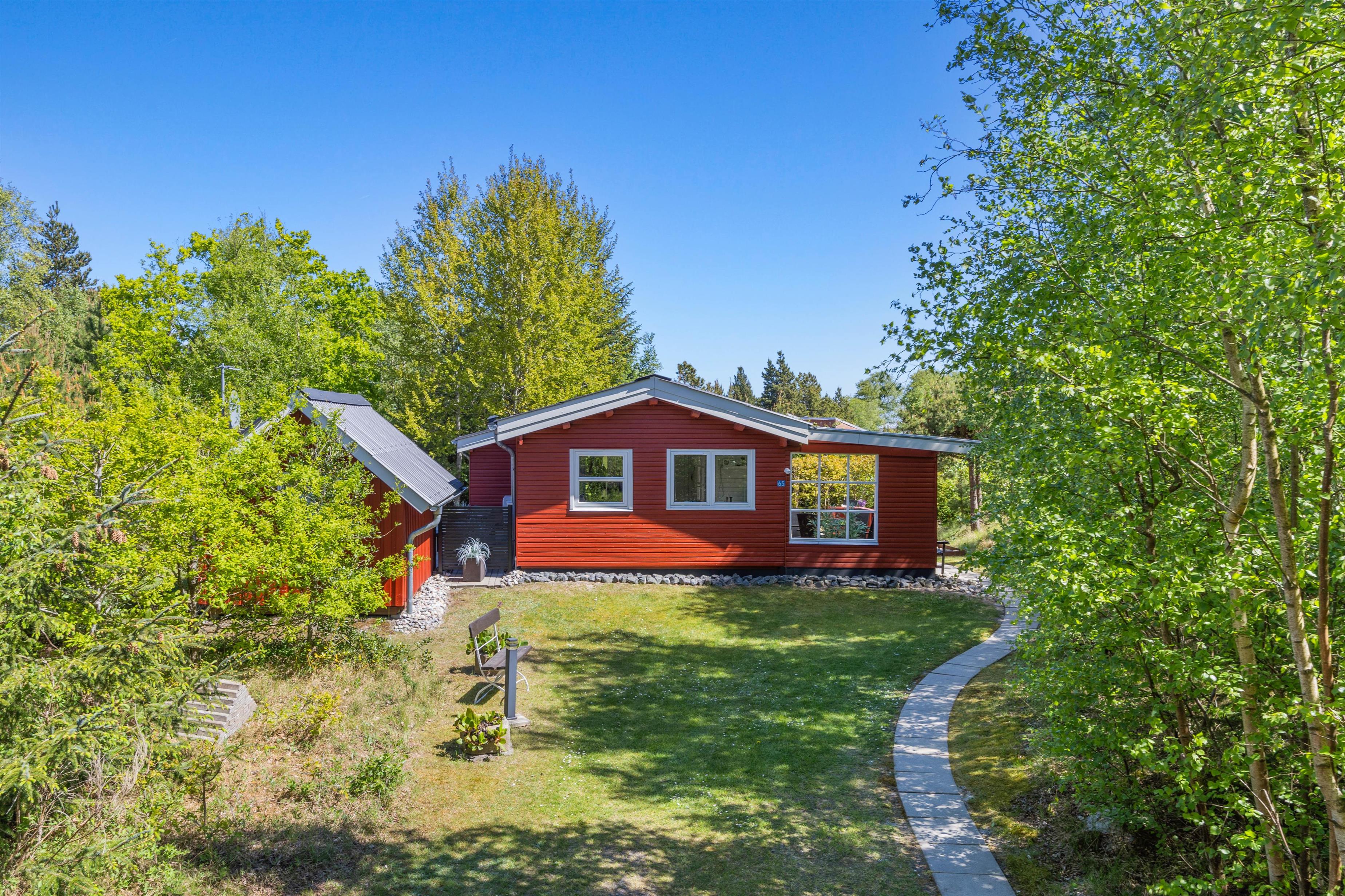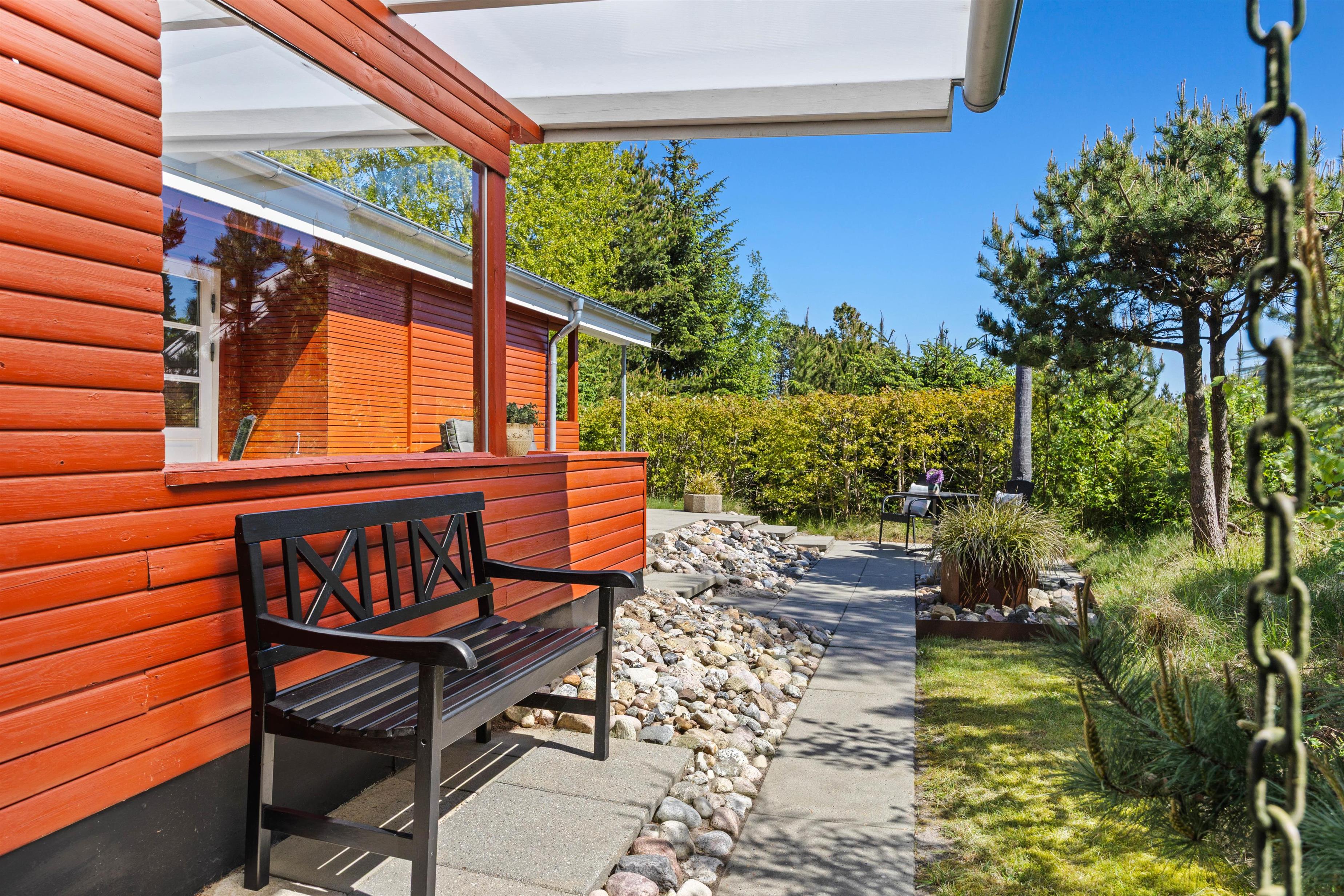 På den 1.470 m² store naturgrund kan I nyde den friske luft i fulde drag, og den delvist overdækkede terrasse indbyder til hyggelige stunder under åben himmel. Badeværelset er udstyret med gulvvarme for ekstra komfort.