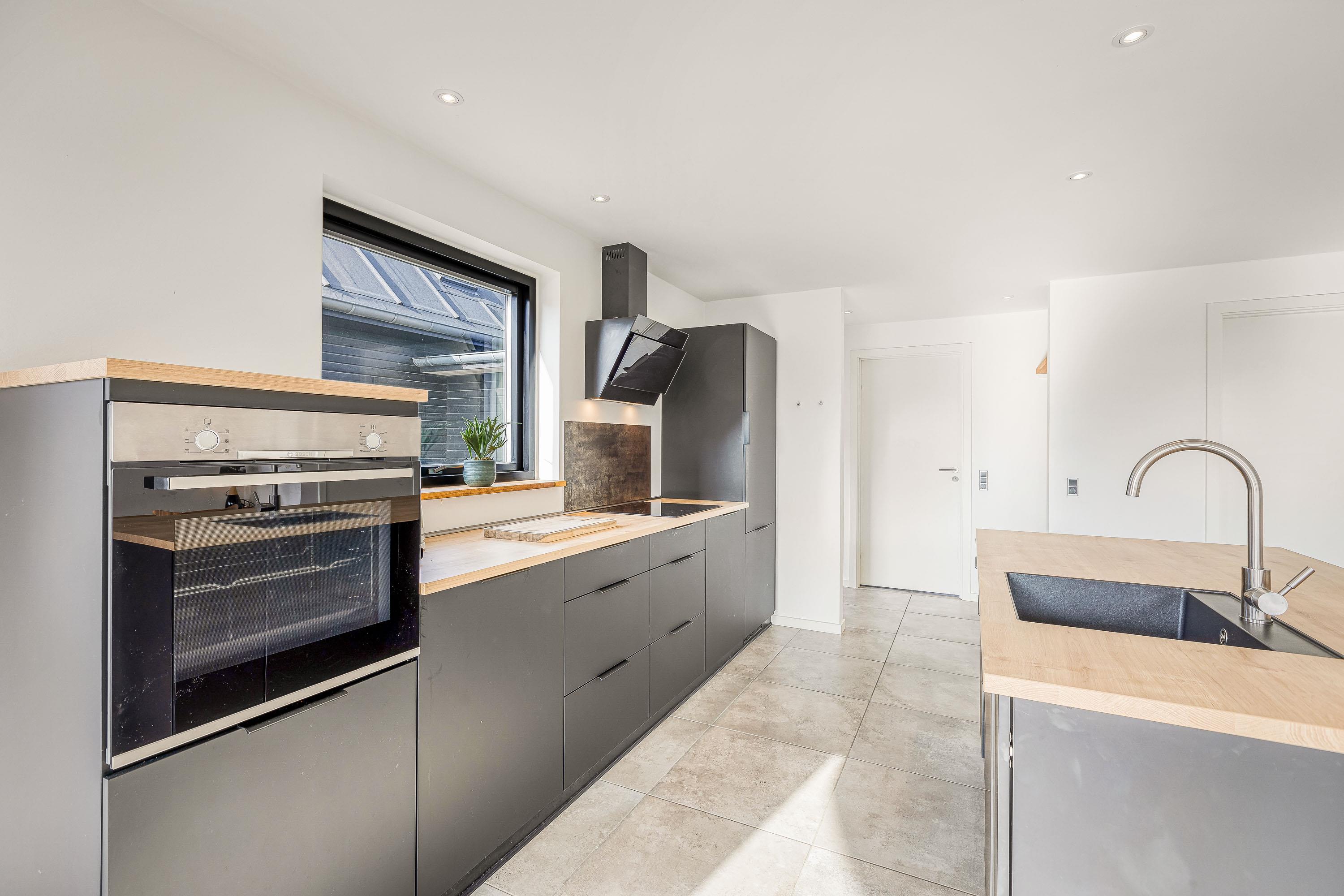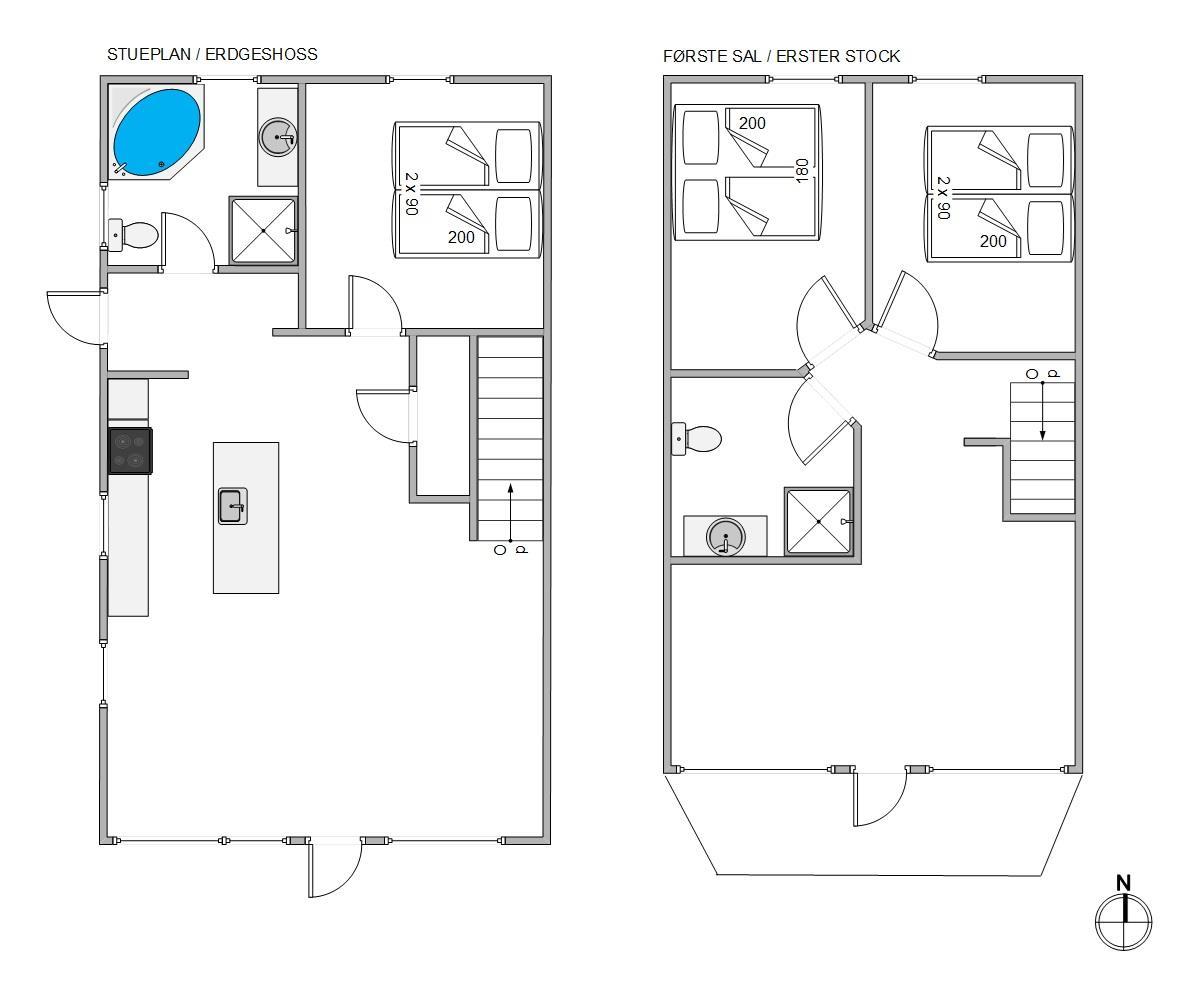 Inden døre i sommerhuset er både stueplan og førstesal. I stueplan finder I det store køkkenalrum, hvor hele familien kan samles, og nogen kan stå for madlavning i det indbydende køkken med opvaskemaskine, imens andre kan hygge sig med et brætspil ved spisebordet. I stueplan finder I også et fint badeværelse med gulvvarme og tilhørende tømmepsa, samt 1 ud af de 3 soverum.