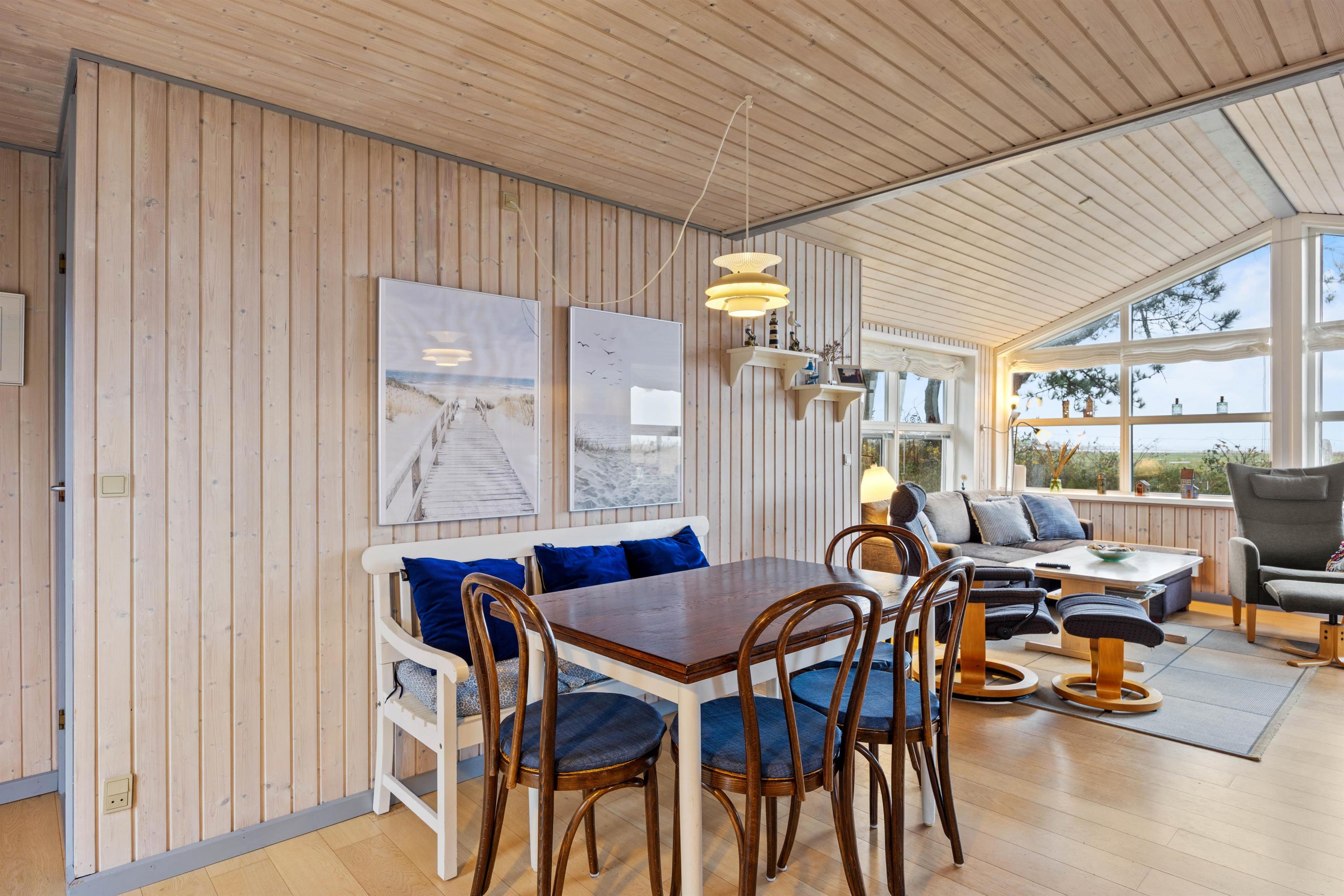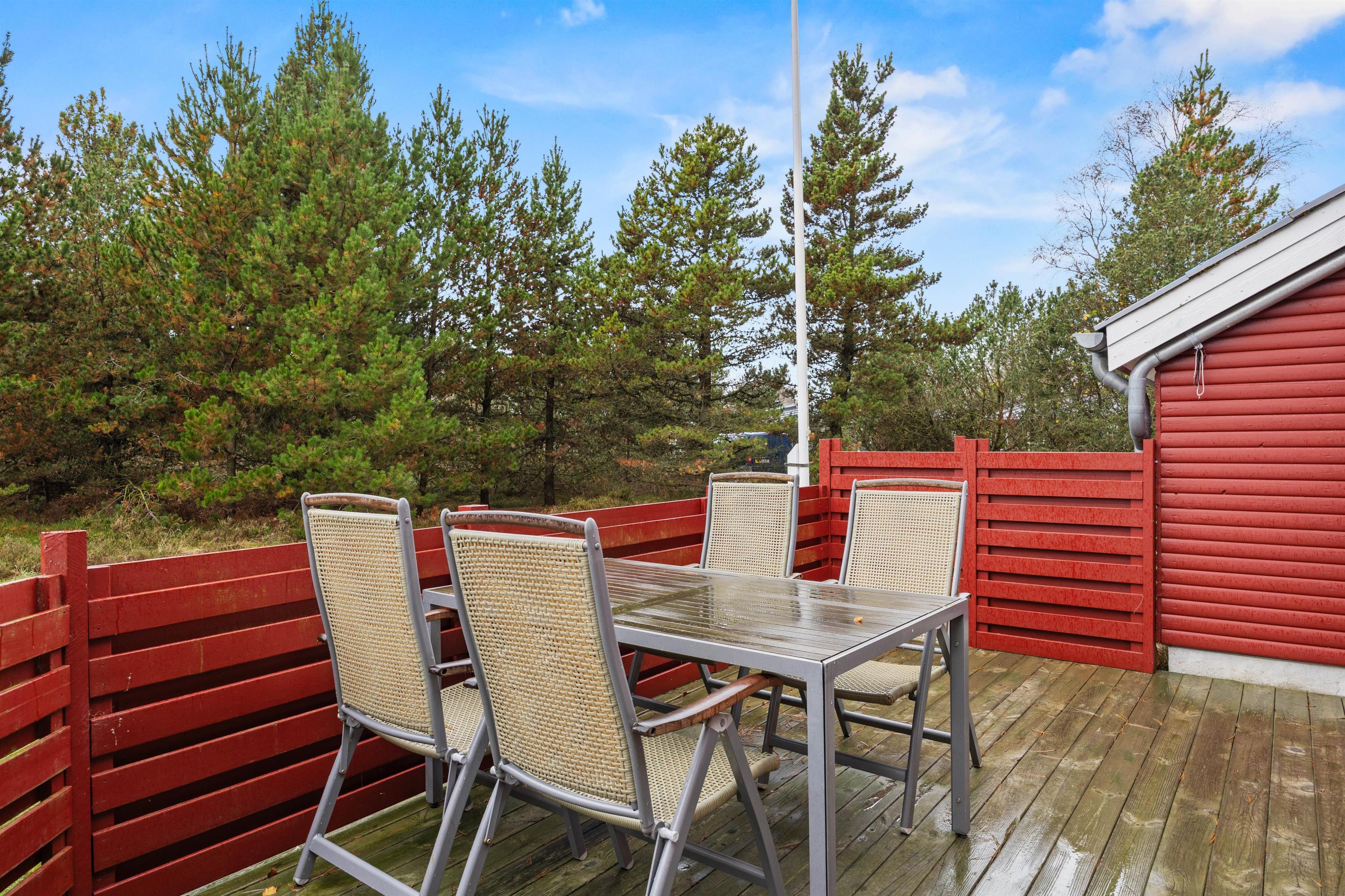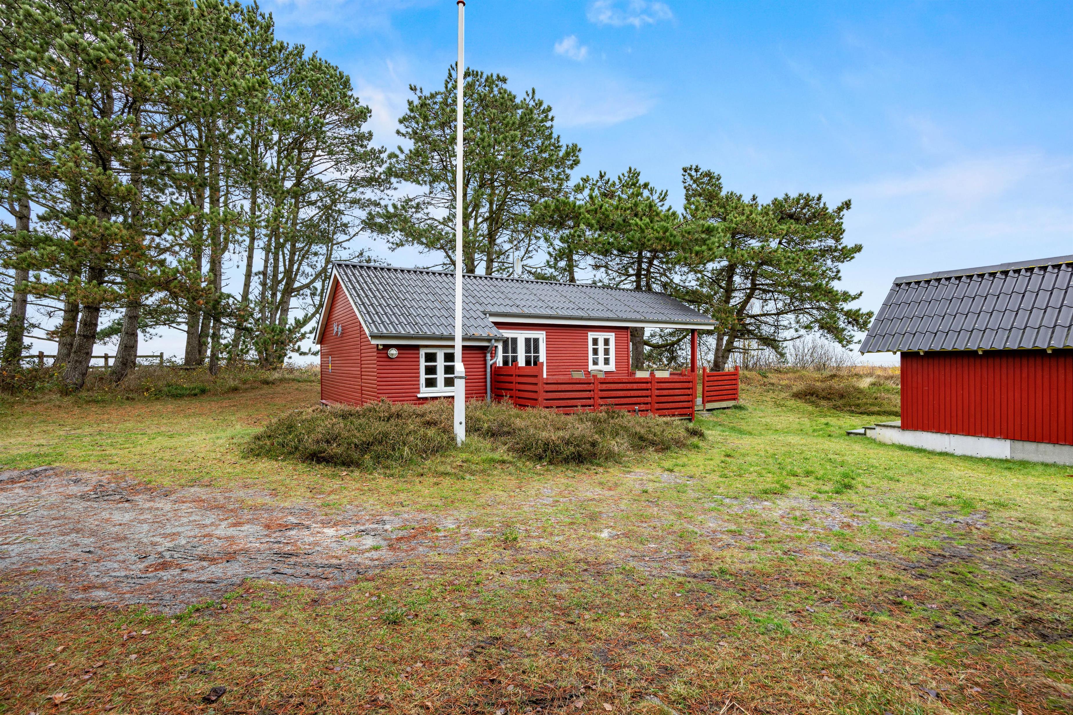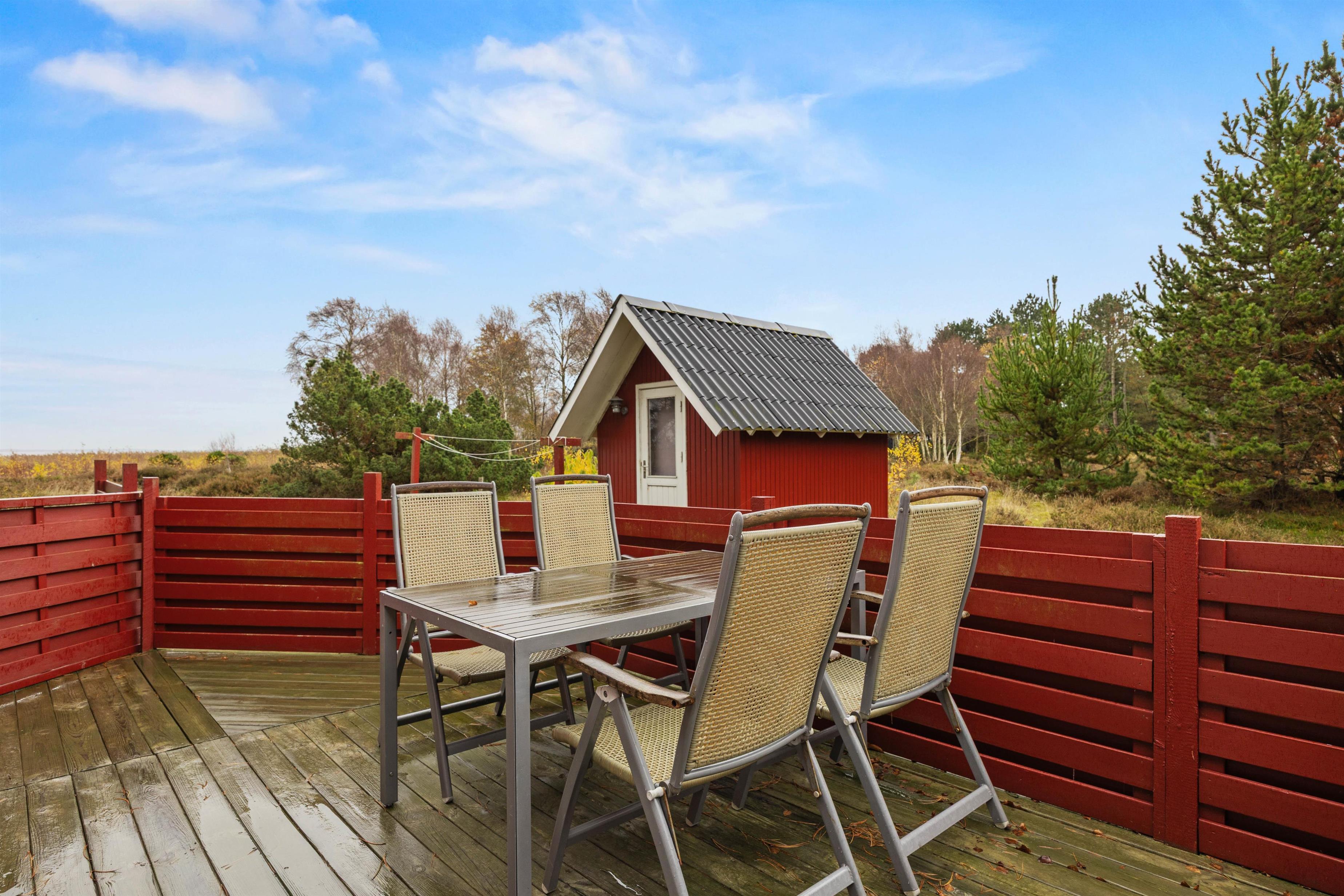 Den 900 m² store naturgrund giver masser af plads til både leg og ro. Børnene kan more sig i gynge og sandkasse, mens de voksne nyder roen på terrassen med komfortable havemøbler og grill. Den friske Nordsø-luft, stjerneklar himmel og lyden af bølger skaber den perfekte ramme for hyggelige timer sammen. Fra grunden kan I nyde panoramaudsigten over næsten uberørt natur, og med kun 4 km til Sønderstranden er der let adgang til stranden.