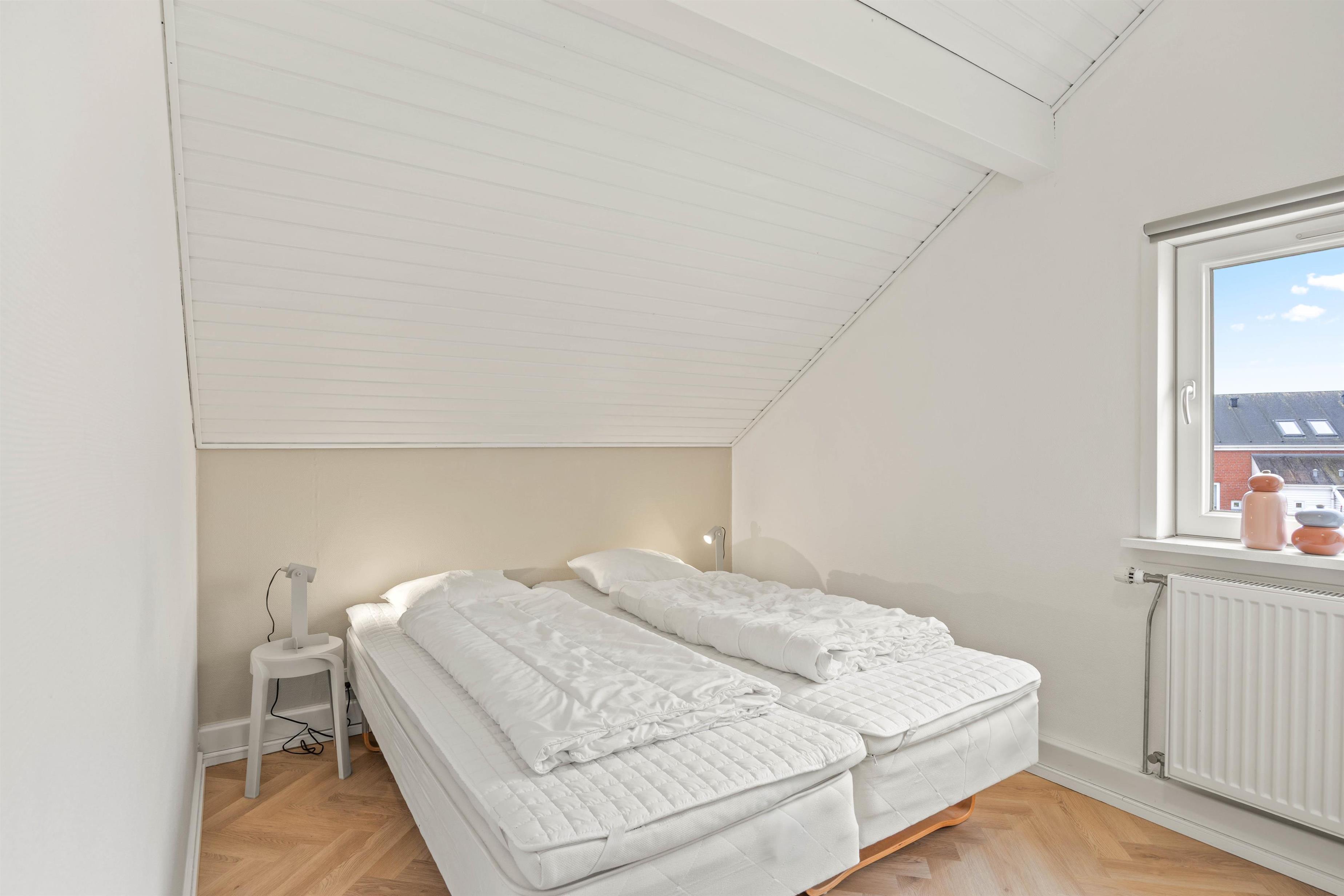 I forbindelse med stuen ligger der et lille soveværelse med en enkeltmandsseng. På første sal finder du to komfortable soveværelser. Det ene soveværelse er indrettet med en dobbeltseng, der sikrer en god nattesøvn. Det andet soveværelse har to enkeltsenge, begge værelser er smagfuldt indrettet og tilbyder privatliv og ro. På første sal er der også et badeværelse med en rummelig brusekabine samt vaskemaskine, så tøjet kan vaskes, hvis der kan vaskes tøj ved behov.