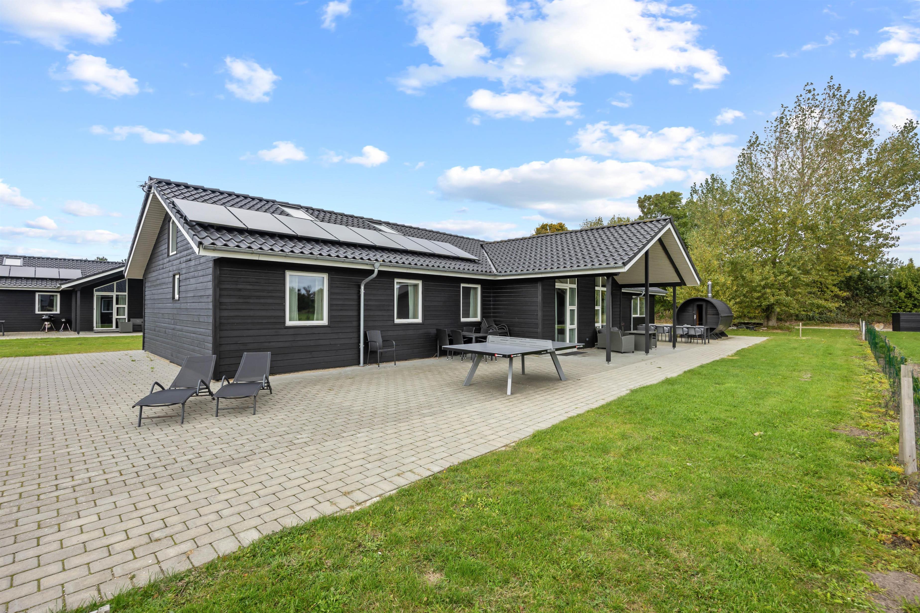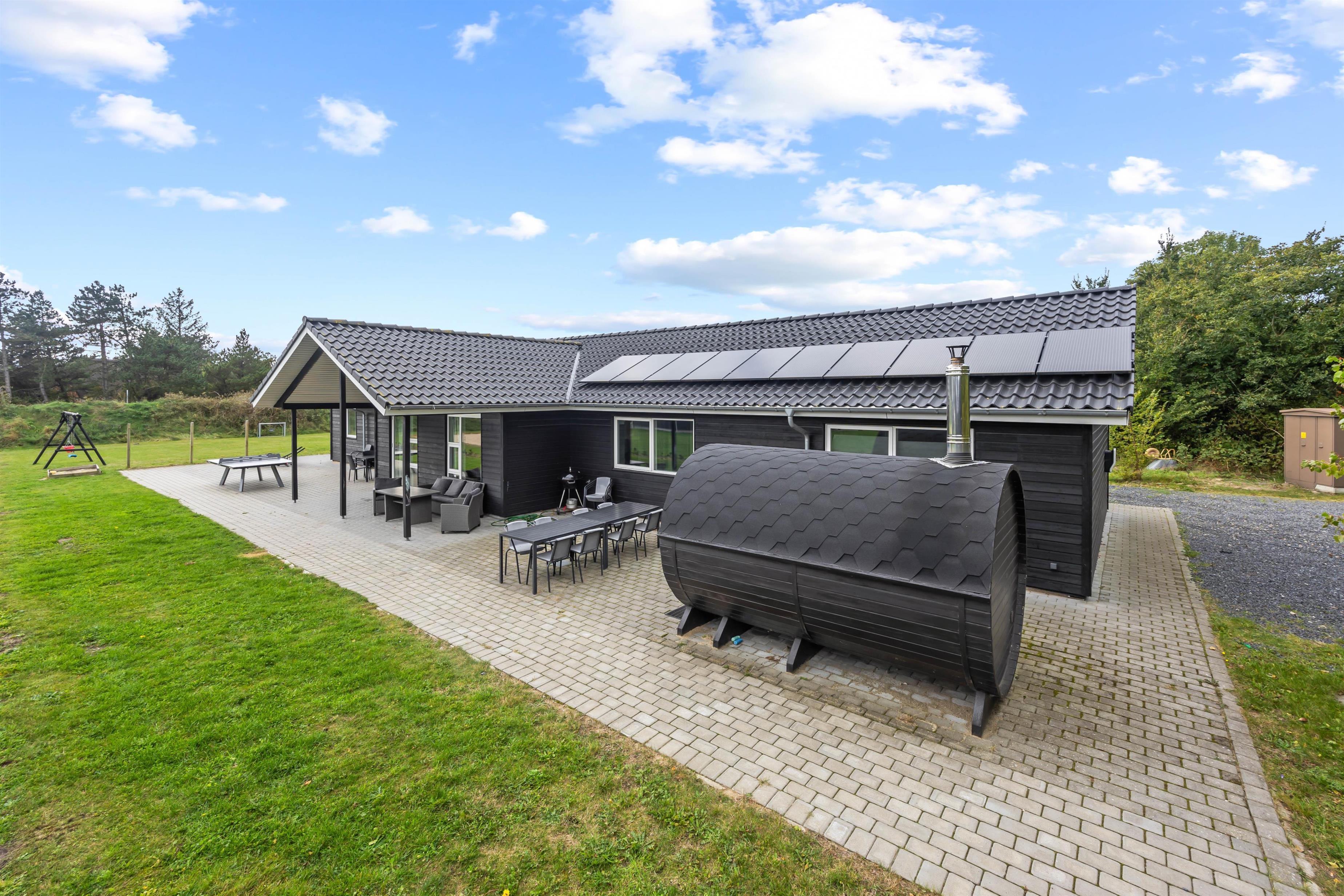 Dette 4-stjernede feriehus lover et uforglemmeligt ophold med moderne komfort. Ud over vaskemaskine og tørretumbler er der også en ladestander til elbiler, og den obligatoriske slutrengøring afspejler den høje standard af boligen. Et aktivitetshus på grunden efterlader intet tilbage at ønske, så I er godt underholdt selv i dårligt vejr.