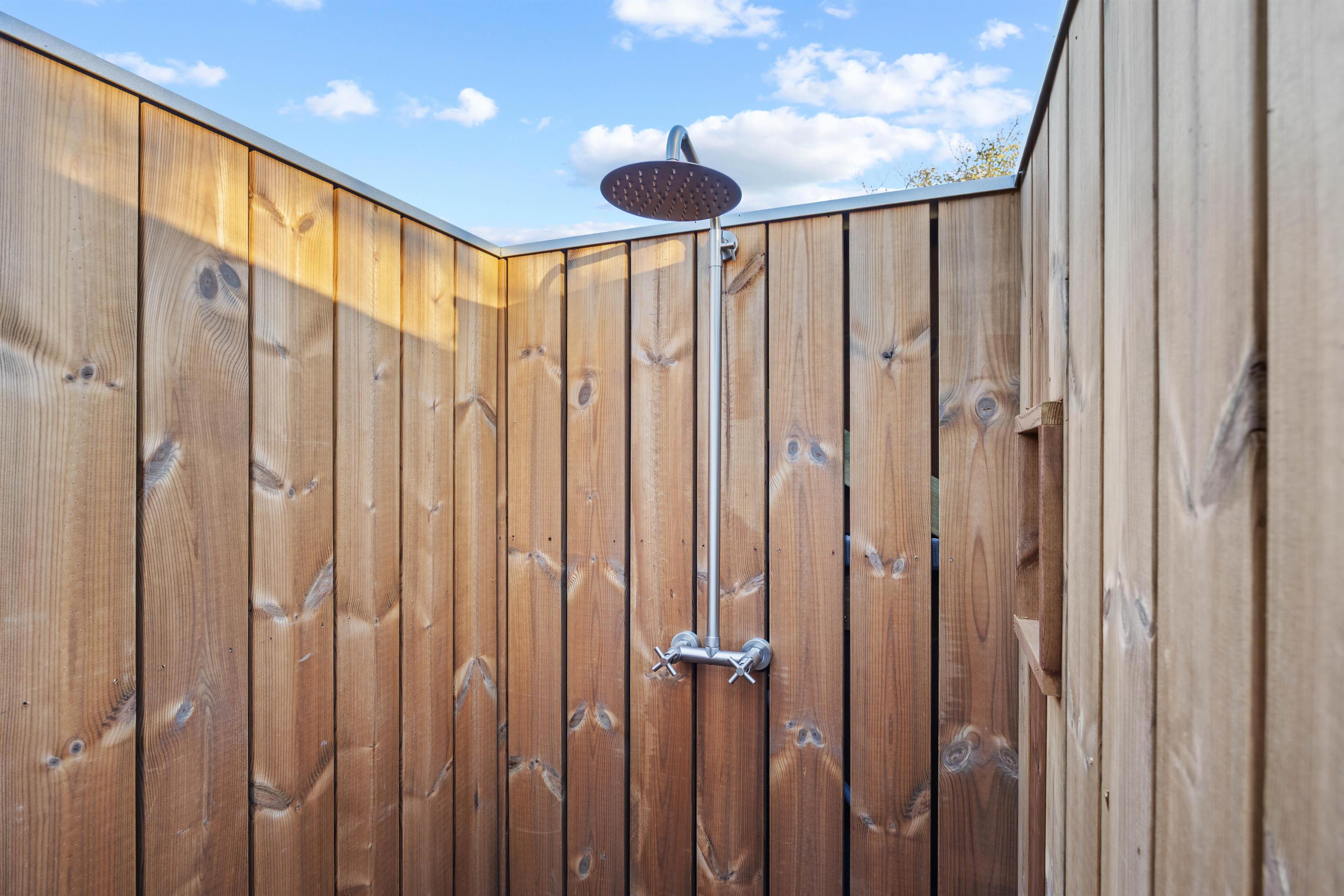Praktisk finder I udenfor en fin privat udendørs bruser, så I let kan skylle sandet af kroppen efter en tur i havet. Udebruseren kan benyttes fra april til november-måned.