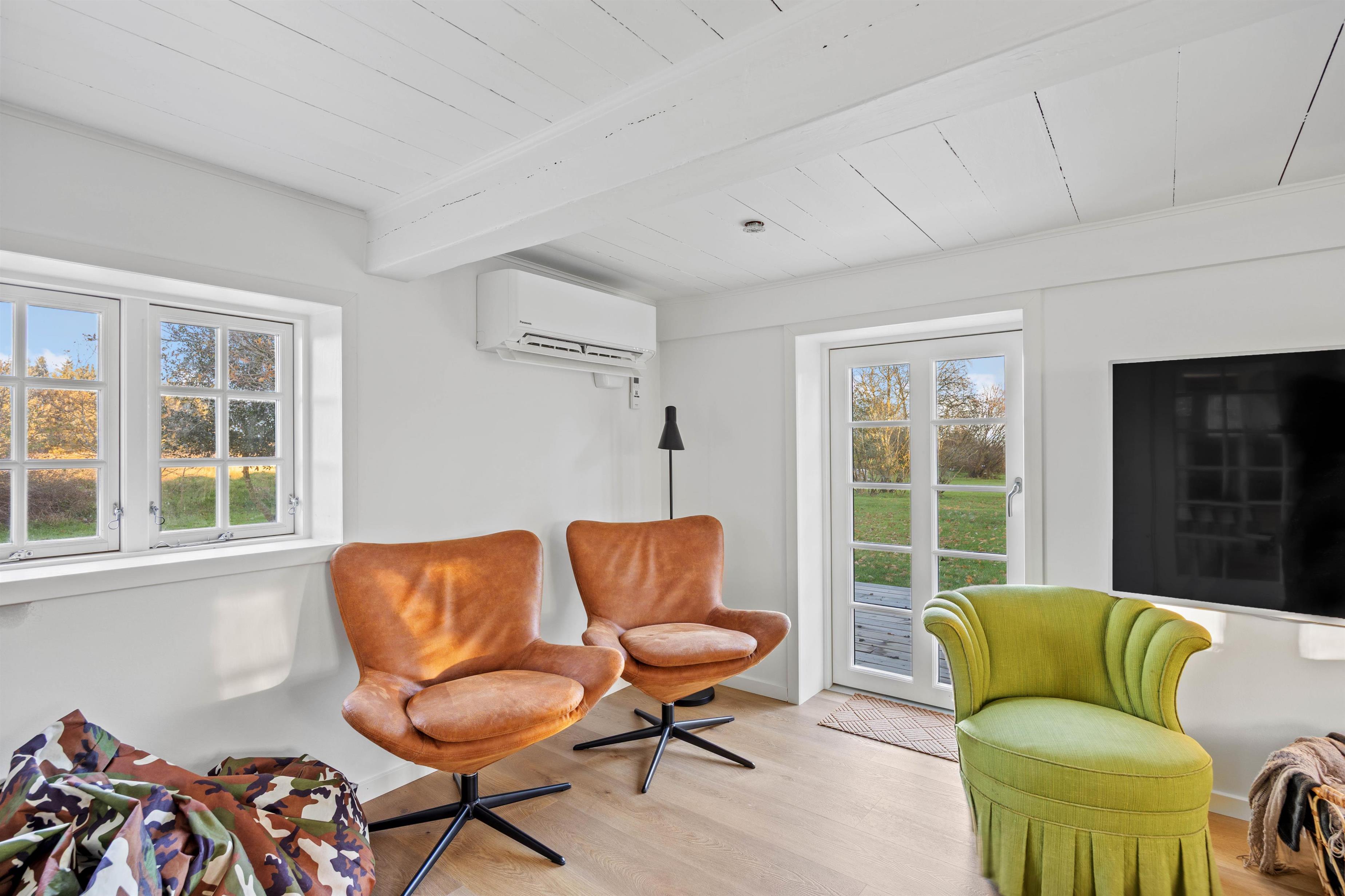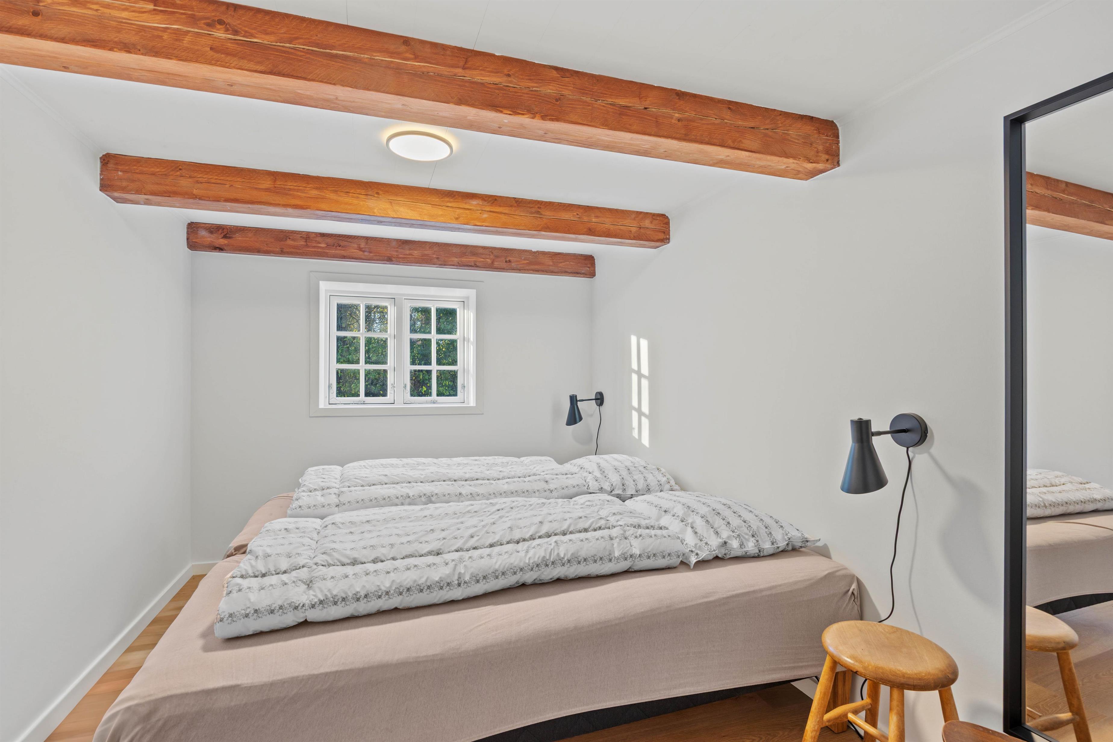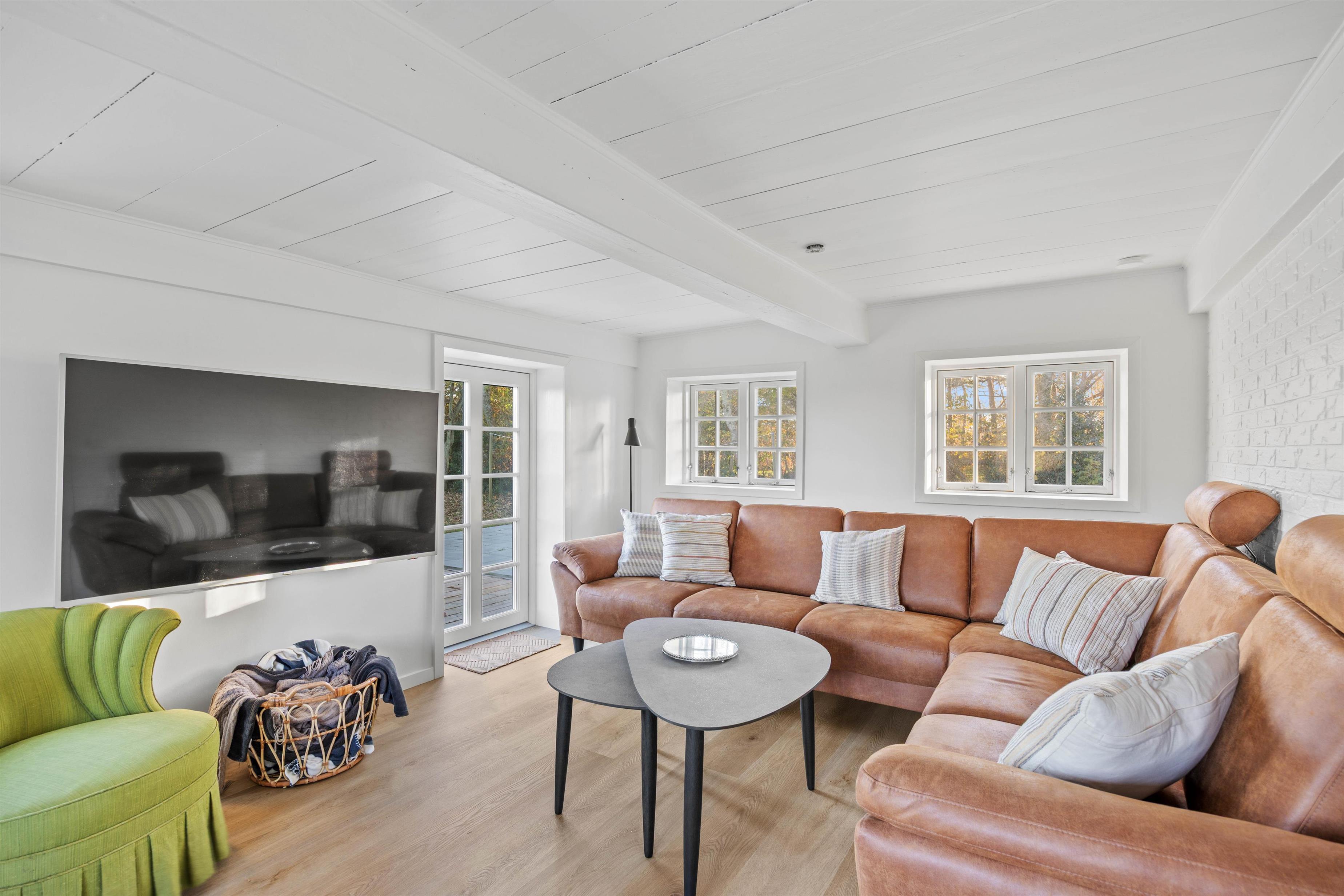 Velkommen indenfor på Borrebjergvej 5A. Et smukt sommerhus med moderne faciliteter og indretning, hvor de romantiske detaljer, som sprossevinduer og smukke loftsbjælker, giver feriehuset sin charme.