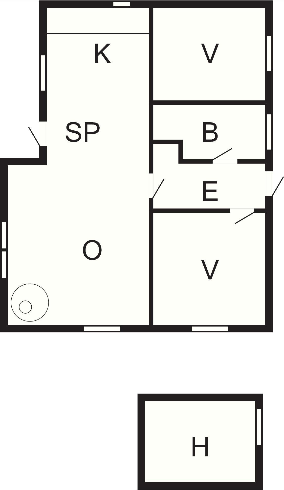 Ved Havnsø Strand, tæt på havet, finder I dette sommerhus med to gode soveværelser samt en god hems, flot badeværelse samt godt, kombineret køkken og alrum. Gode terrasser samt en lille låge fra haven der fører ud til sti direkte til havet. Sommerhuset har også udebad. Der er aftageligt hegn ind til nr. 12, som også udlejes hos Vi (husnr. 65872).