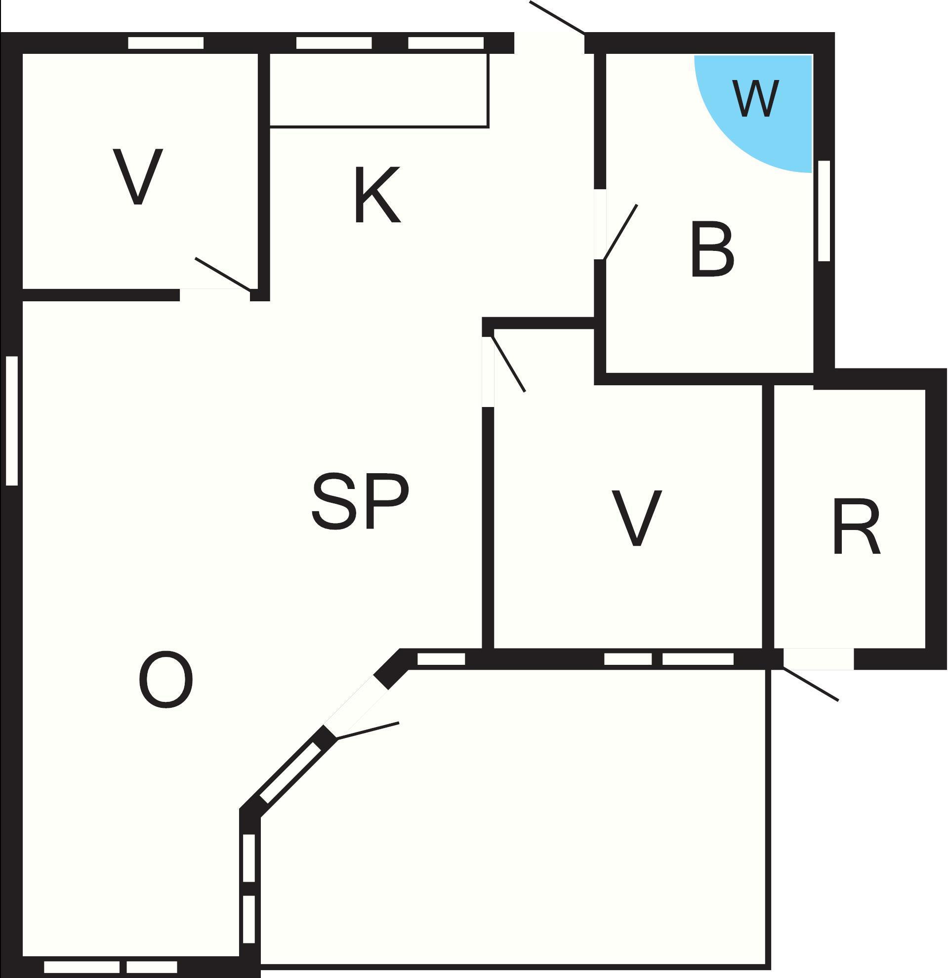 1 Opholdsstue: Brændeovn, radio, tv, høj stol