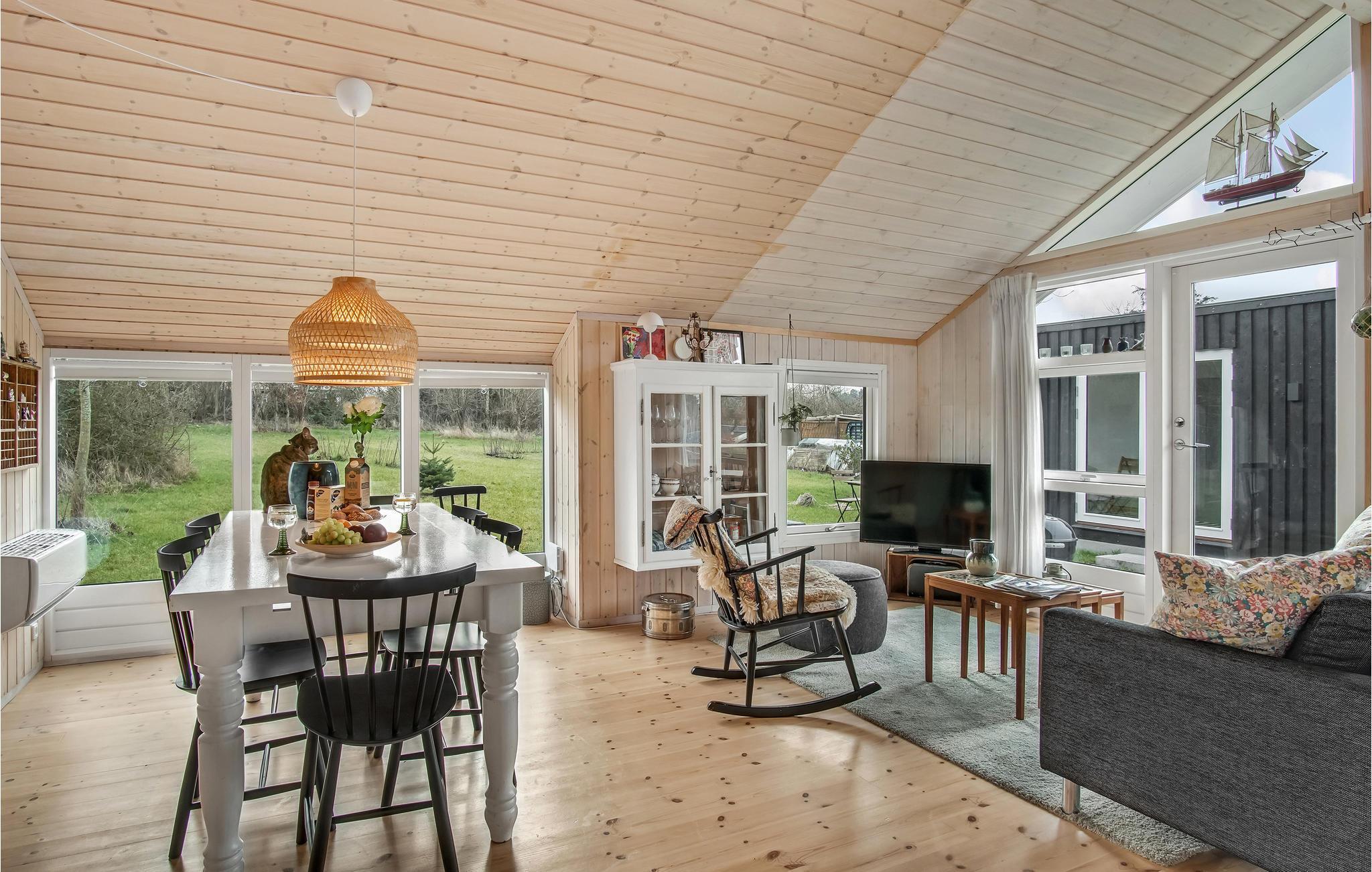 Nyd jeres ferie med familien i dette hyggelige feriehus i et grønt sommerhusområde. Hovedhuset byder jer velkommen med alle de faciliteter I behøver for at føle jer godt tilpas. Sæt jer godt til rette i gyngestolen eller sofaen, se en god film, spil kort eller lav jeres yndlingsretter i køkkenet. Husets kærlige indretning bidrager til den hyggelige atmosfære. Om natten kan I nyde jeres privatliv og slappe af i soveværelserne i både hovedhuset og annekset. Nyd jeres måltider på terrassen eller i haven og fang de første solstråler. Se jeres børn lege i haven, mens I nyder jeres kaffe i fred.