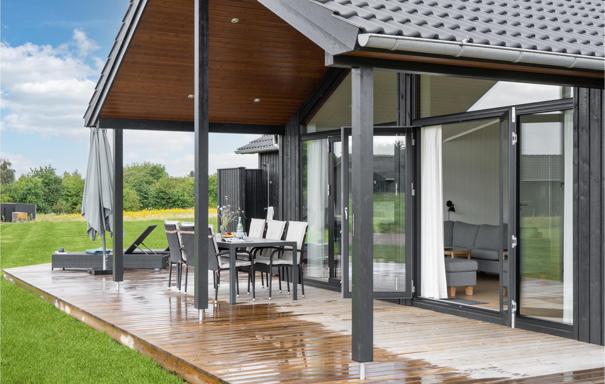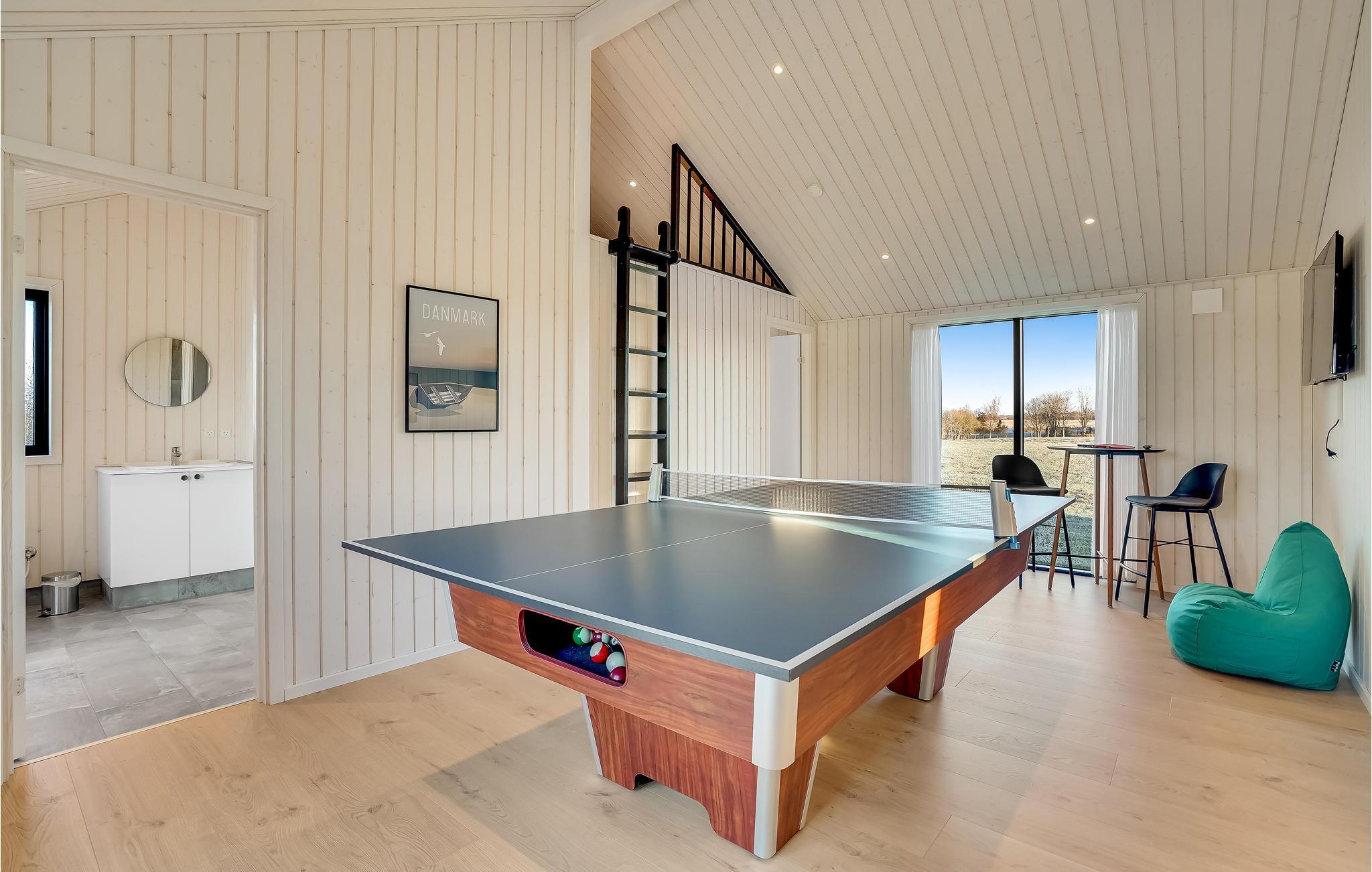 De lyse, komfortabelt indrettede værelser danner de ideelle rammer for en hyggelig stund sammen. Efter en begivenhedsrig dag kan I slappe af i en hyggelig atmosfære på den rummelige sofa, få gang i cirkulationen med et spil bordtennis efter middagen, eller se en film sammen. Efter en lang gåtur på stranden kan I nyde den beroligende varme i saunaen. Nyd solen og slap af i de komfortable liggestole på terrassen og lad blikket vandre hen over landskabet. Senere samles hele familien ved det udendørs spisebord og laver lækre retter på grillen – sådan bliver de lange sommeraftener til en sand fornøjelse.