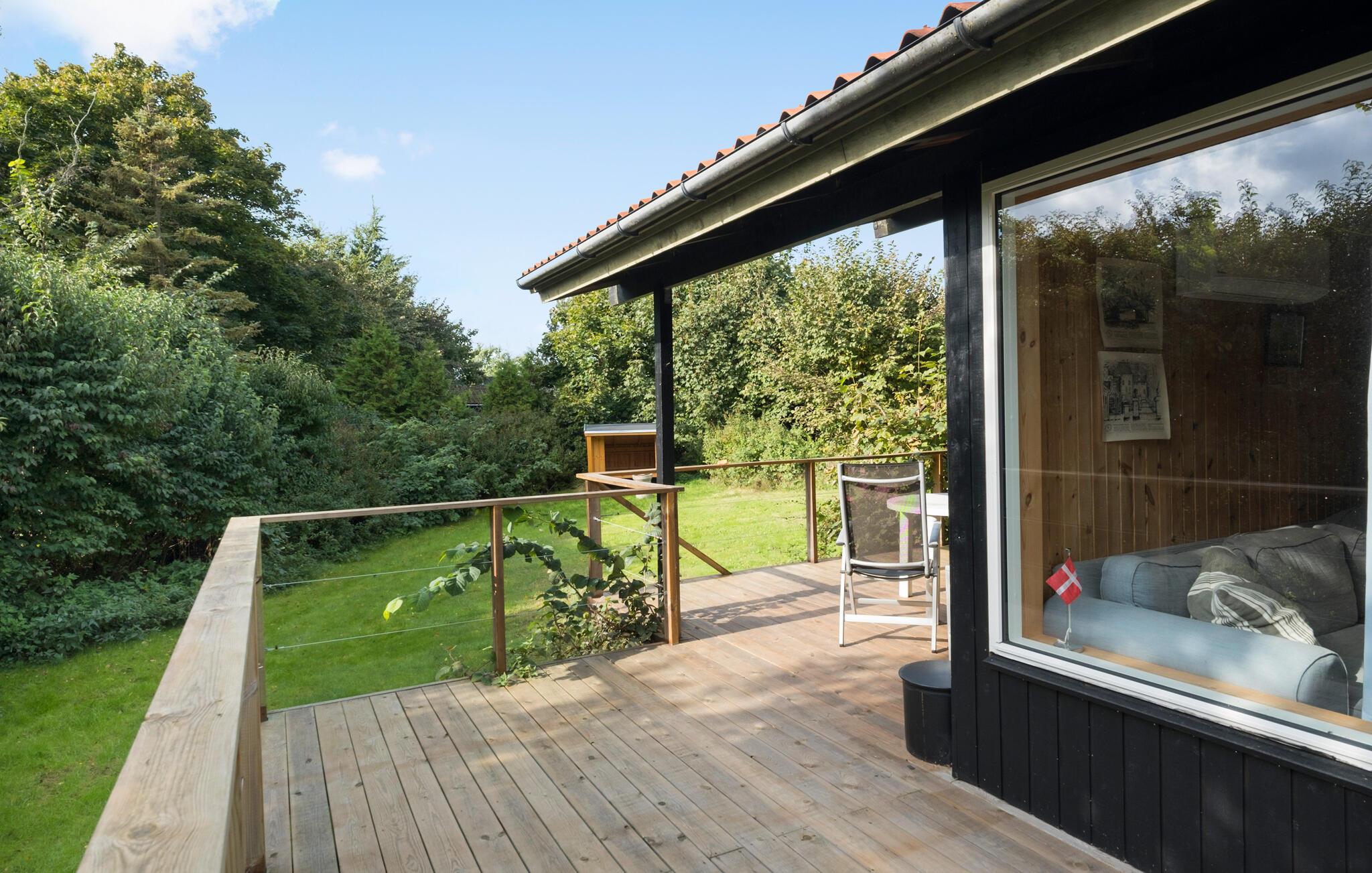 Hyggeligt feriehus ved Havnsø Strand med overdækket terrasse og tæt på smuk natur og fiskemuligheder.