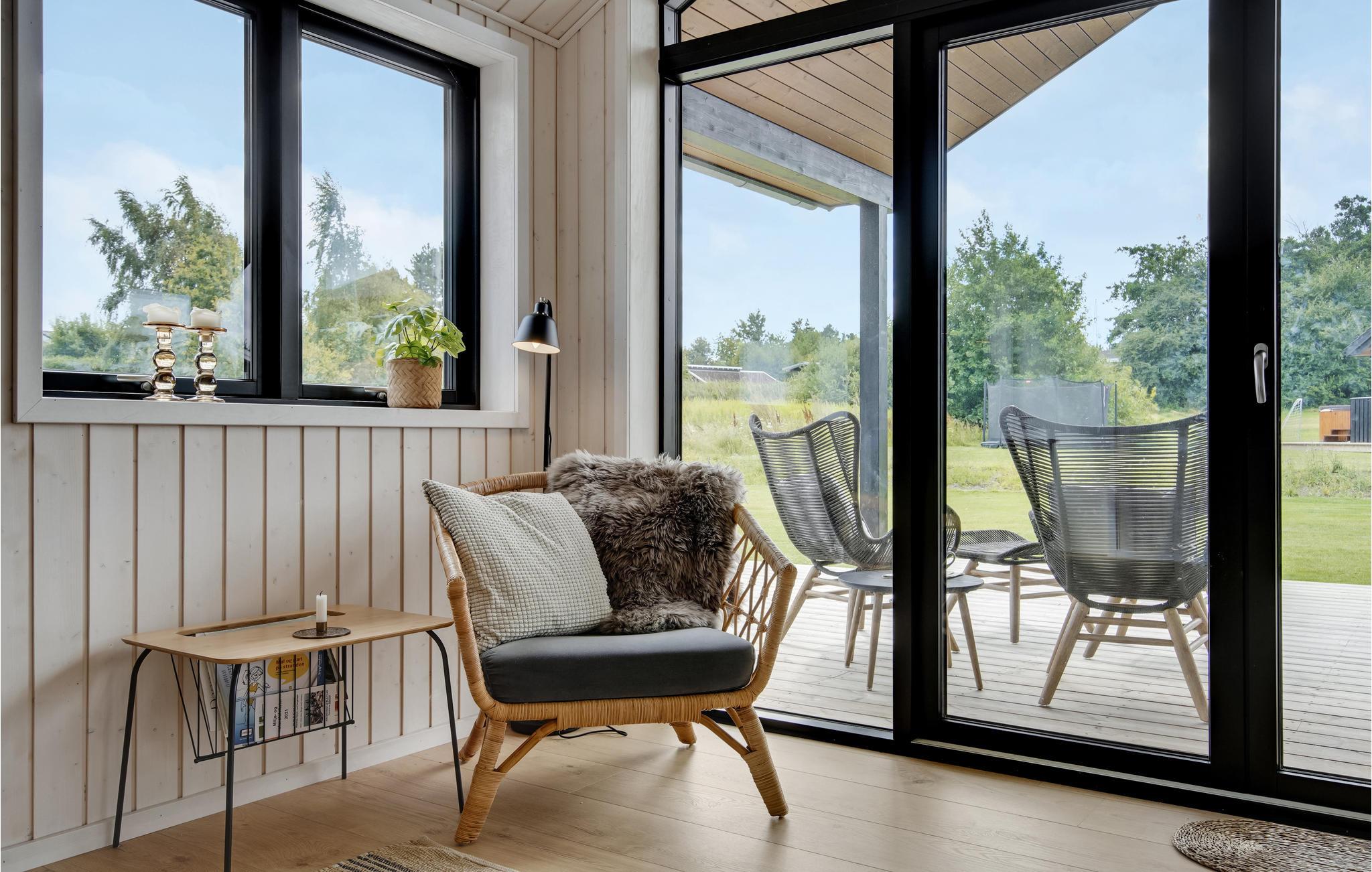 Der er lagt op til nogle skønne dage i fredfyldte omgivelser ud til Nekselø Bugt. Her ligger dette strømlinede, moderne sommerhus, som emmer af ro og komfort. Stilen er enkel og klassisk i sort/hvide kontraster, og der er gjort brug af lækre materialevalg i samtlige rum.