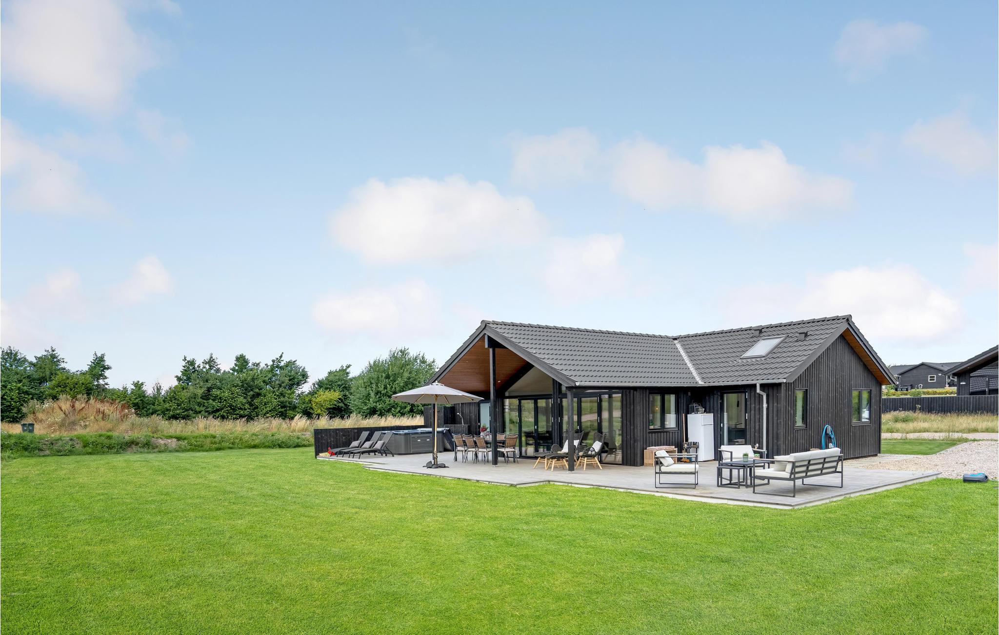 Udenfor fortsætter husets flotte faciliteter, lige fra havemøblerne til liggestolene og en standvandsspa, så mon ikke en god del af timerne bliver brugt her i sommerhalvåret.