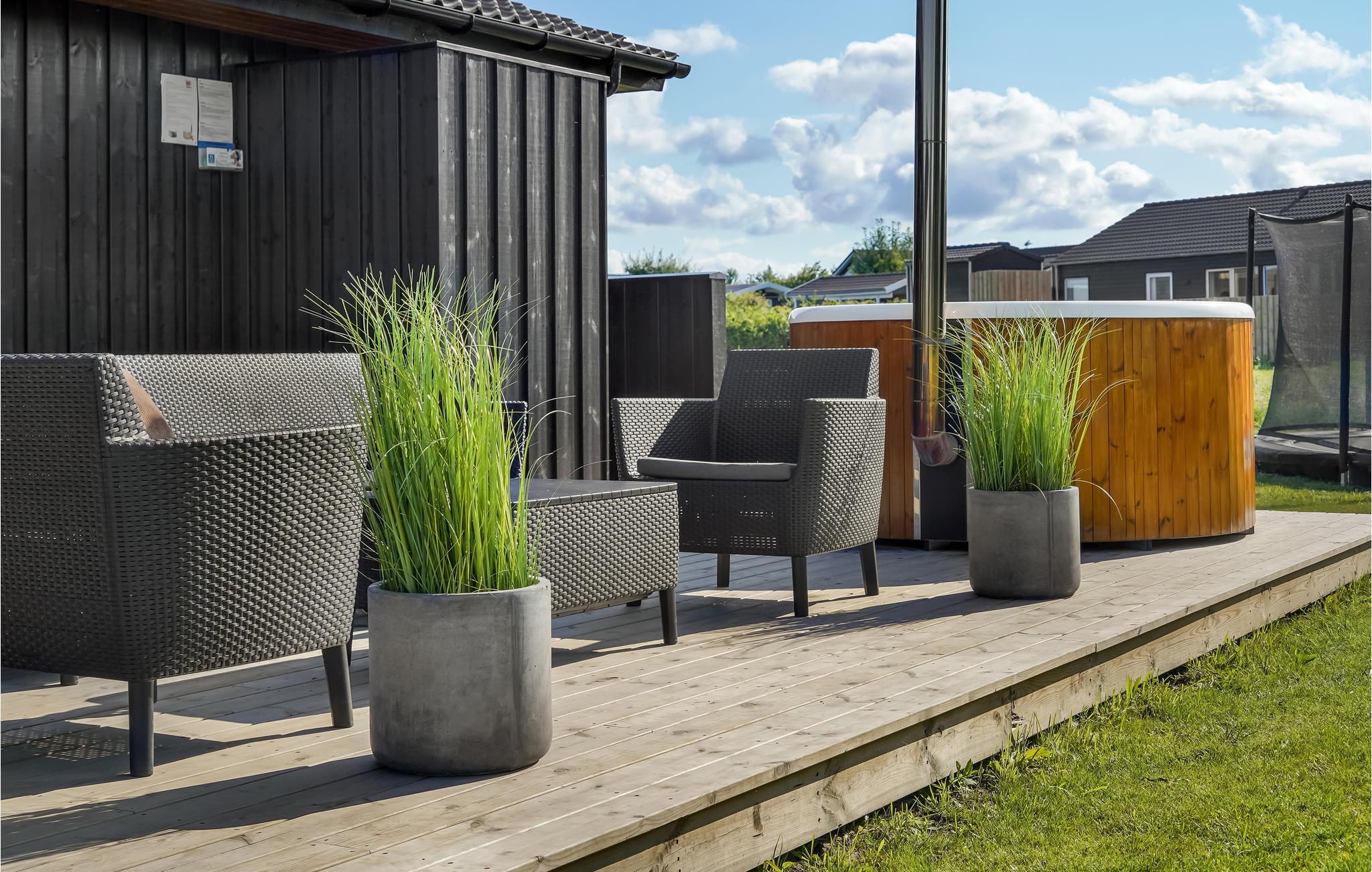 Luksuriøst feriehus med vildmarksbad, spa og tæt på Havnsø Strand, perfekt til afslapning og naturoplevelser.