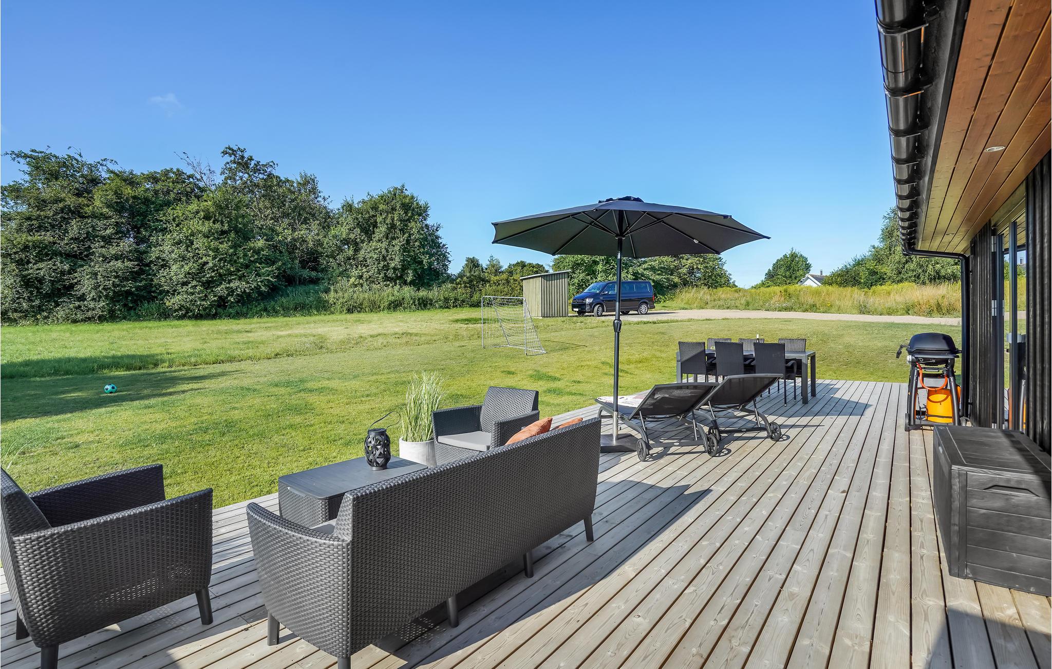 Huset indeholder 3 soveværelser samt en alkove i stuen. Endvidere badeværelse med 2 personers spa samt brus, endvidere gæstebadeværelse med brusefaciliteter. Fra stuen er der udgang til både en lækker åben som overdækket terrasse. Her er højt til himlen og ro til sjælen. Stik til opladning af elbil forefindes. Huset rummer naturligvis alle bekvemmeligheder som opvaskemaskine, vaskemaskine samt mikroovn.