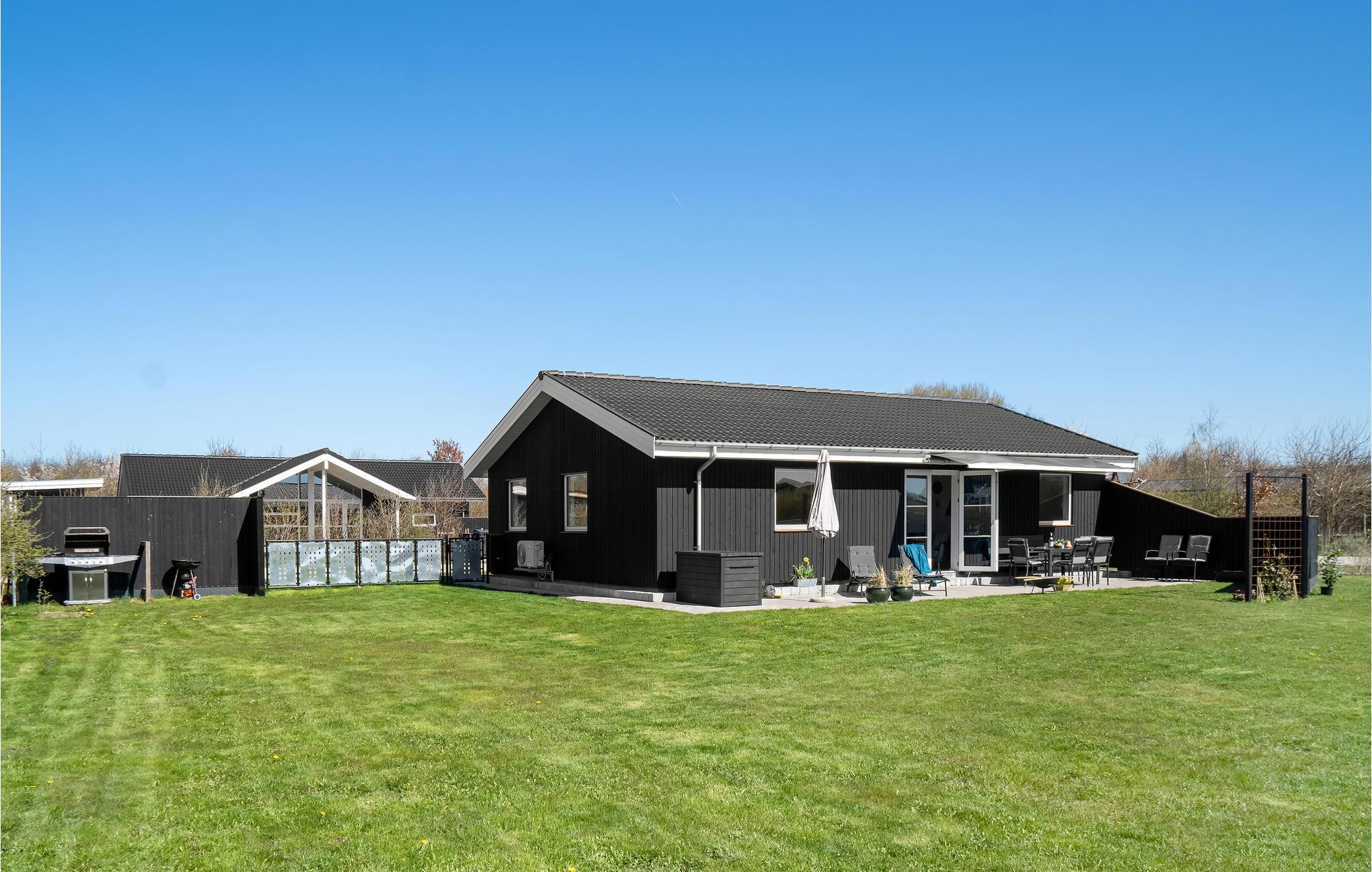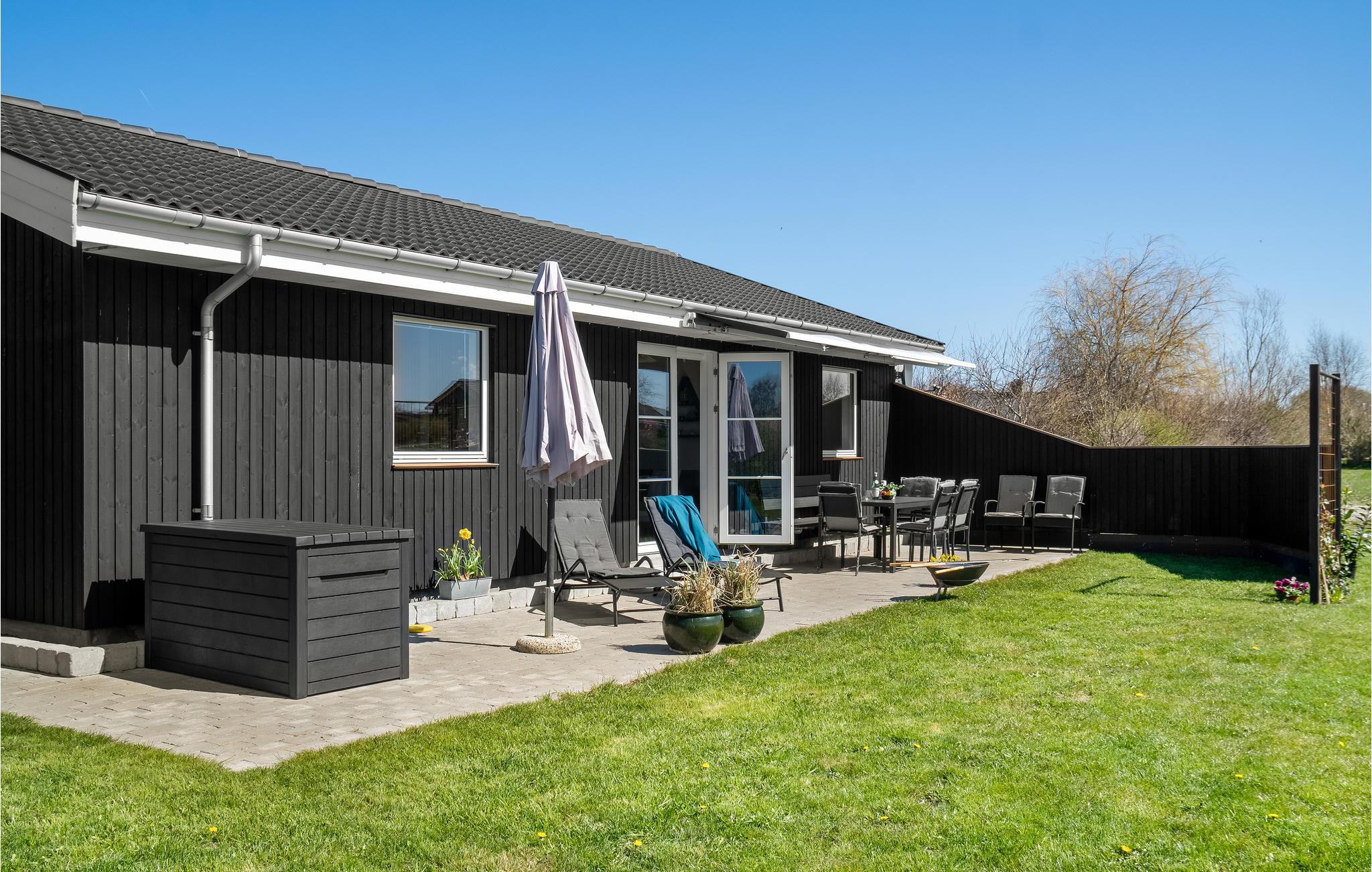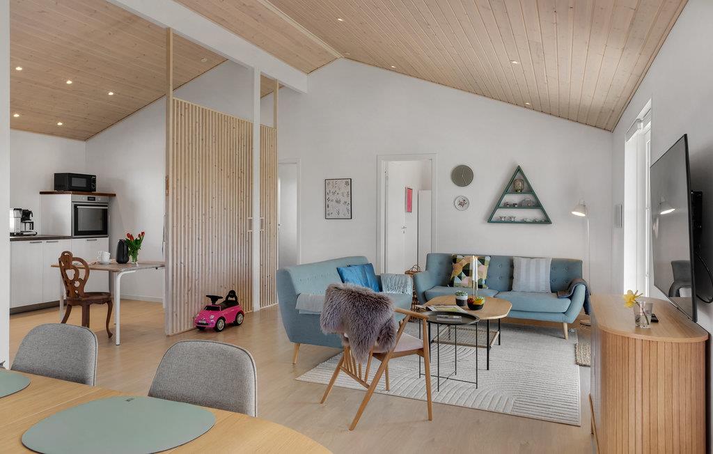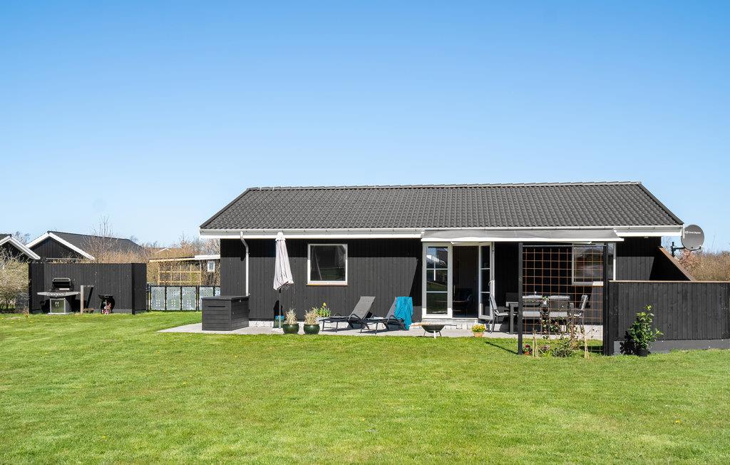 Hyggeligt feriehus tæt på strand med moderne indretning og stor have til leg og afslapning.