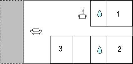 Badeværelse (nr. 2) - WC. Varmt og koldt vand. Bruser