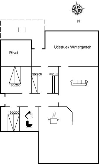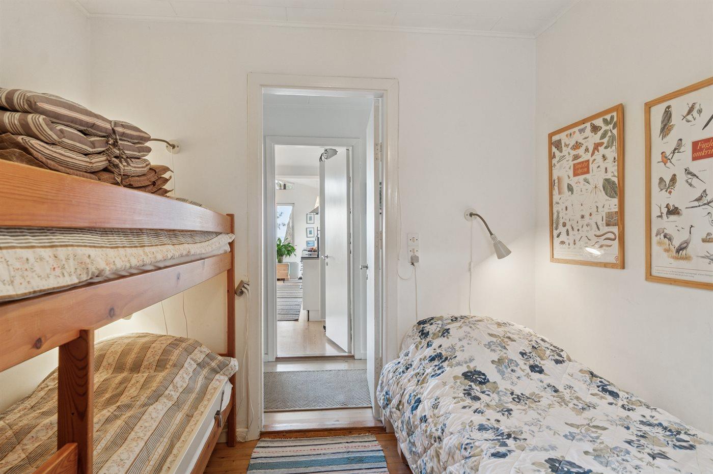 Der er i alt 3 soveværelser. Sovepladserne fordeler sig på: 4 sovepladser i dobbeltsenge. 1 soveplads i enkeltseng. 2 sovepladser i køjeseng. Derudover er der 1 stk. barneseng.