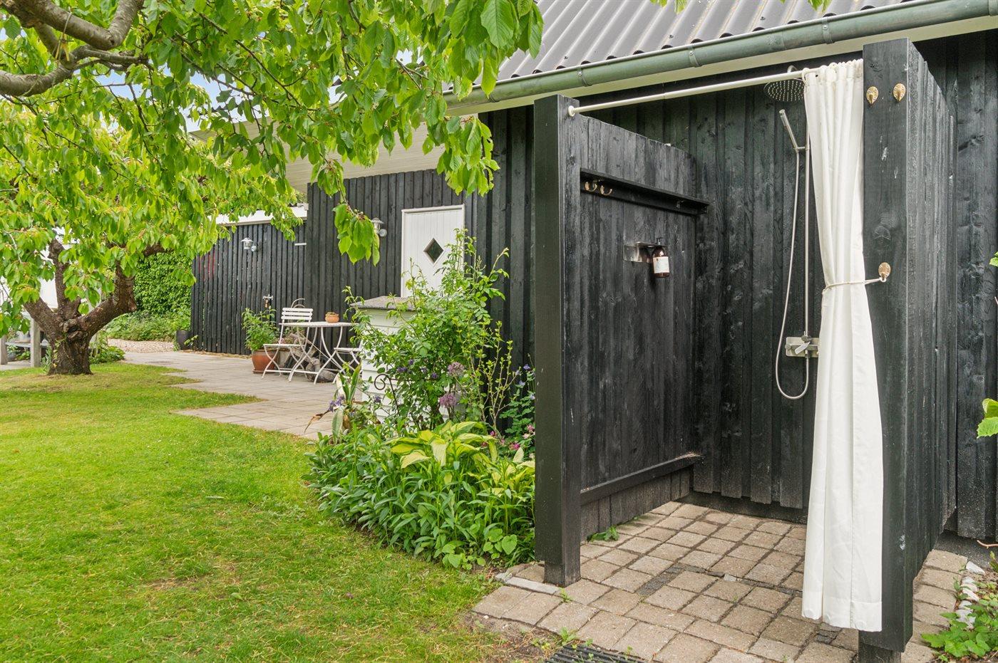 Ferieboligen er beliggende på en 1200 m² stor havegrund. Der er 25 m til havet. Nærmeste forretning er beliggende i en afstand af 350 m. Til ferieboligen hører 55 m² terrasseareal. Ligeledes er der adgang til udestue. Sandkasse. Parkering ved ferieboligen.