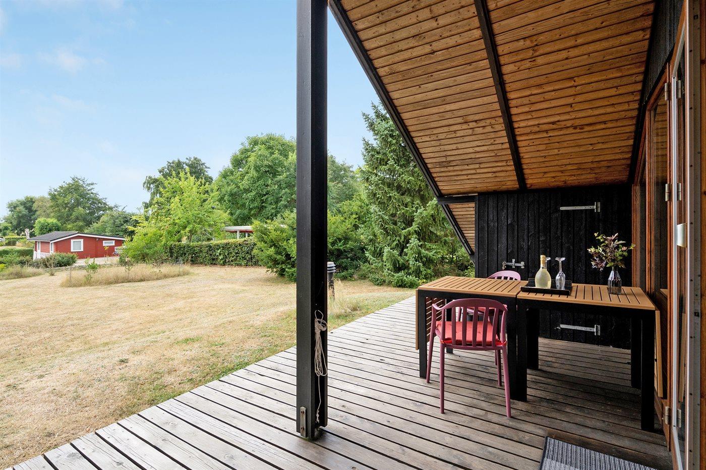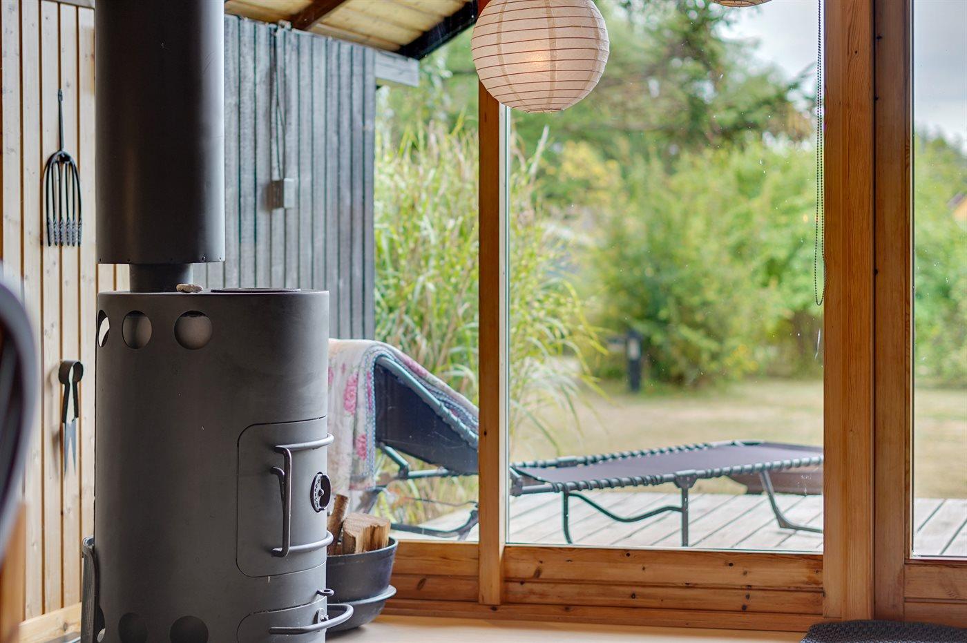 Ferieboligen er beliggende på en 1200 m² stor naturgrund. Der er 200 m til havet. Nærmeste forretning er beliggende i en afstand af 2000 m. Til ferieboligen hører 25 m² terrasseareal. Desuden er der 9 m² overdækket terrasse. Gynge. Legehus. Grill til rådighed. Der er installeret stik til opladning af elbil. Type 2 stik. Parkering ved ferieboligen.