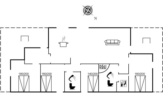 Der er i alt 4 soveværelser. Sovepladserne fordeler sig på: 8 sovepladser i dobbeltsenge. Derudover er der 1 stk. barneseng.