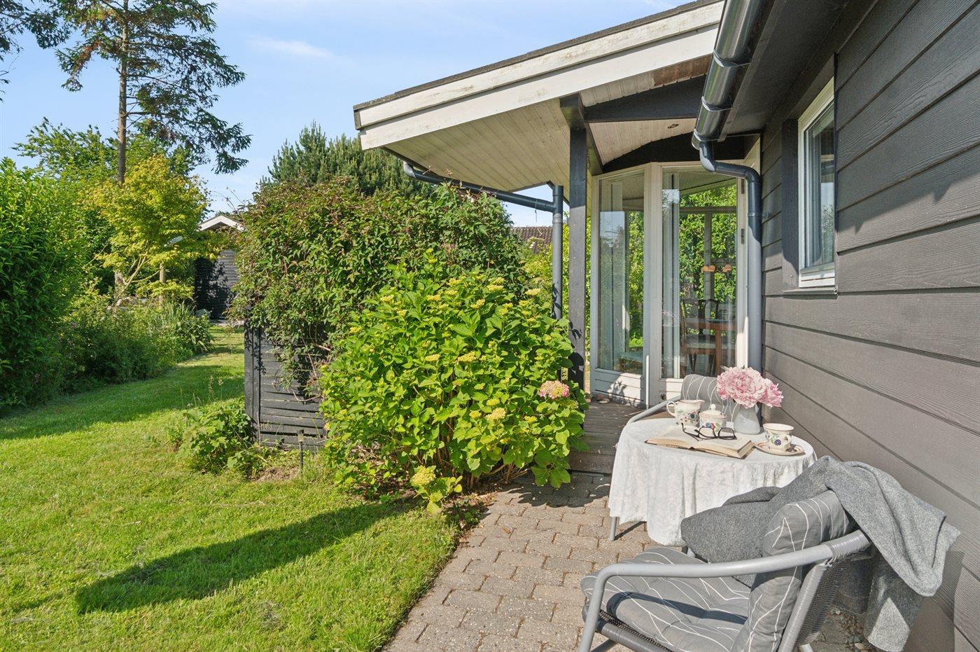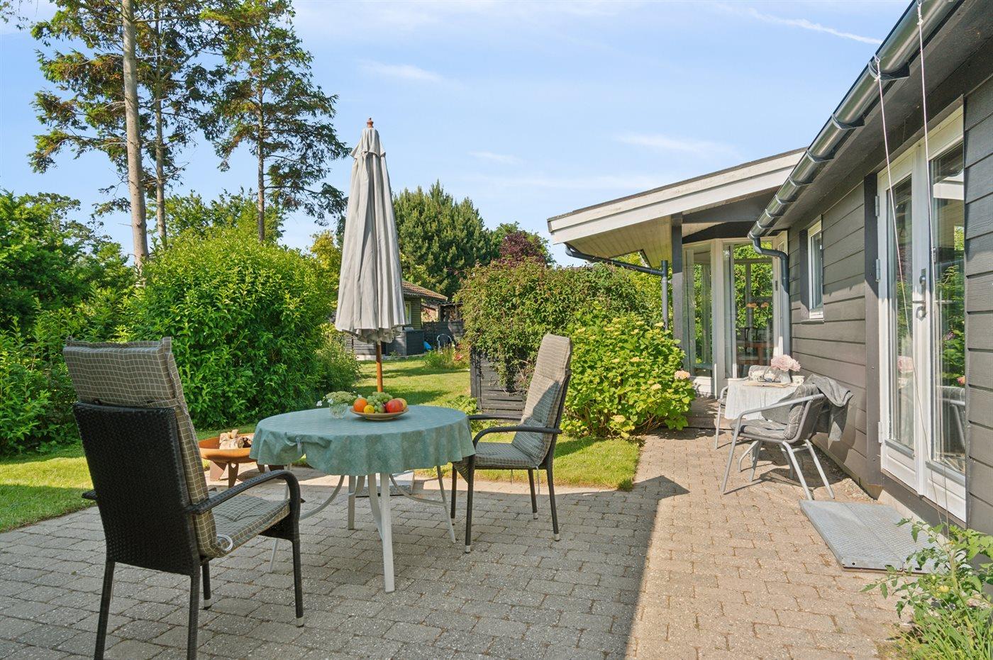 Huset er hyggeligt med en velplejet have og med gode hyggelige terrasseområder, hvor er der gode muligheder for at nyde solen samt finde skygge og læ.