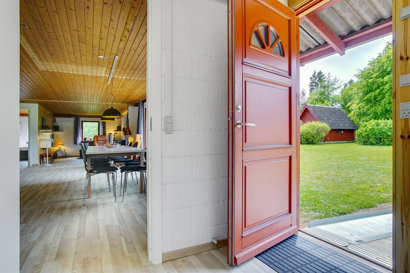 Ferieboligen er beliggende på en 1230 m² stor naturgrund. Grunden er indhegnet. Der er 1100 m til havet. Der er en sø i en afstand af 8000 m. Nærmeste forretning er beliggende i en afstand af 3500 m. Til ferieboligen hører 30 m² terrasseareal. Der er redskabsrum. Grill til rådighed. Parkering ved ferieboligen.