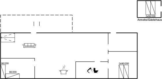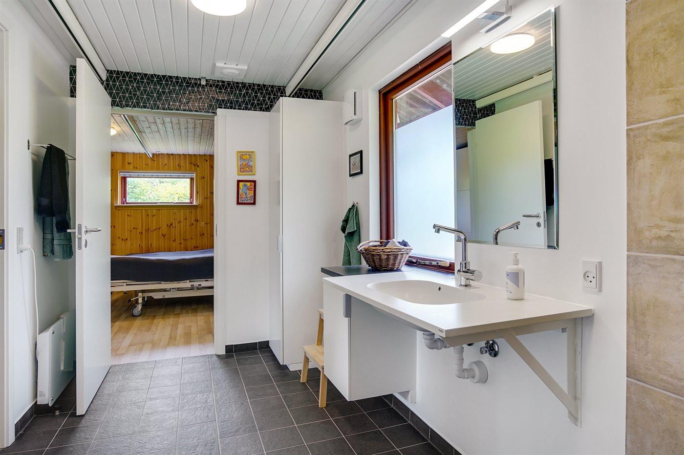 Flot og rummeligt sommerhus indrettet til kørestolsbruger. Til huset hører et anneks, hvor 2 af sovepladserne befinder sig. Annekset er egnet til at overnatte i fra påske til og med oktober. Desuden er 2 sovepladser at finde på sovesofa i husets opholdsstue. Alle indvendige døre i huset er 90 cm. brede og uden dørtrin. Der er loftslift i det store soveværelse og badeværelset - liften kører via en skinne i loftet gennem døren imellem disse 2 rum. Toilettet er 8 m², og der er fri plads under håndvasken. I brusehjørnet er der god plads til f.eks. en badestol. Badeværelset har en terrassevarmer, som kan sørge for hurtig ekstra varme ved f.eks. badning. Soveværelset er udstyret med en 4 punkts plejeseng. I køkkenet er der fri plads under kogepladerne.