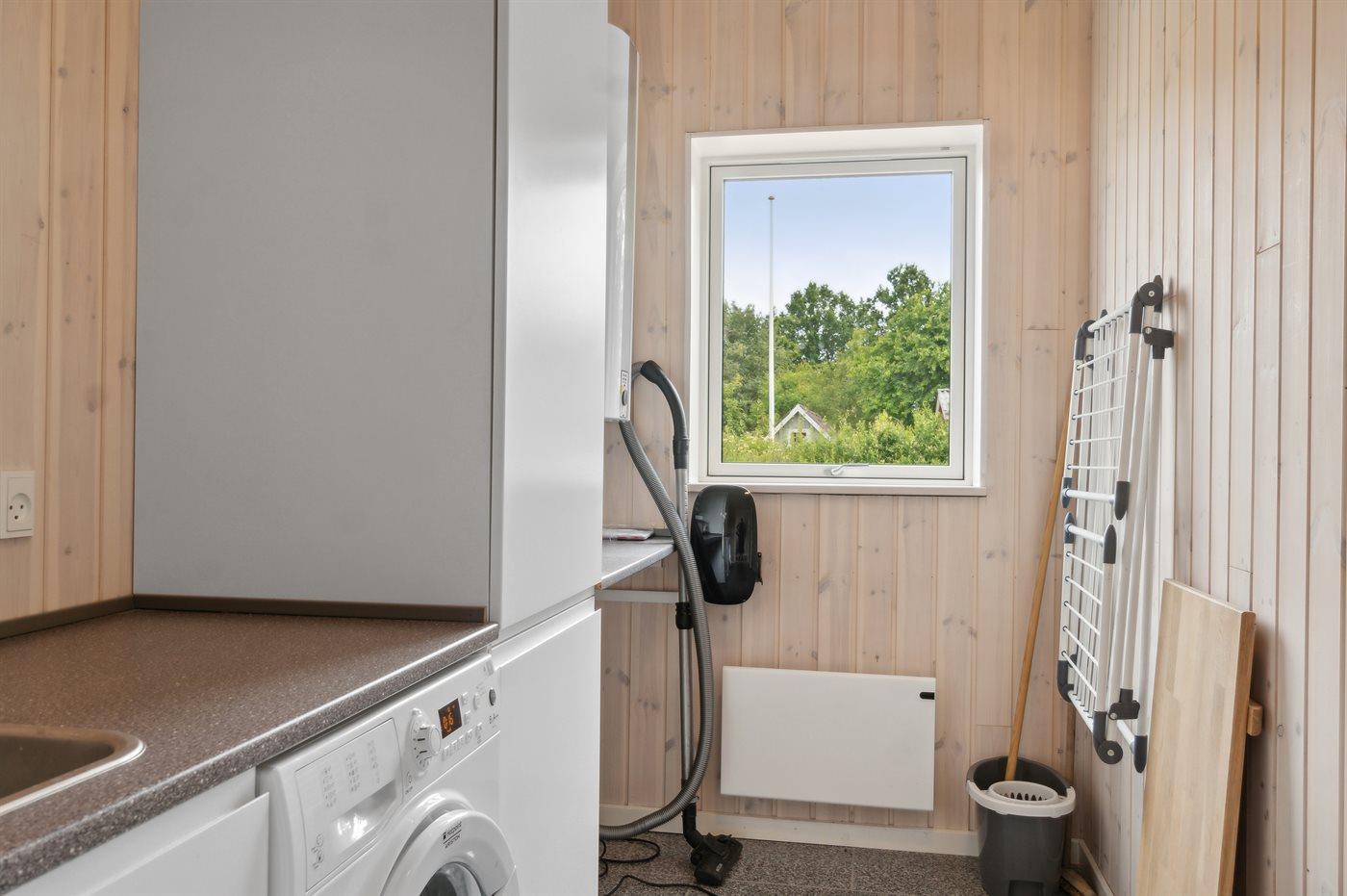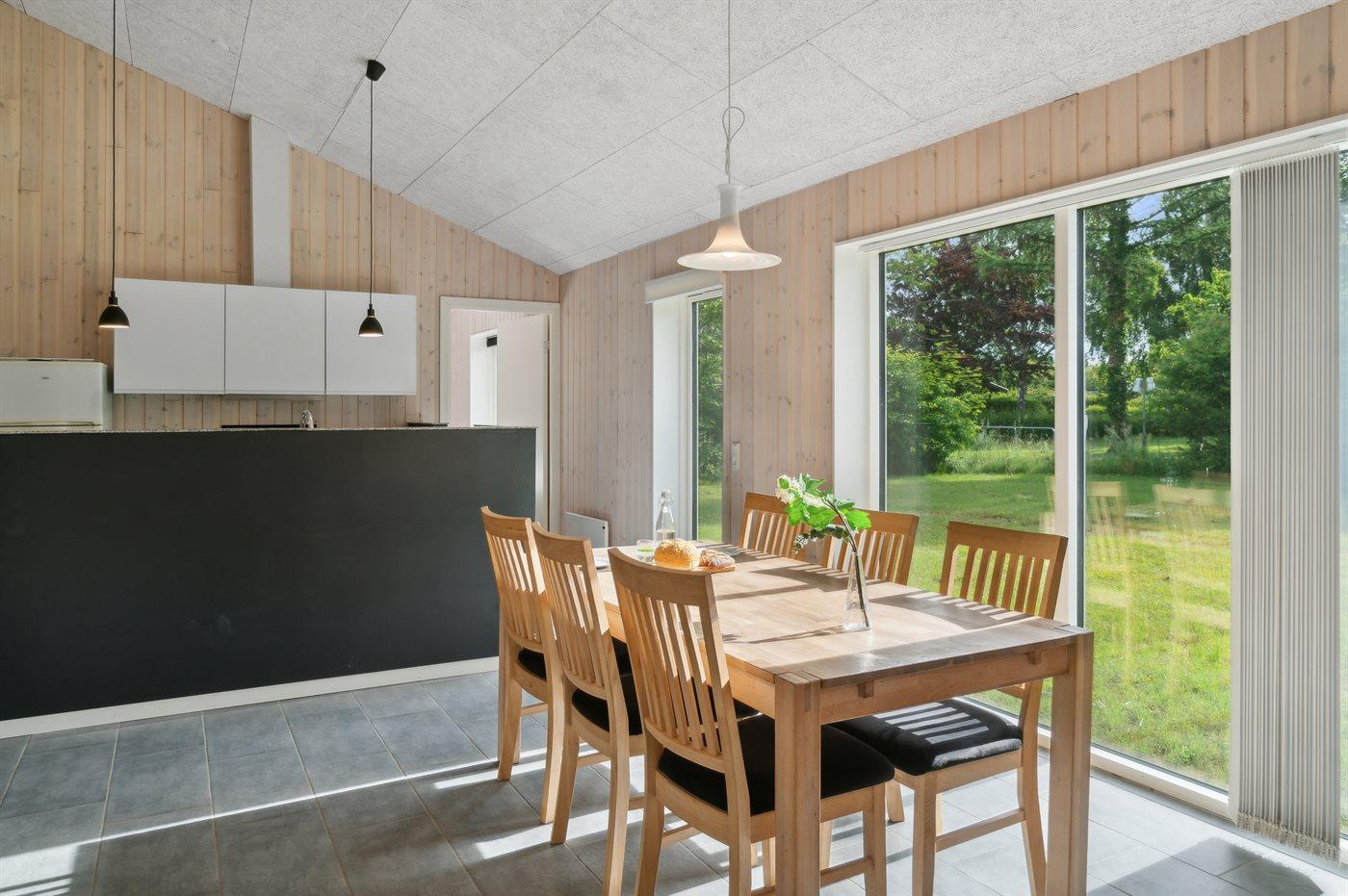 Køkkenet er udstyret med 1 køleskab. Der er 4 keramiske kogeplader, varmluftovn, mikrobølgeovn samt opvaskemaskine.