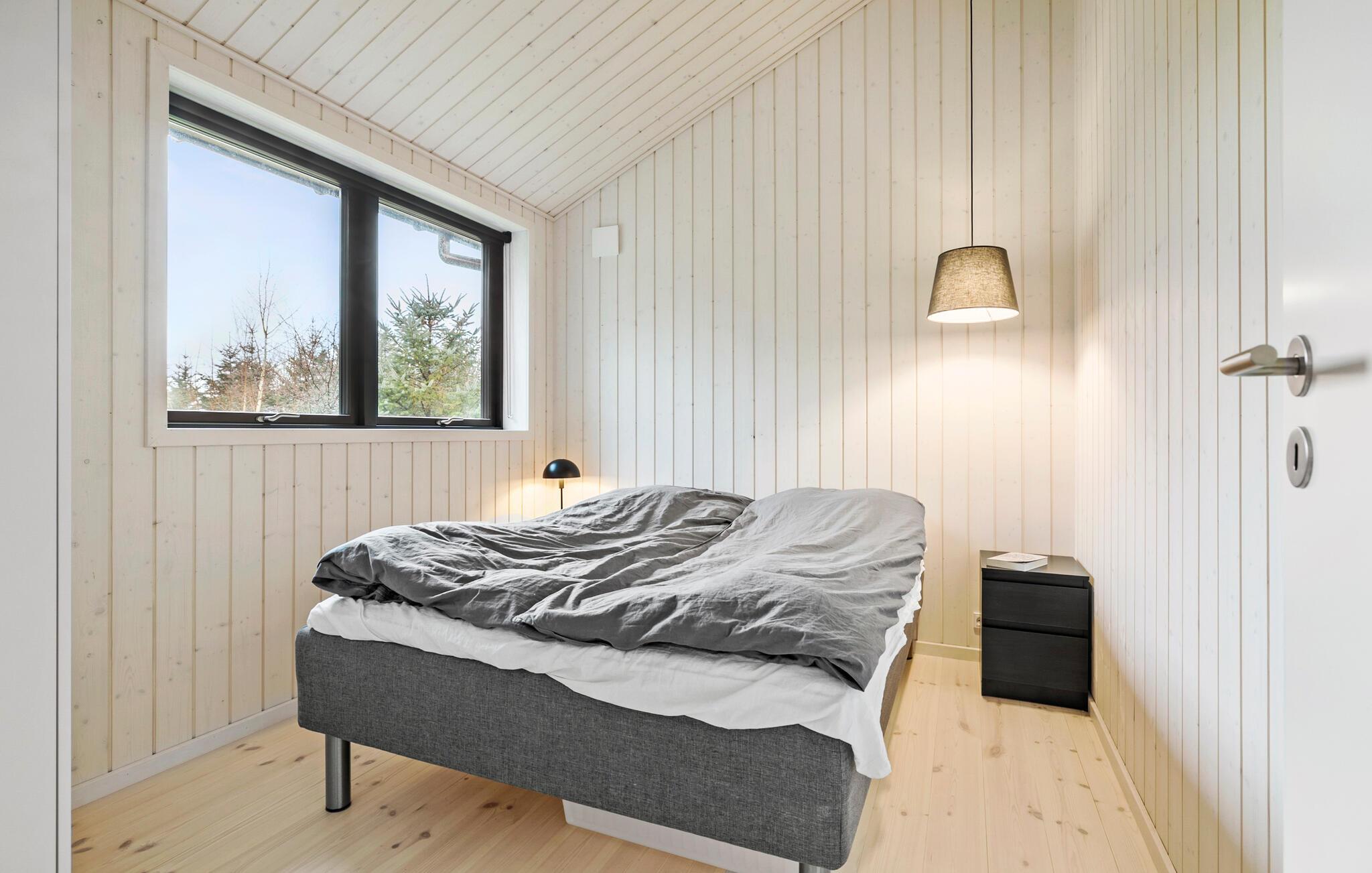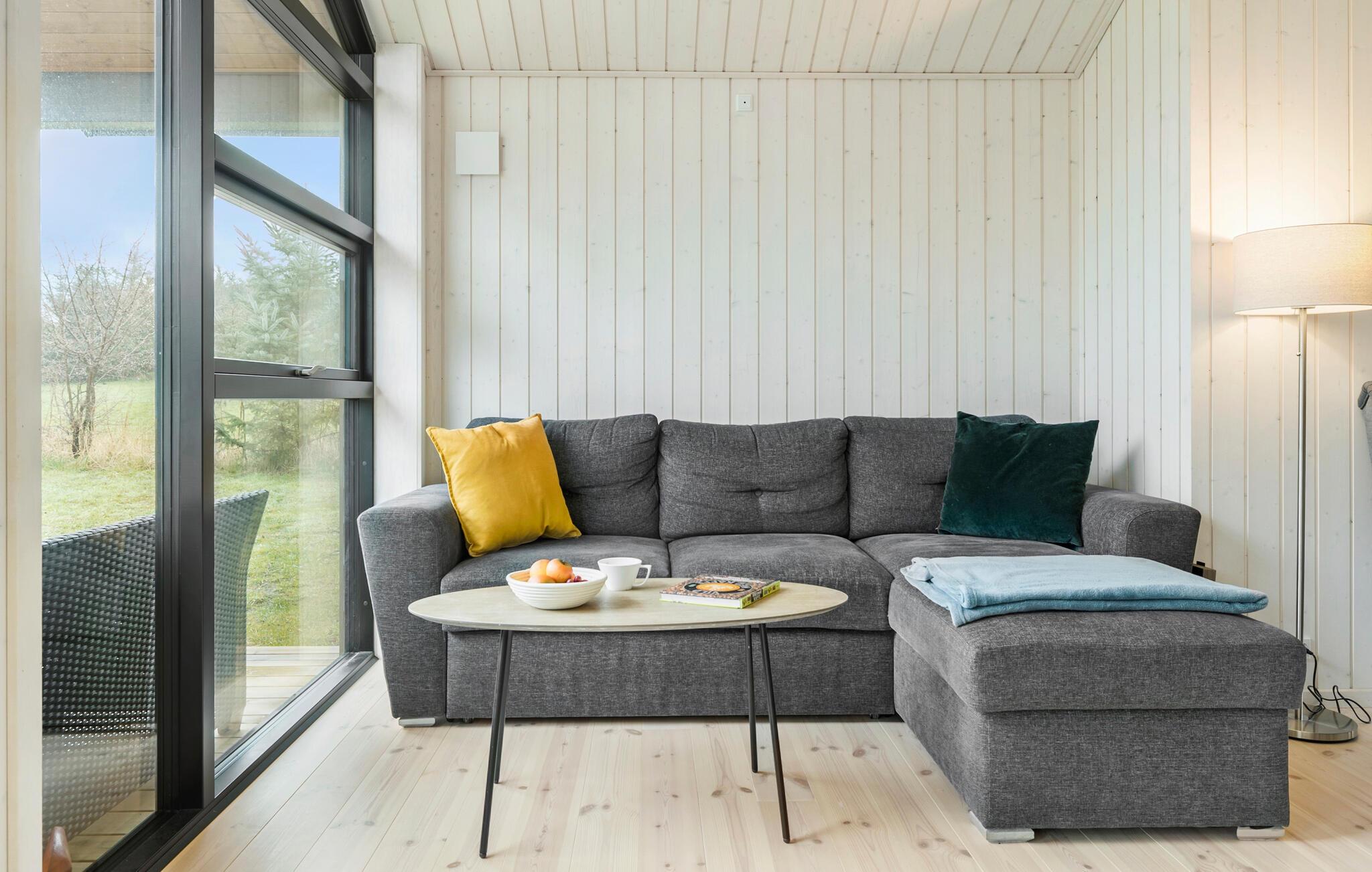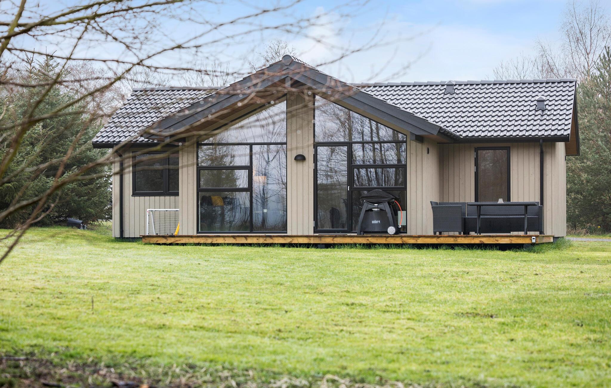 Flot og moderne træhus tæt på Sømarken Strand på Bornholm med åben stue og stor terrasse til afslapning.