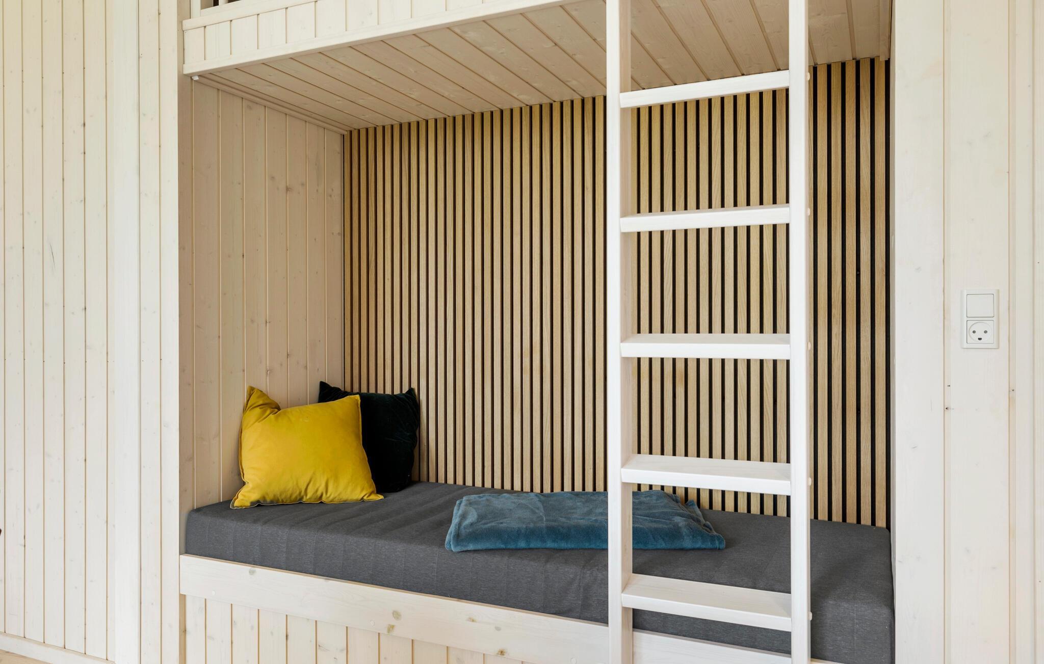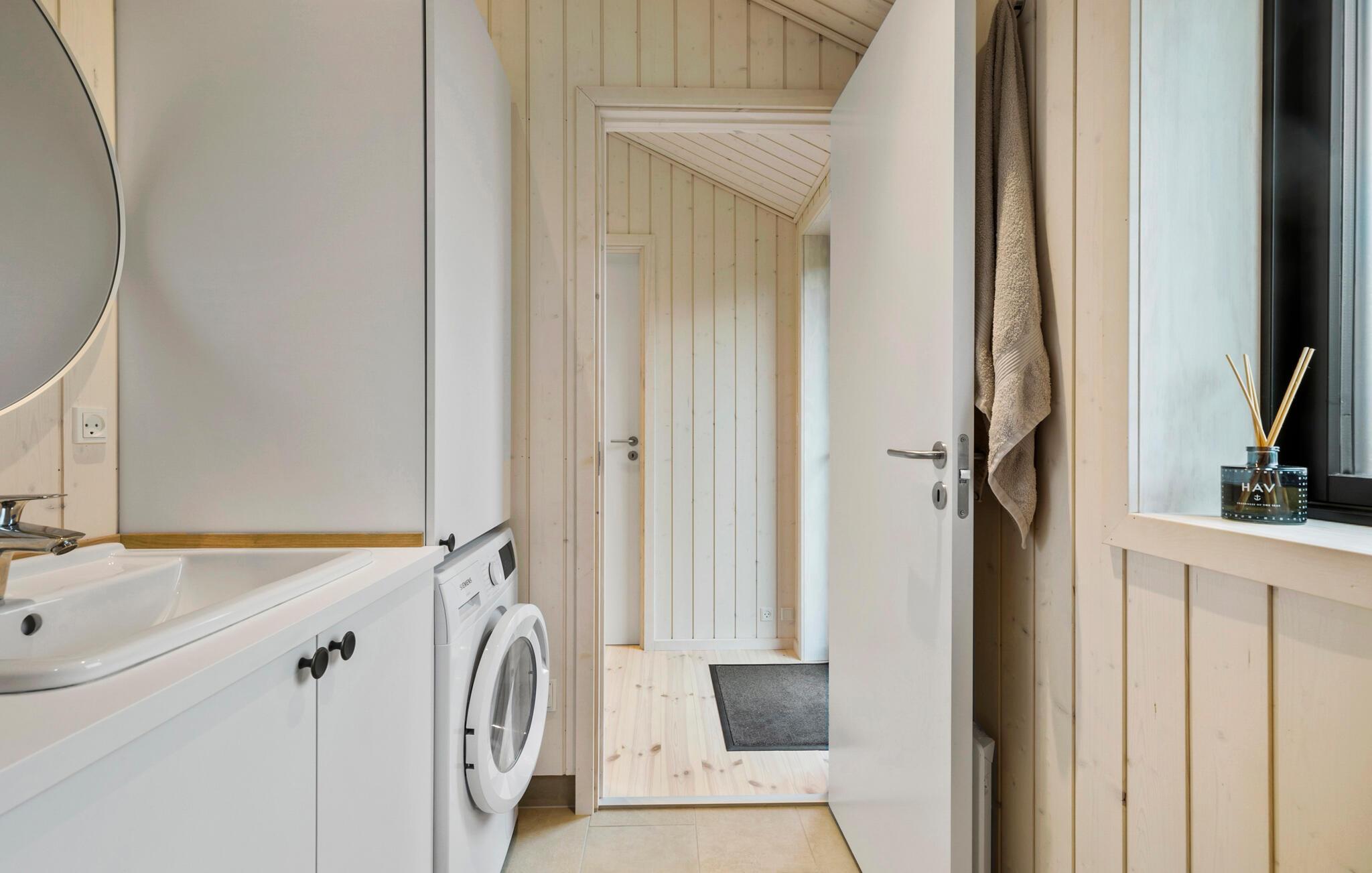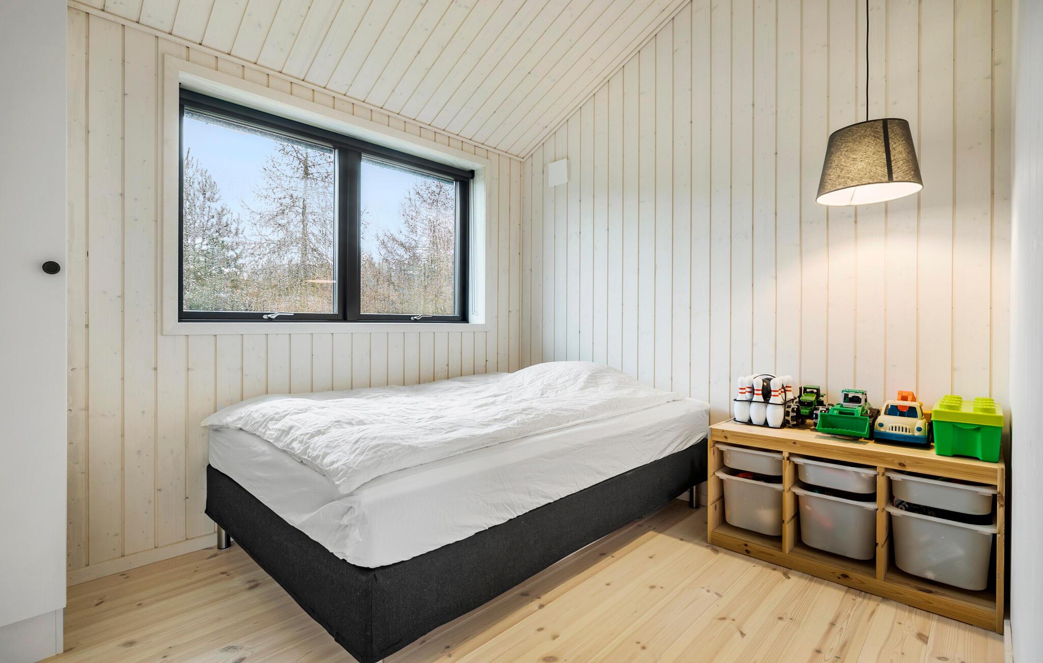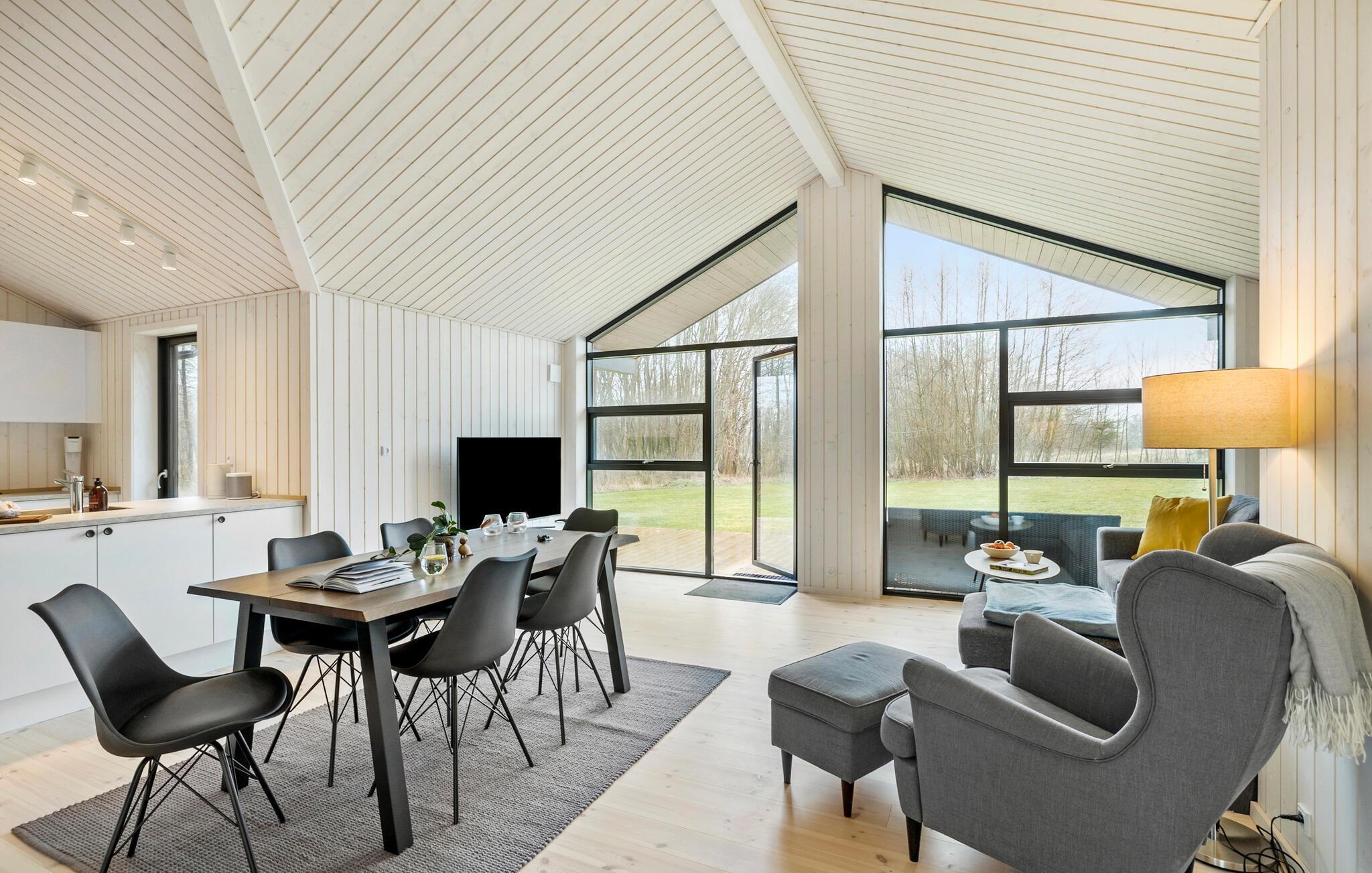 Rejs til hele Danmarks Solskinsø med familien og glæd jer til et fantastisk ophold tæt på vandet i dette attraktive træhus. Huset er er indrettet med gennemtænkte planløsninger, højt til loftet og moderne faciliteter, der gør jeres feriegøremål til en leg. Den åbne stue får et dejligt lysindfald gennem gulv-til-loft-vinduerne, som samtidig giver en skøn udsigt, der kan nydes fra køkkenet, sofaen, alkoverne eller hemsen. Kræs om livretterne i det moderne køkken, nyd dem ved spisebordet og rund dagen af med en god film i sofaen, mens I lægger planer for de kommende dage.