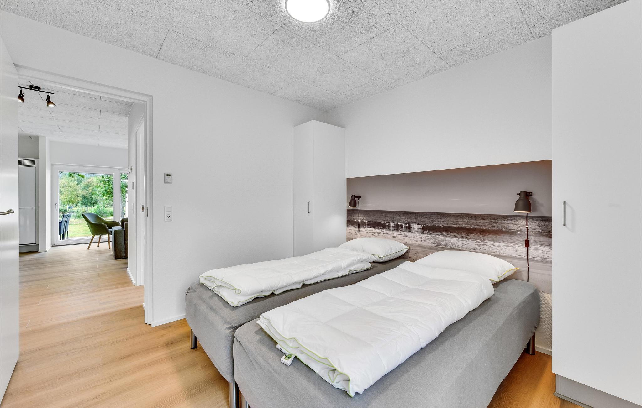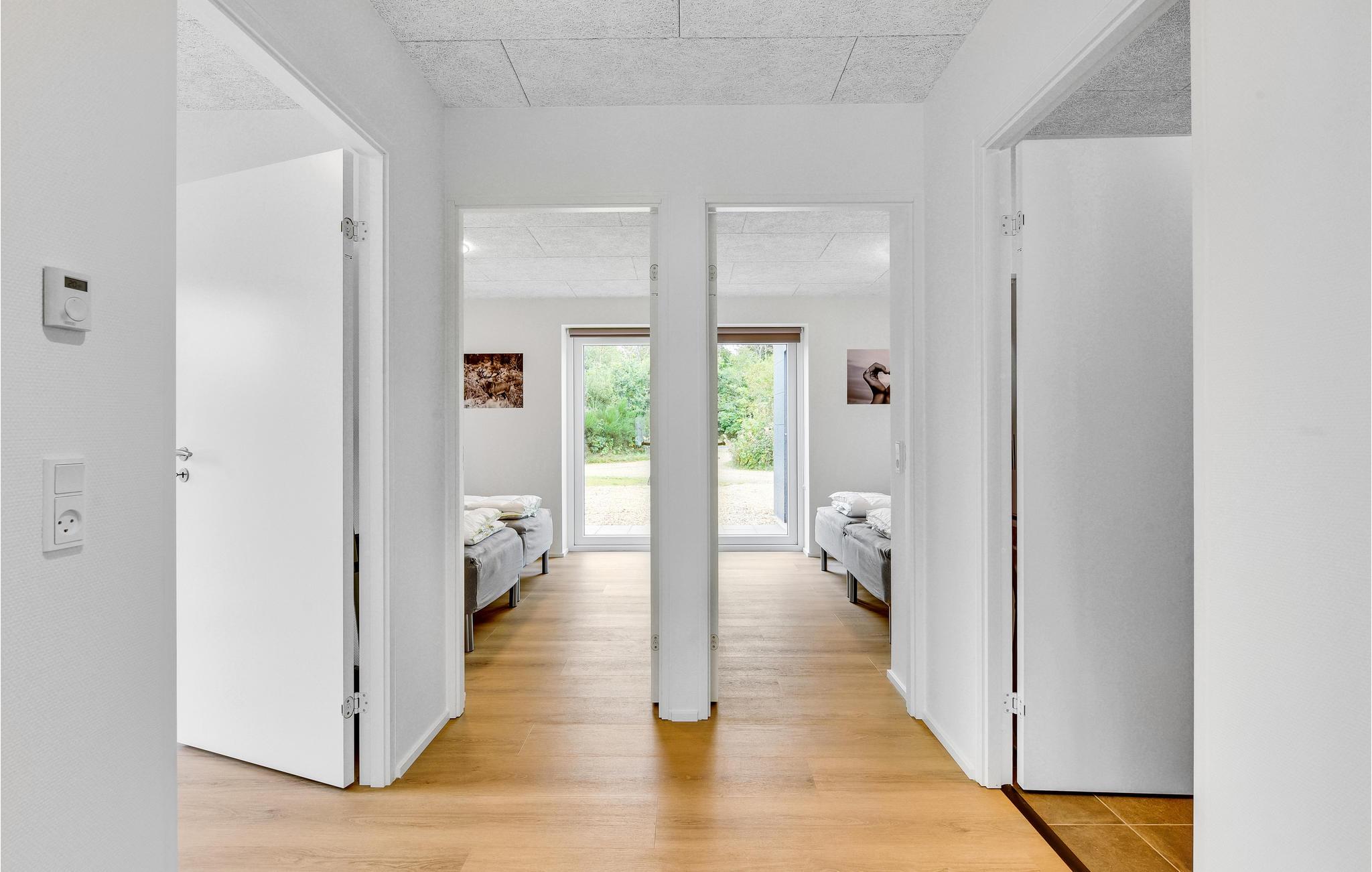 Sommerhuset er hyggeligt og komfortabelt indrettet; her finder I alt det nødvendige til en vellykket ferie på ethvert tidspunkt af året. Med 3 soveværelser tilbyder huset plads til 6 personer. Der er behagelig gulvvarme i hele huset.