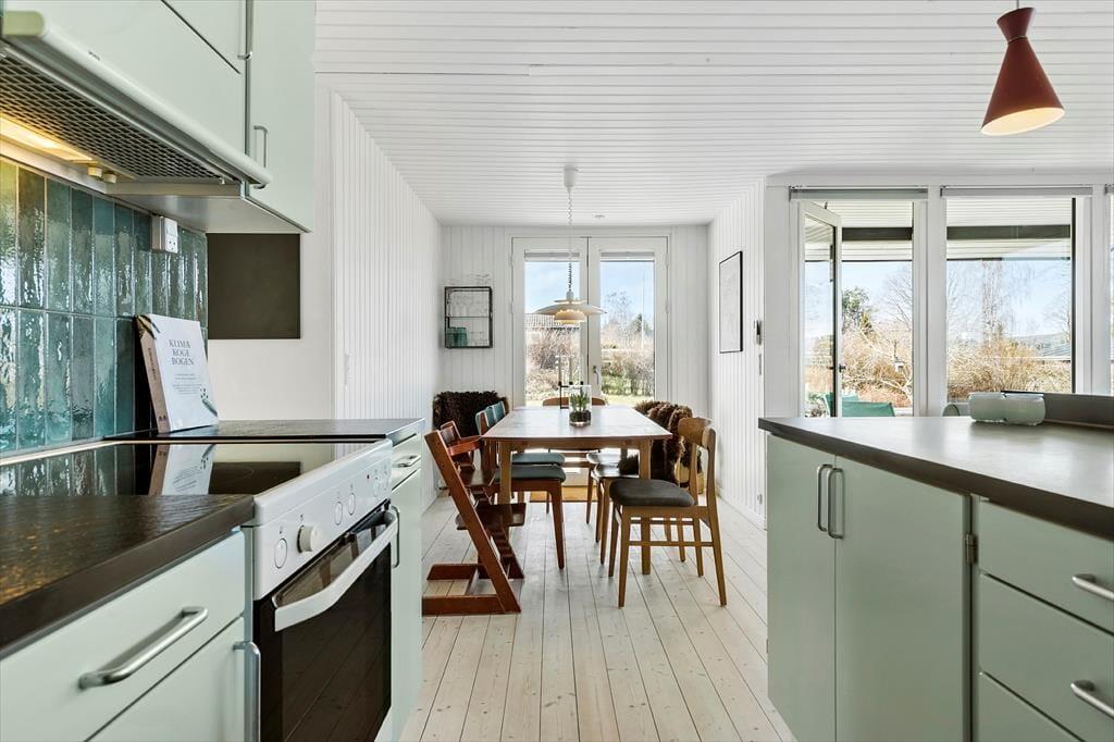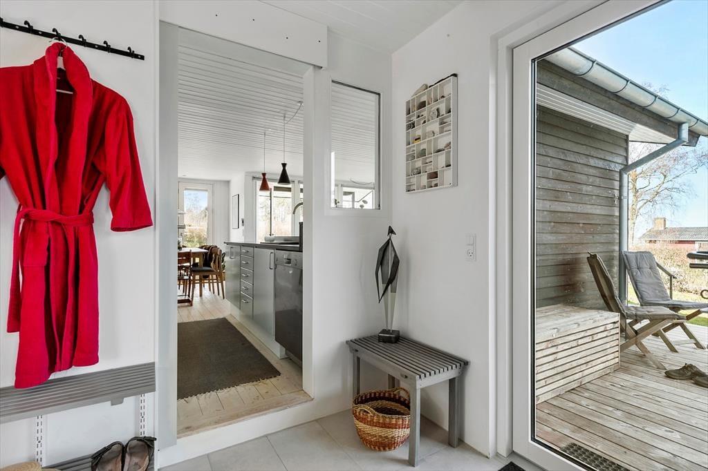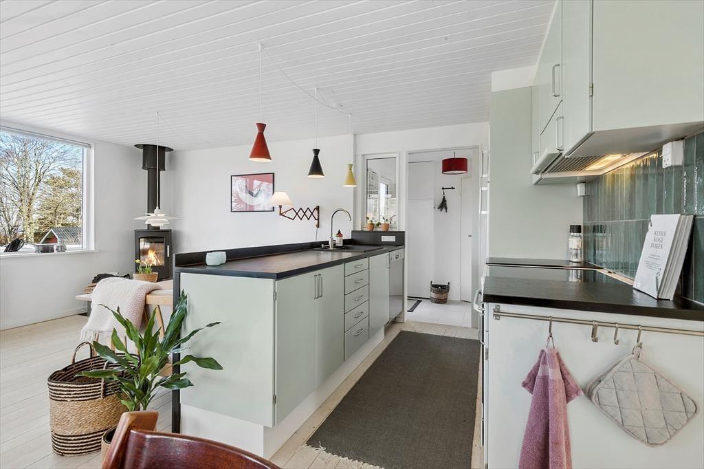 Køkkenet er både lækkert og funktionelt og ligger i åben forbindelse med stuen, så samtaler og samvær kan flyde frit – selv når der bliver lavet mad. Entreen byder dig velkommen med god plads og en rar fornemmelse af, at her er der tænkt over detaljerne.
