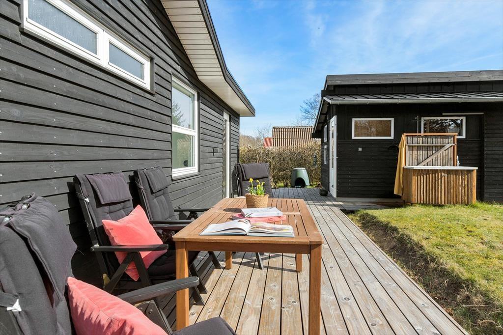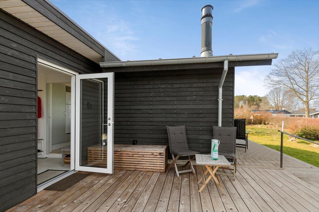 Bag huset gemmer sig en dejlig, solrig gårdhave – fyldt med læ og charme. Her finder du adgang til både saunaen i annekset og den friske udebruser, som gør sommerstemningen ekstra autentisk. Gårdhaven inviterer til ro og afslapning, men også til små oplevelser: Et hyggeligt bålsted indbyder til snobrød og stjernestunder, insekthotellet summer af liv, og små detaljer som smuk beplantning og fin havekunst skaber en helt særlig stemning.