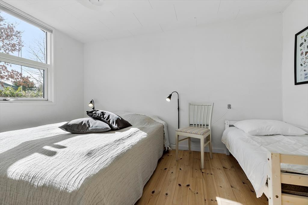Huset rummer to flotte badeværelser, det ene med vaskemaskine, og tre dejlige soveværelser. To af dem er indrettet med dobbeltsenge, mens det tredje byder på både dobbeltseng og en sød lille børneseng (70x140) – perfekt til familiens mindste.