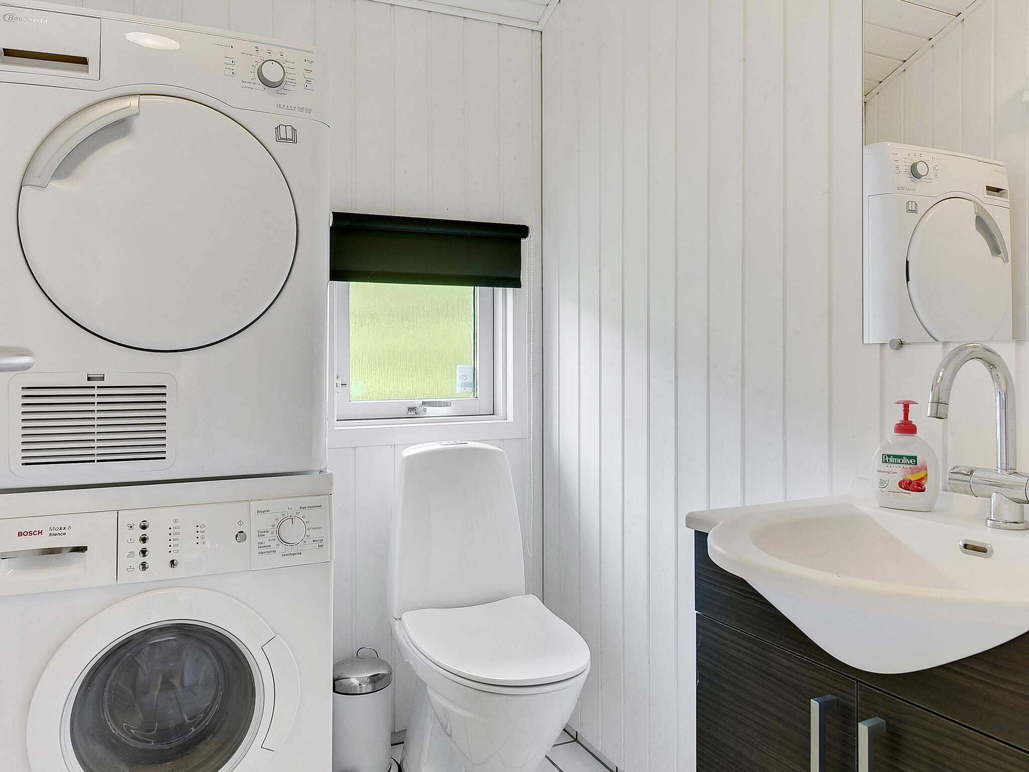 I huset finder I vaskemaskine, tørretumbler, varmepumpe der også kan køle på de varme dage ligesom i selvfølgelig også finder en brændeovn.