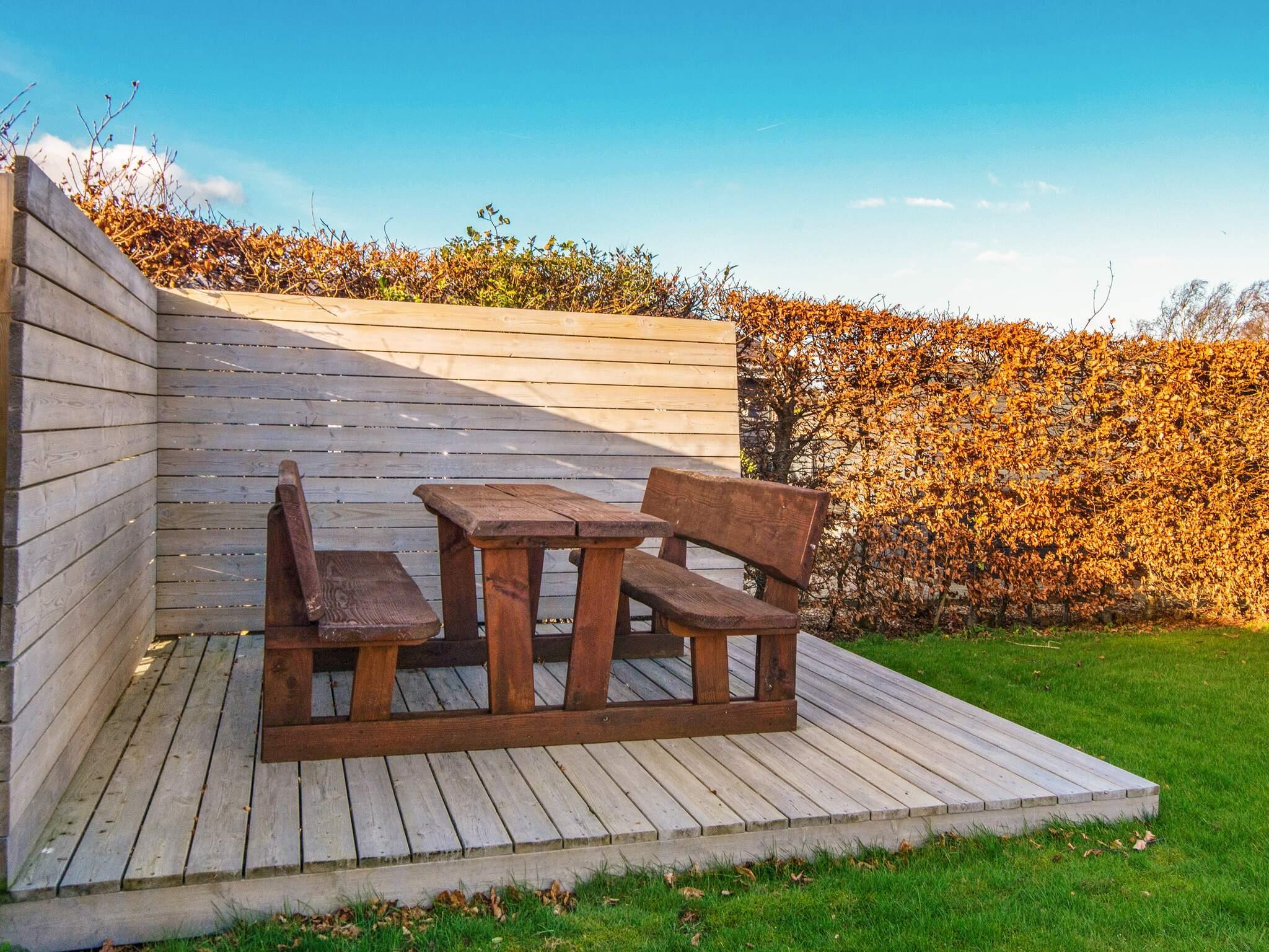 Fra køkkenet og familieområdet, træde direkte ud på terrassen, som er delvist overdækket for at tillade udendørs nydelse selv om aftenen, eller når vejret er mindre forudsigeligt. Uanset om du spiser udendørs, nyder en morgenkaffe eller blot slapper af i den friske luft, tilføjer dette udendørsområde fleksibilitet og komfort til dit ophold.