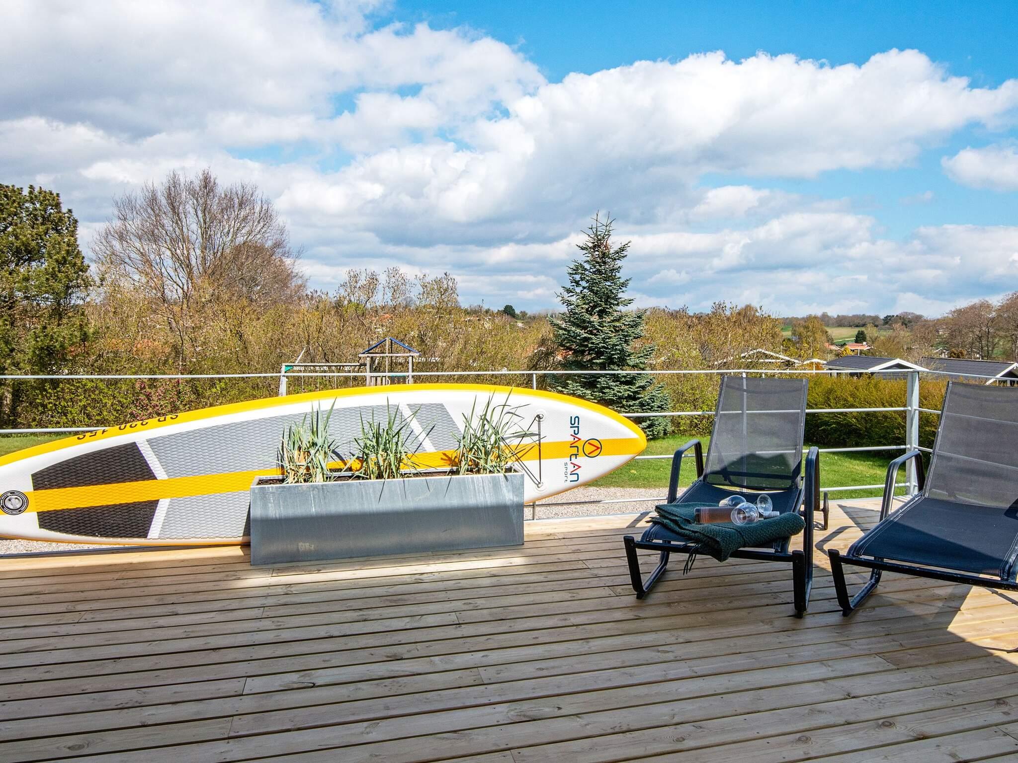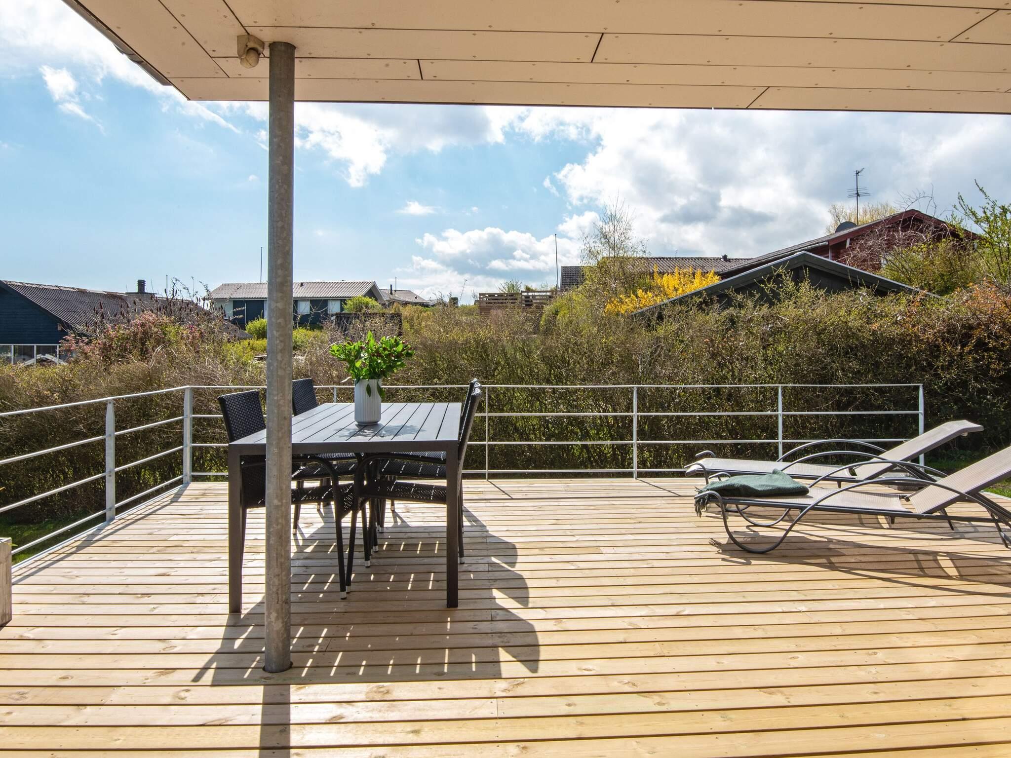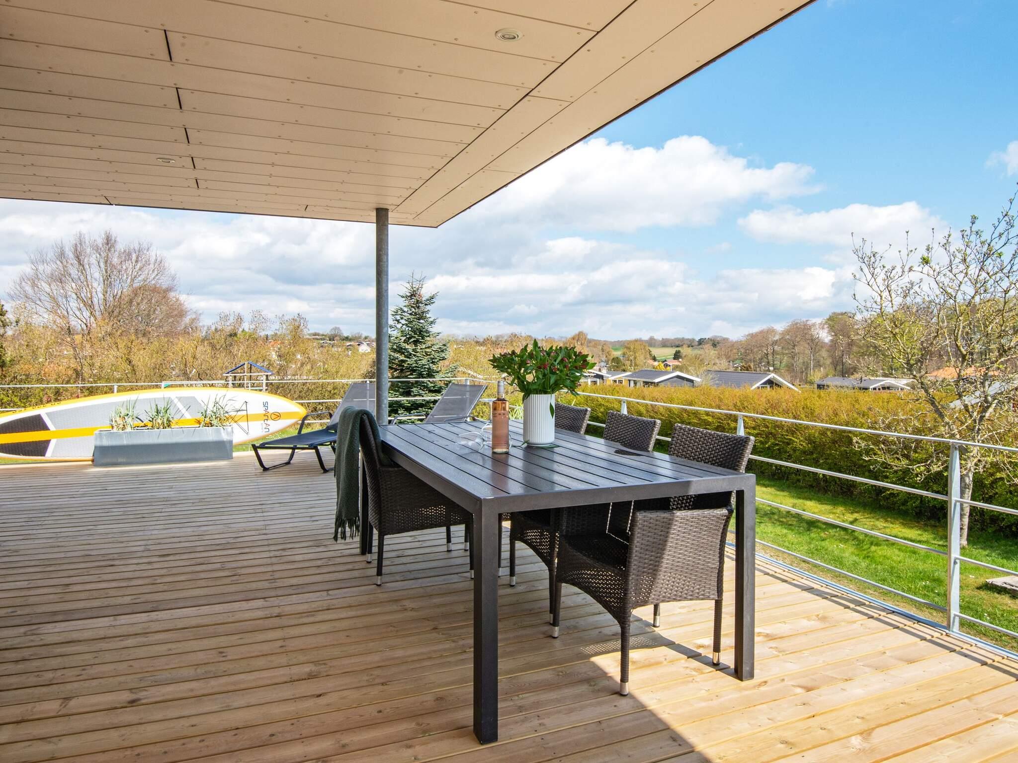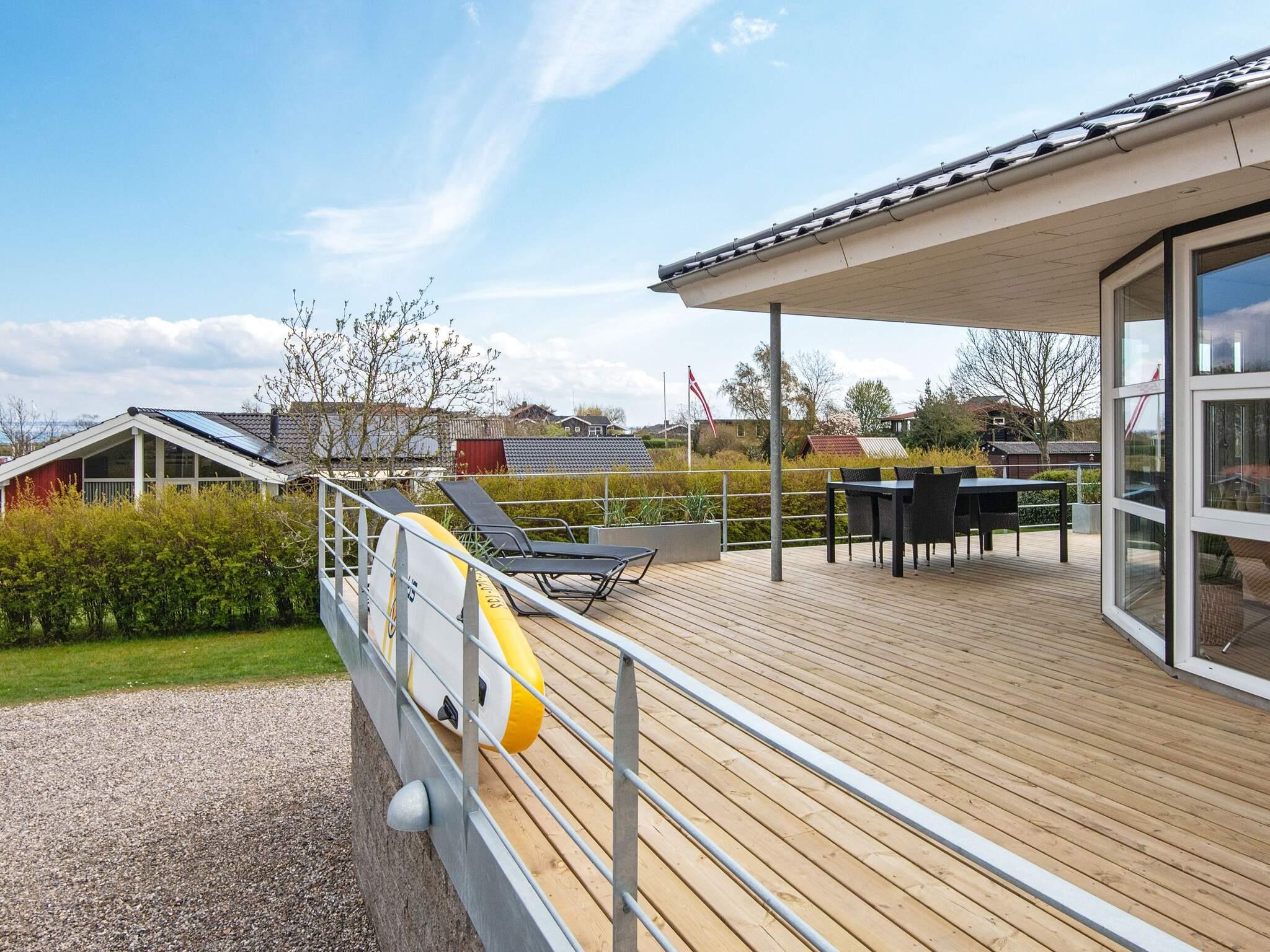 Udenfor dækker det store terrasseareal næsten hele huset og byder på flere siddepladser med smuk udsigt over vandet. Her kan du nyde morgenmad i morgensolen og grille om aftenen ved solnedgang. Den børnevenlige sandstrand Hejlsminde ligger i gåafstand.