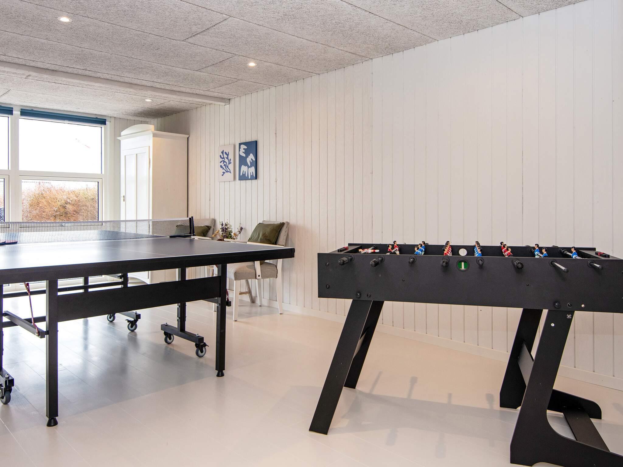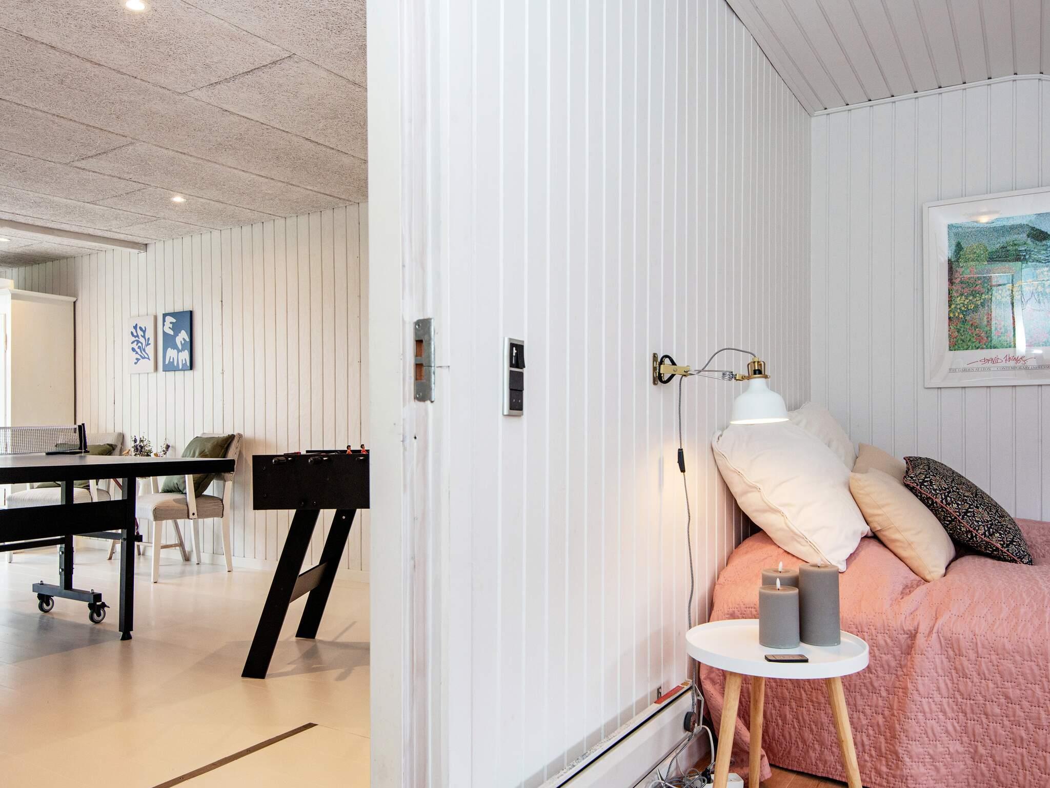 Dette charmerende feriehus i Hejlsminde byder på perfekte rammer for et afslappende ophold på den danske østkyst. Med sine hvide vægge og gulve og hyggelige interiør emmer huset af en indbydende feriestemning fra du træder ind. Ejendommen har et stort aktivitetsrum med et bordtennisbord og et komfortabelt loungeområde, der giver timevis af underholdning for alle aldre. Tre velindrettede soveværelser sikrer komfortable sovearrangementer for familier eller grupper.