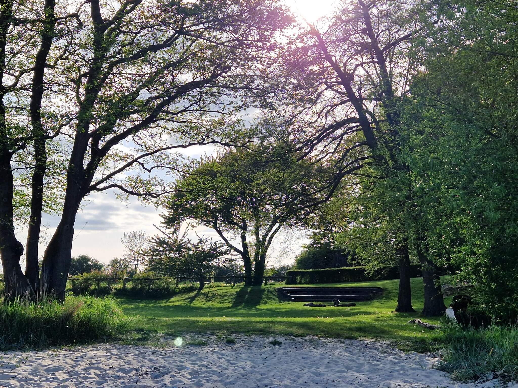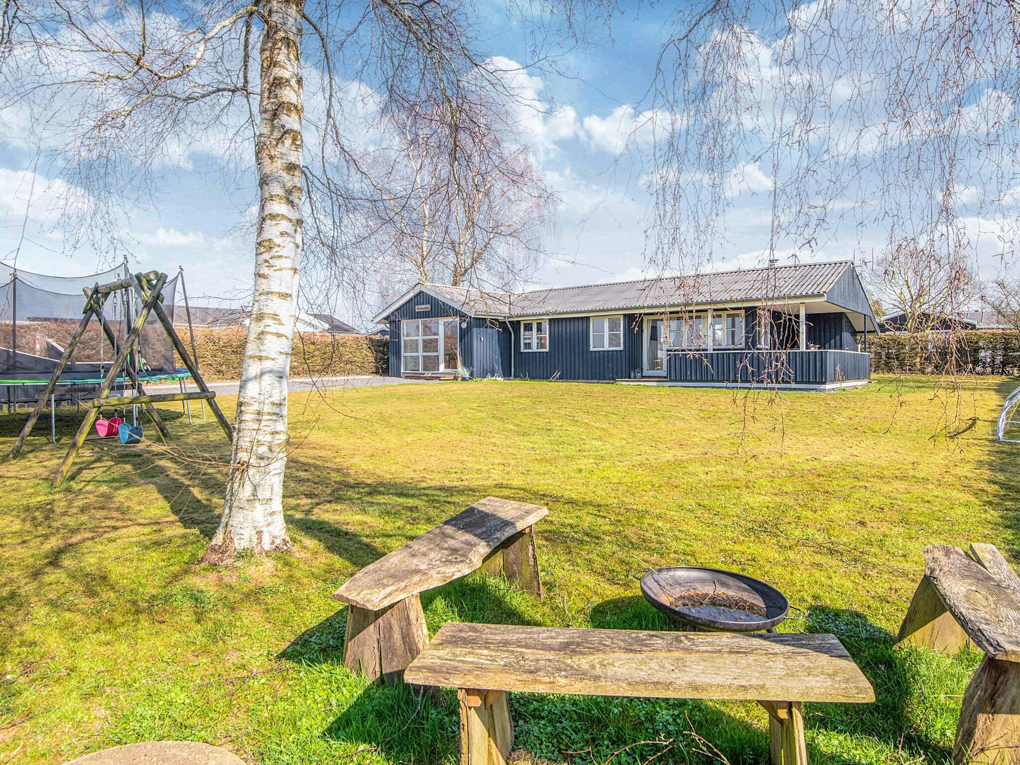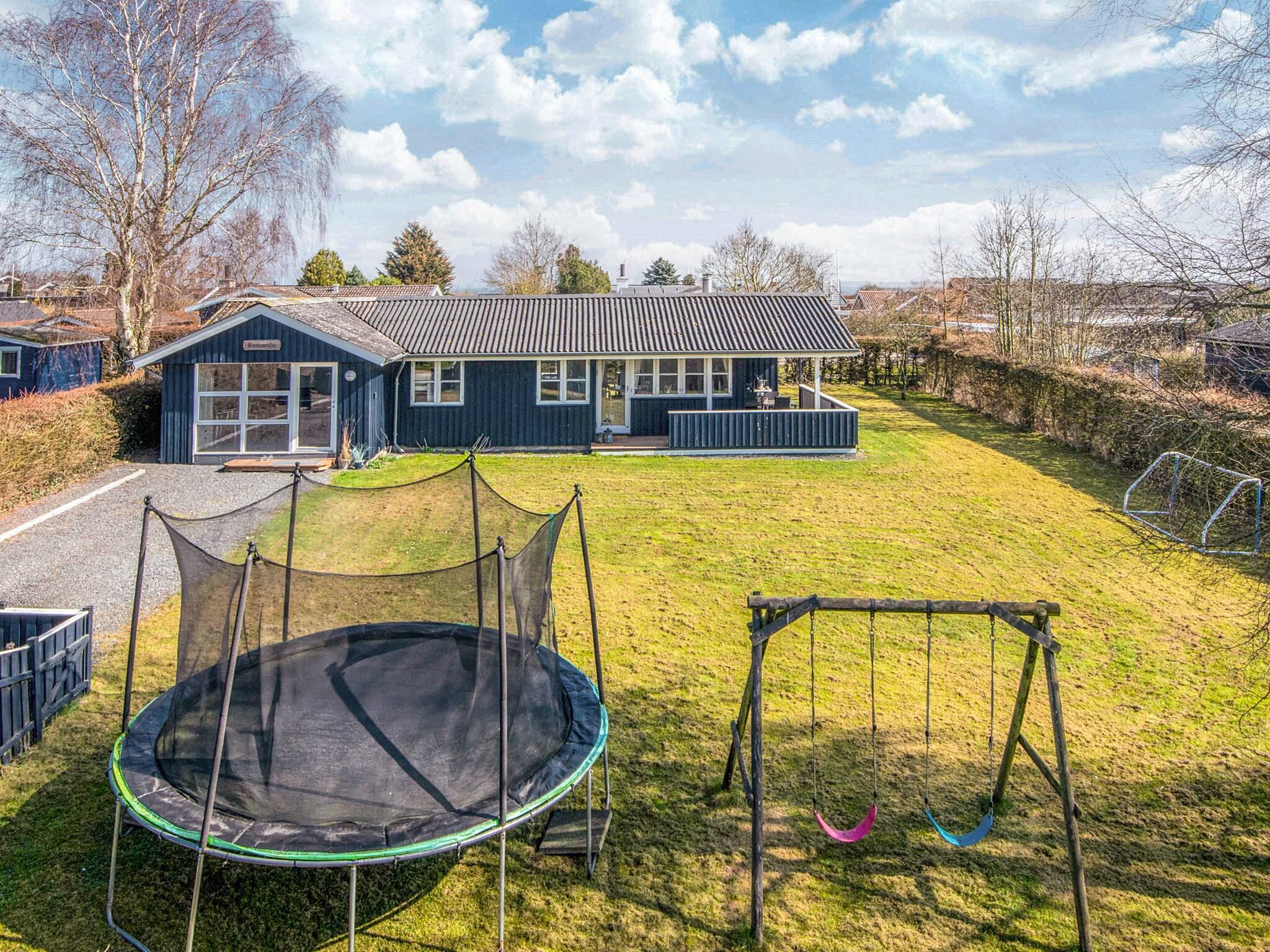 Udenfor giver flere terrasser dig mulighed for at nyde din morgenkaffe mod øst, mens den sydvestvendte terrasse er perfekt til afslappende eftermiddage og aftener. Den rummelige have er indrettet med loungesæt og andre havemøbler, hvilket skaber et behageligt uderum. Børn kan nyde den store græsplæne, som omfatter en trampolin (brug på eget ansvar), en gynge og et fodboldmål.