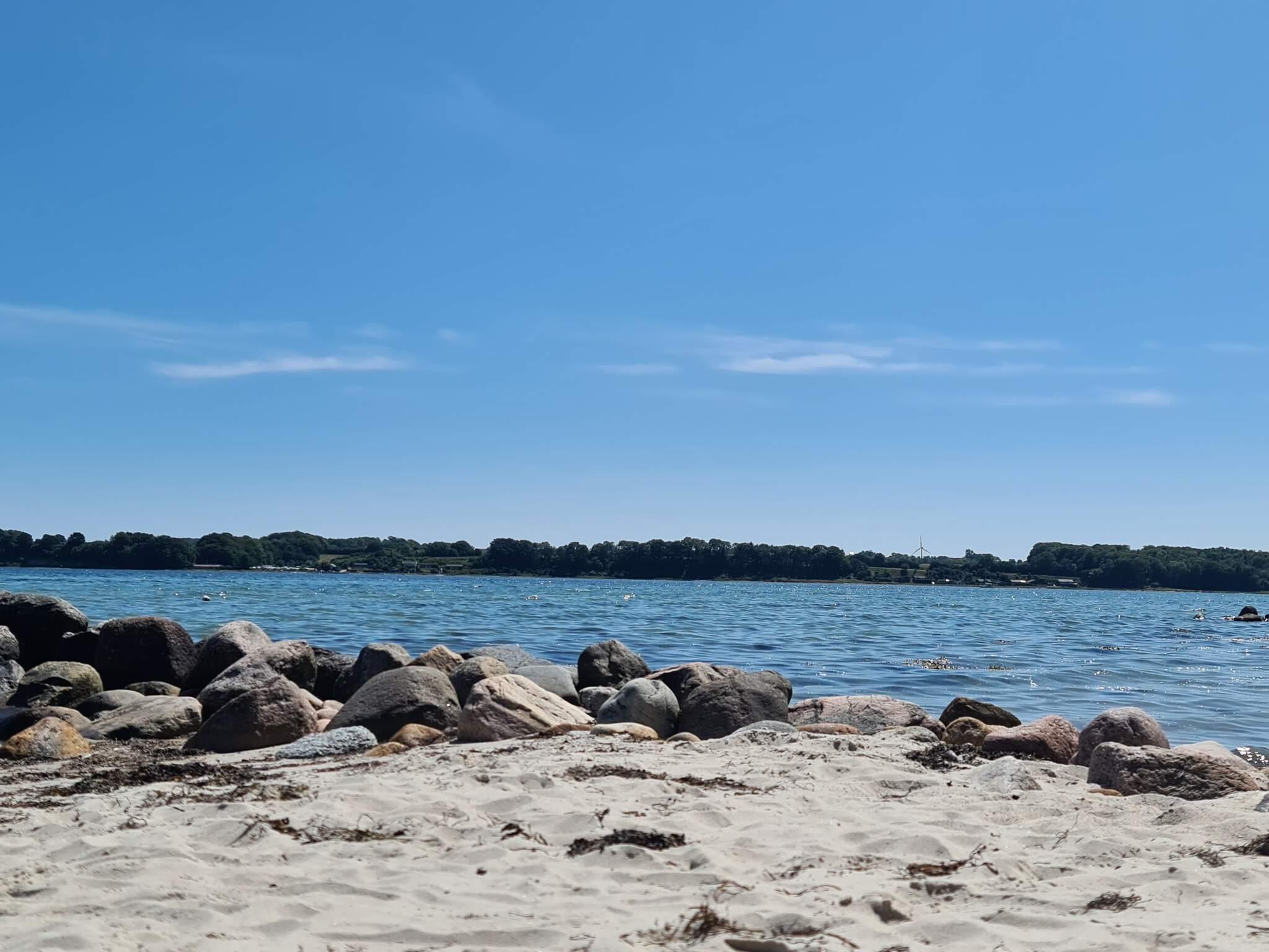 Lejligheden er beliggende i hjertet af Hejlsminde. Lige neden for døren, knap 50 meter fra bygningen er der fri adgang til en dejlig børnevenlig strand.