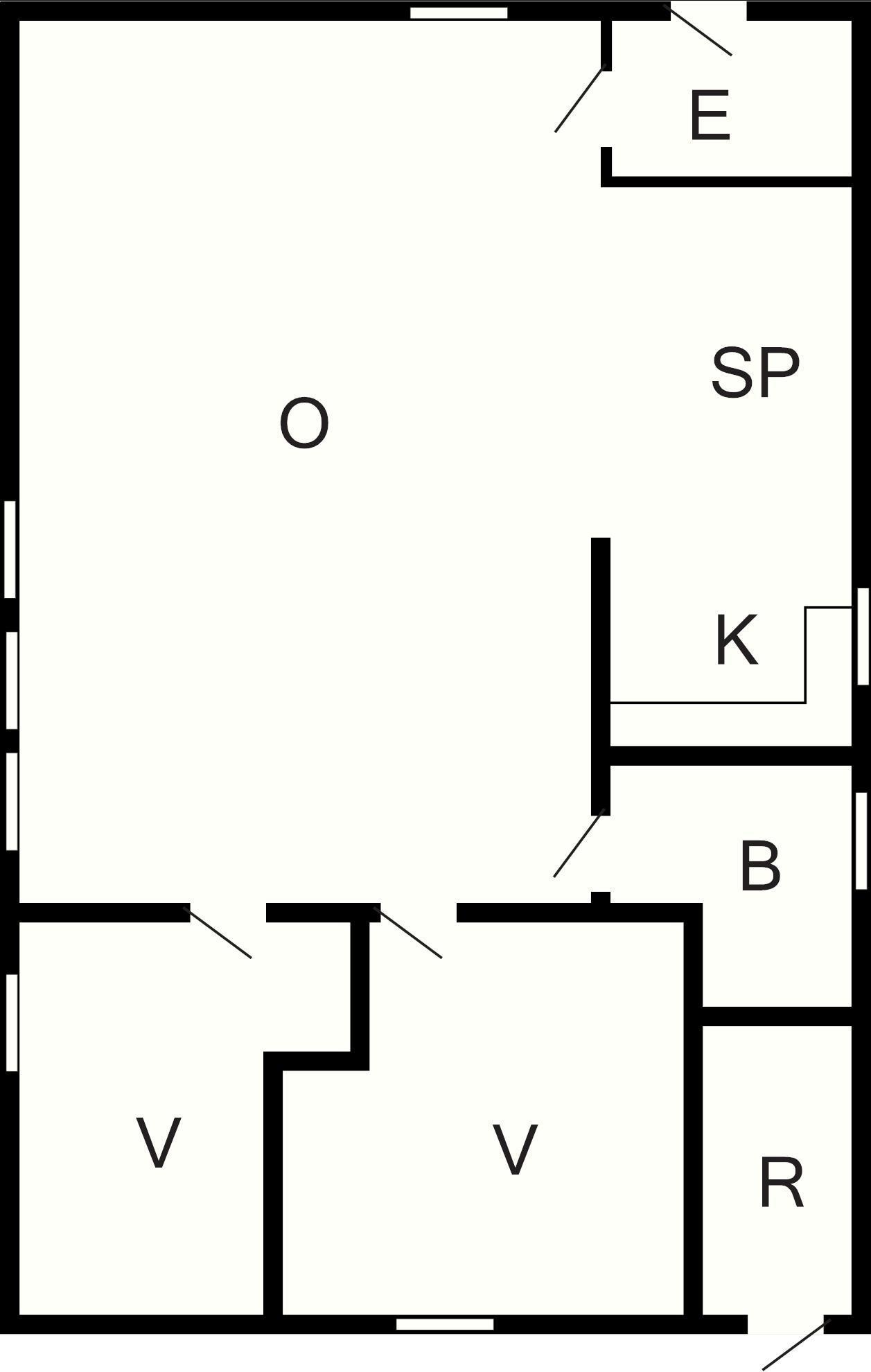 Praktisk indrettet sommerhus med græsplæne og syd- og vestvendte terrasser. Beliggende på rolig sidevej. Gyngestativ og sandkasse til børnene.