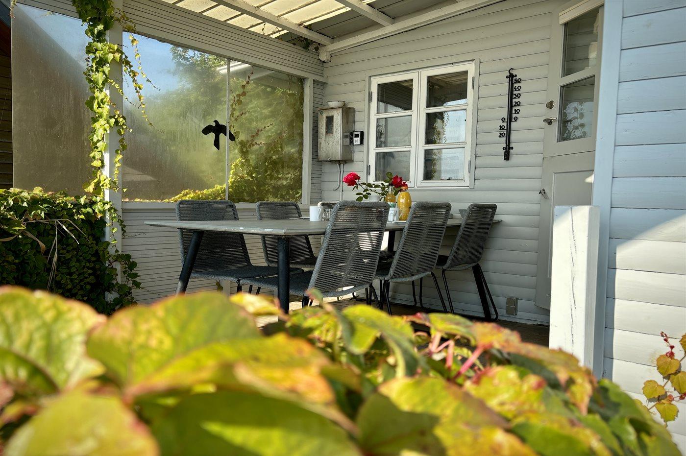 Udvendig er der god plads på de delvist overdækkede terrasser – her kan man tilbringe masser af timer i det fri. Parkering foregår på den nærliggende parkeringsplads, men der kan køres til huset for aflæsning af bagage m.m.