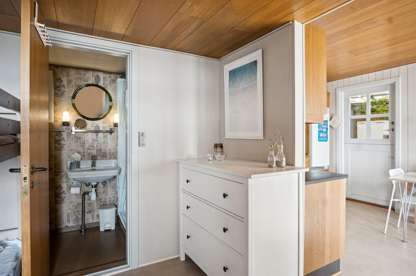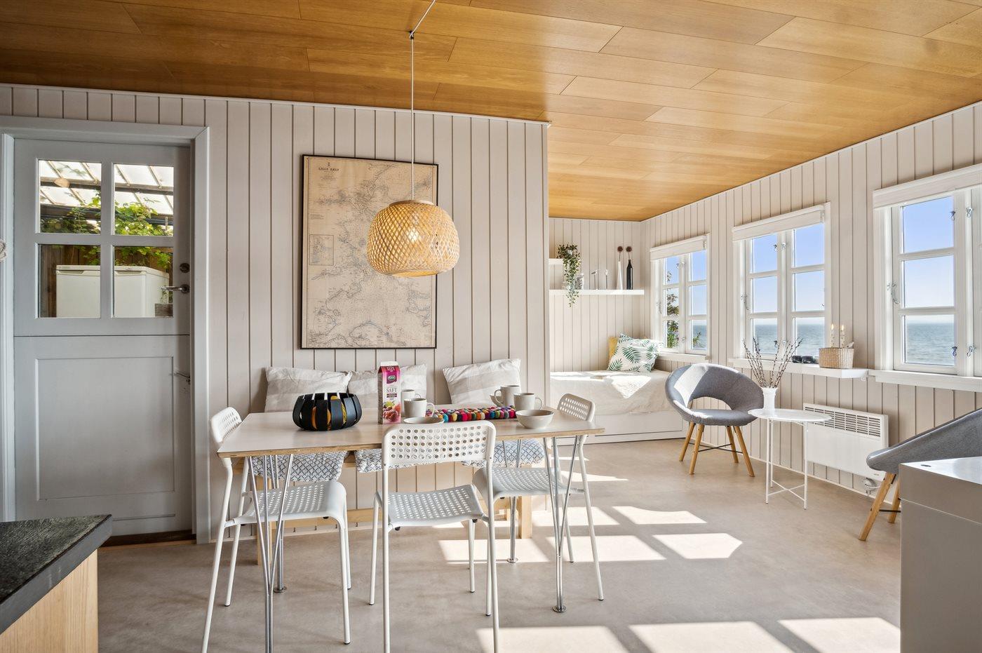 Huset er perfekt til ét par eller den lille familie, da der findes ét soverum og mulighed for opredning i stuen. Der findes et fint lille køkken med bl.a. opvaskemaskine samt et fint lille badeværelse.