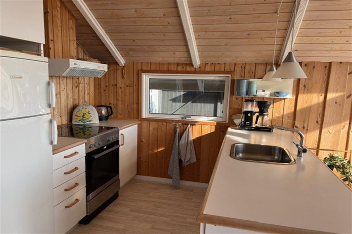 Køkkenet er udstyret med 1 køleskab. Der er 4 keramiske kogeplader, varmluftovn.