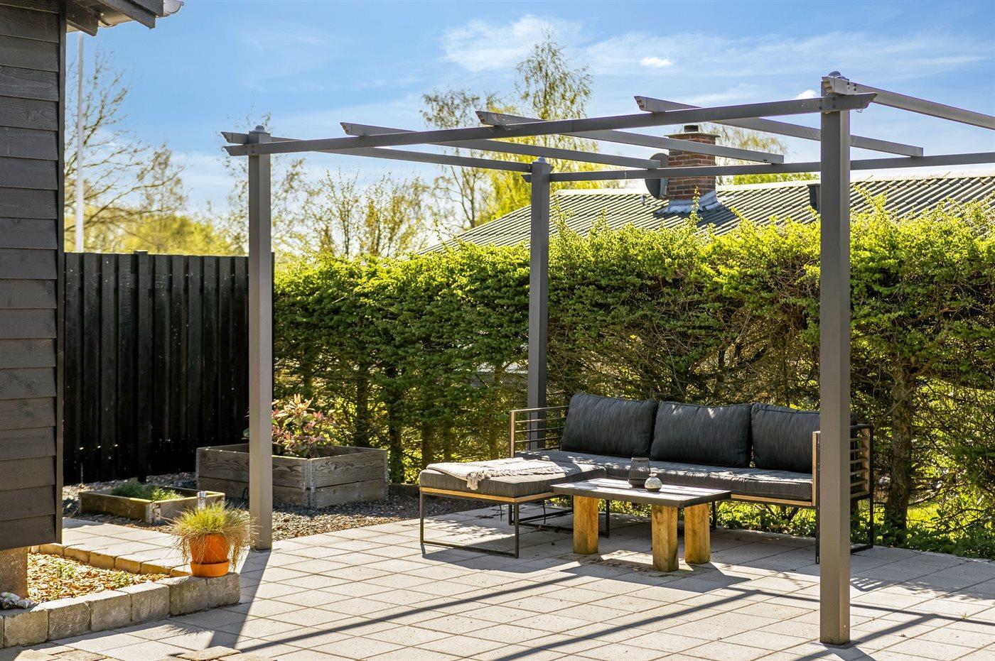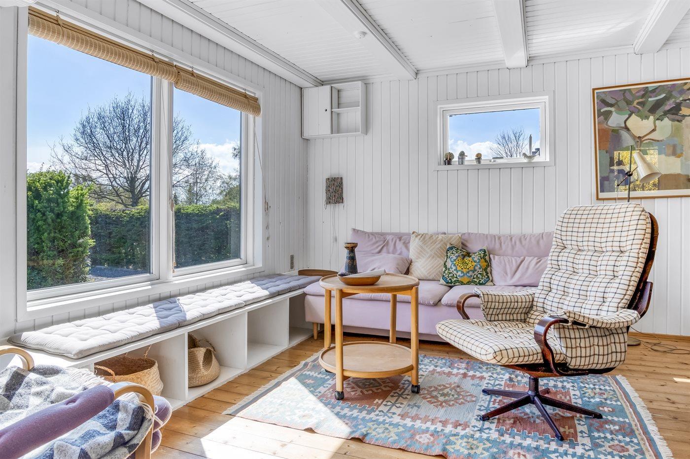 I forbindelse med det indbydende køkken-alrum ligger den dejlige udestue, der forlænger sommeren og giver mulighed for at nyde haven i al slags vejr. Udenfor finder I flere solrige terrasser, hvor I kan nyde dagen fra morgen til aften. Bag huset er der skabt et charmerende gårdhavemiljø med loungesæt, der indbyder til afslapning i rolige omgivelser - en perfekt forlængelse af anneksets hyggelige atmosfære.