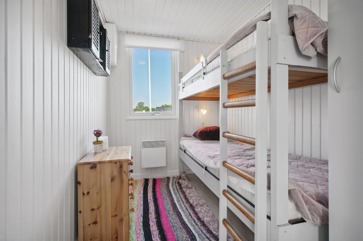 Der er i alt 3 soveværelser. Sovepladserne fordeler sig på: 4 sovepladser i dobbeltsenge. 2 sovepladser i køjeseng. Derudover er der 1 stk. barneseng.