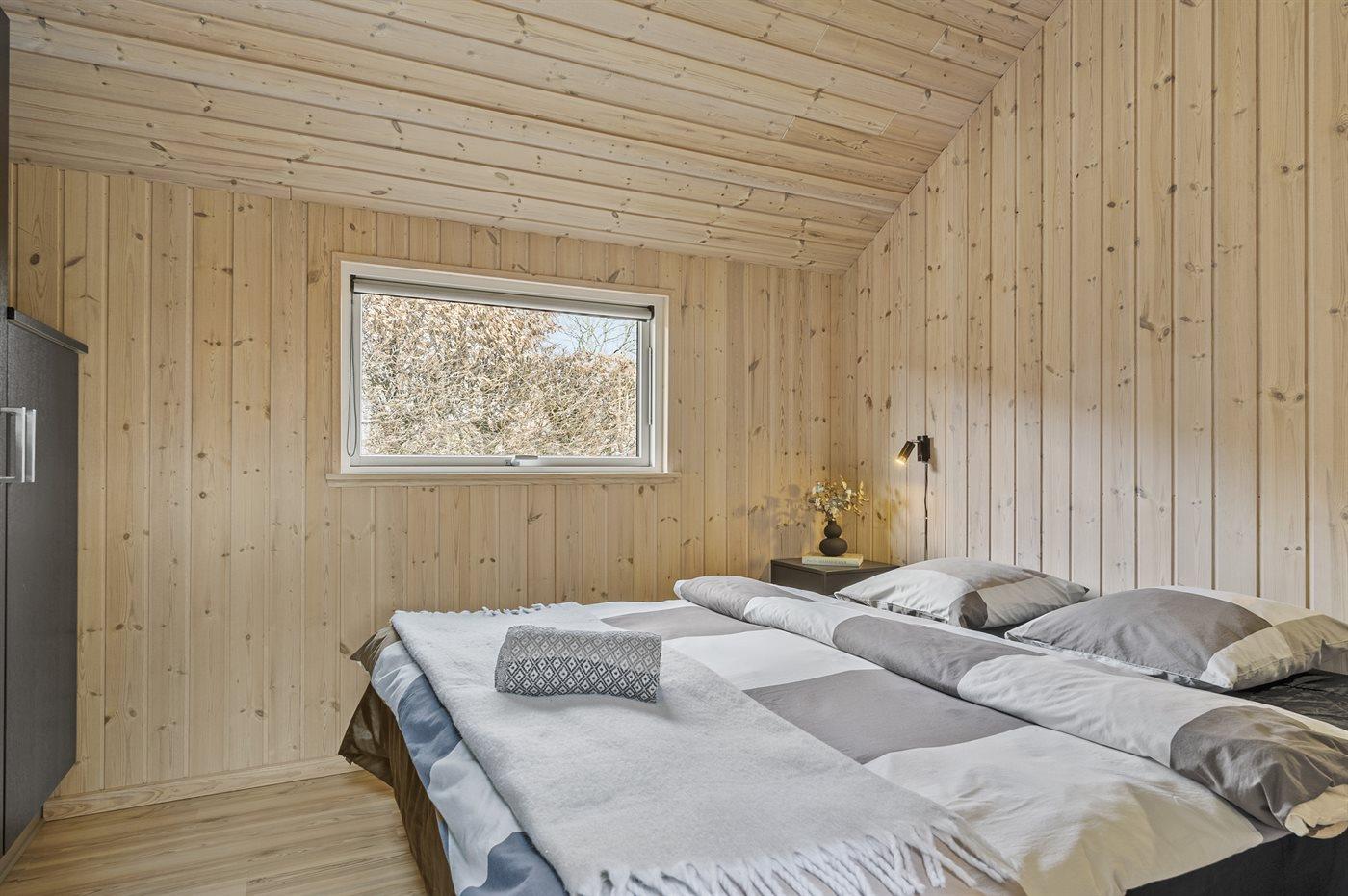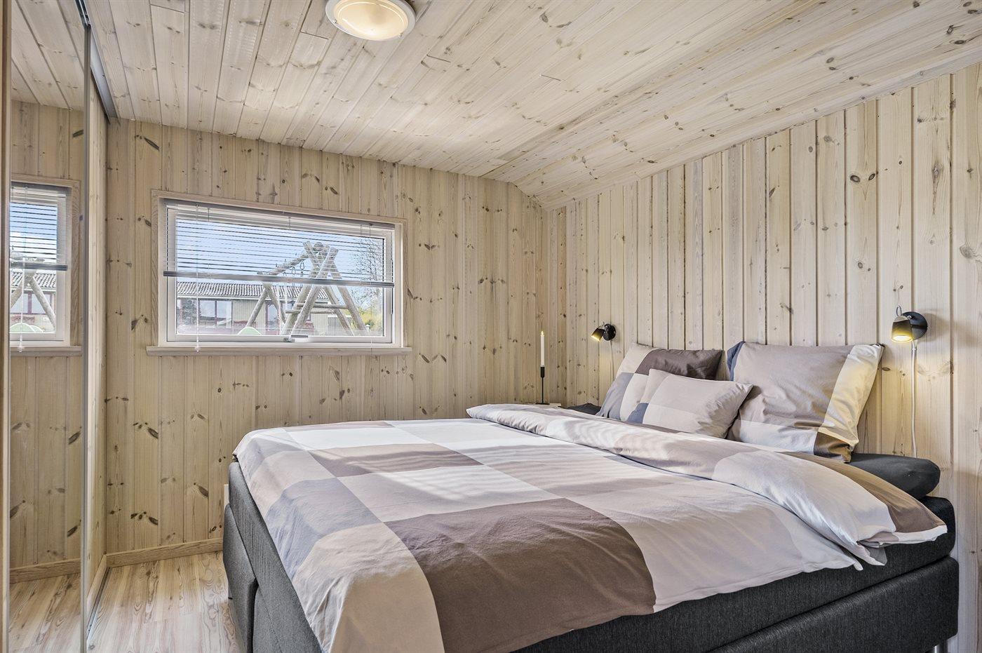 Sommerhuset egner sig til flere familier, idet der er 10 sovepladser, fordelt på 3 store soveværelser med dobbeltsenge og god skabsplads. 2 sovepladser i alkove og 2 box madrasser på husets hems, som tilgås via stige. Derudover er der 1 stk. barneseng.