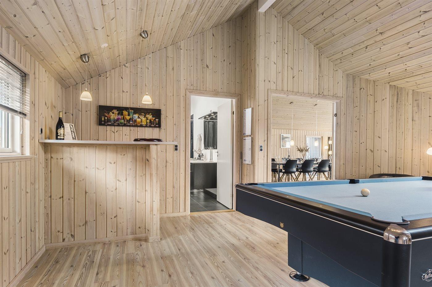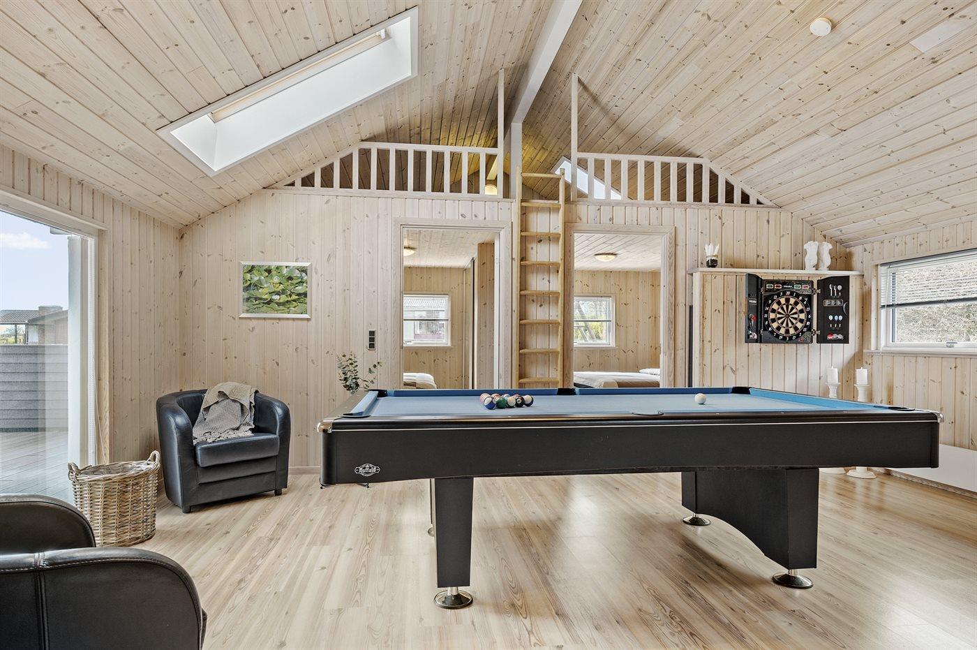 I aktivitetsrummet er der følgende udstyr: Billard. Poolbord. Bordtennis. Dart. Herudover lille bar med køleskab.