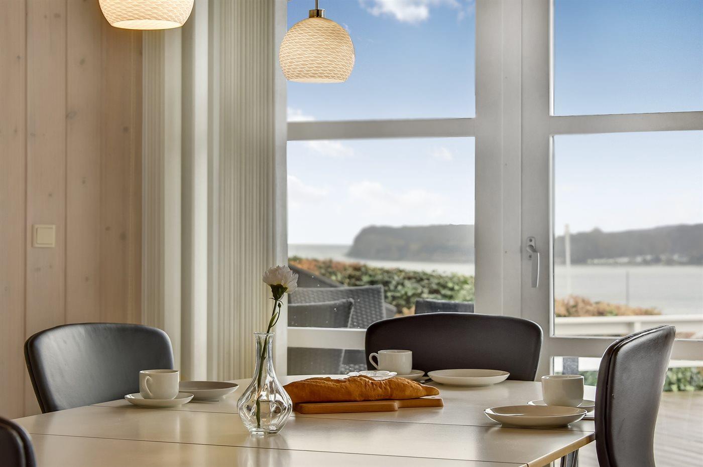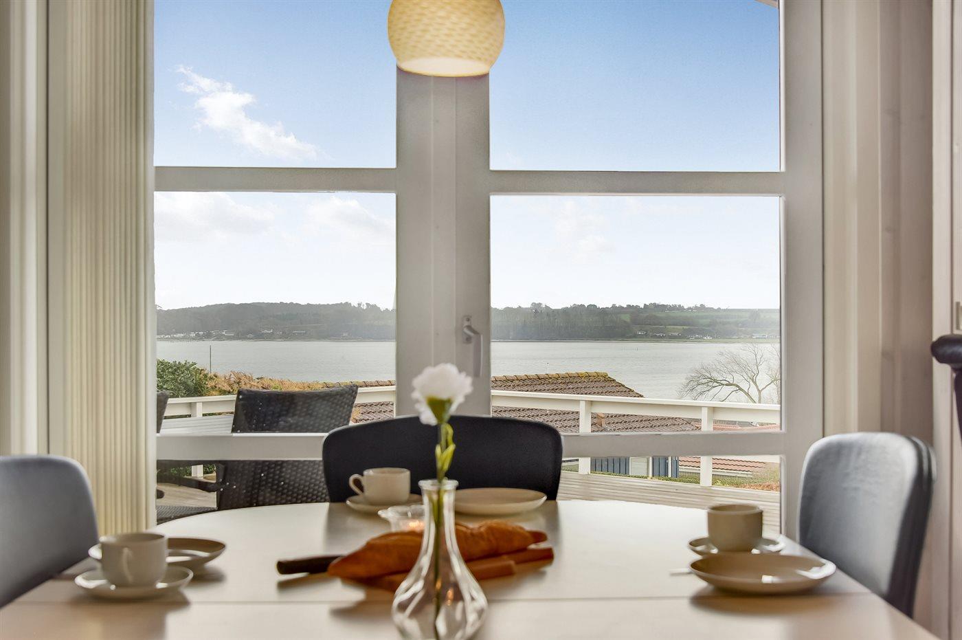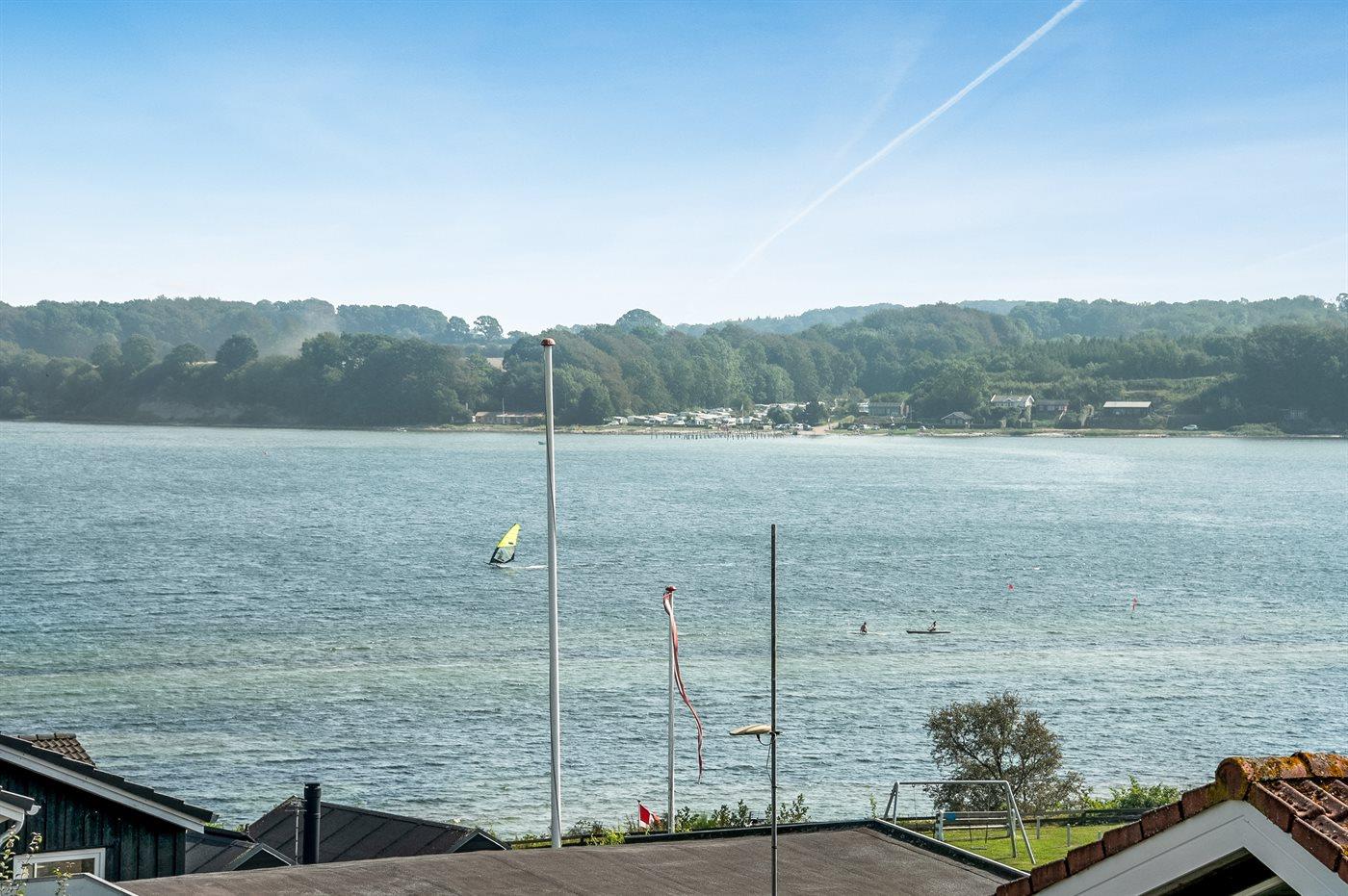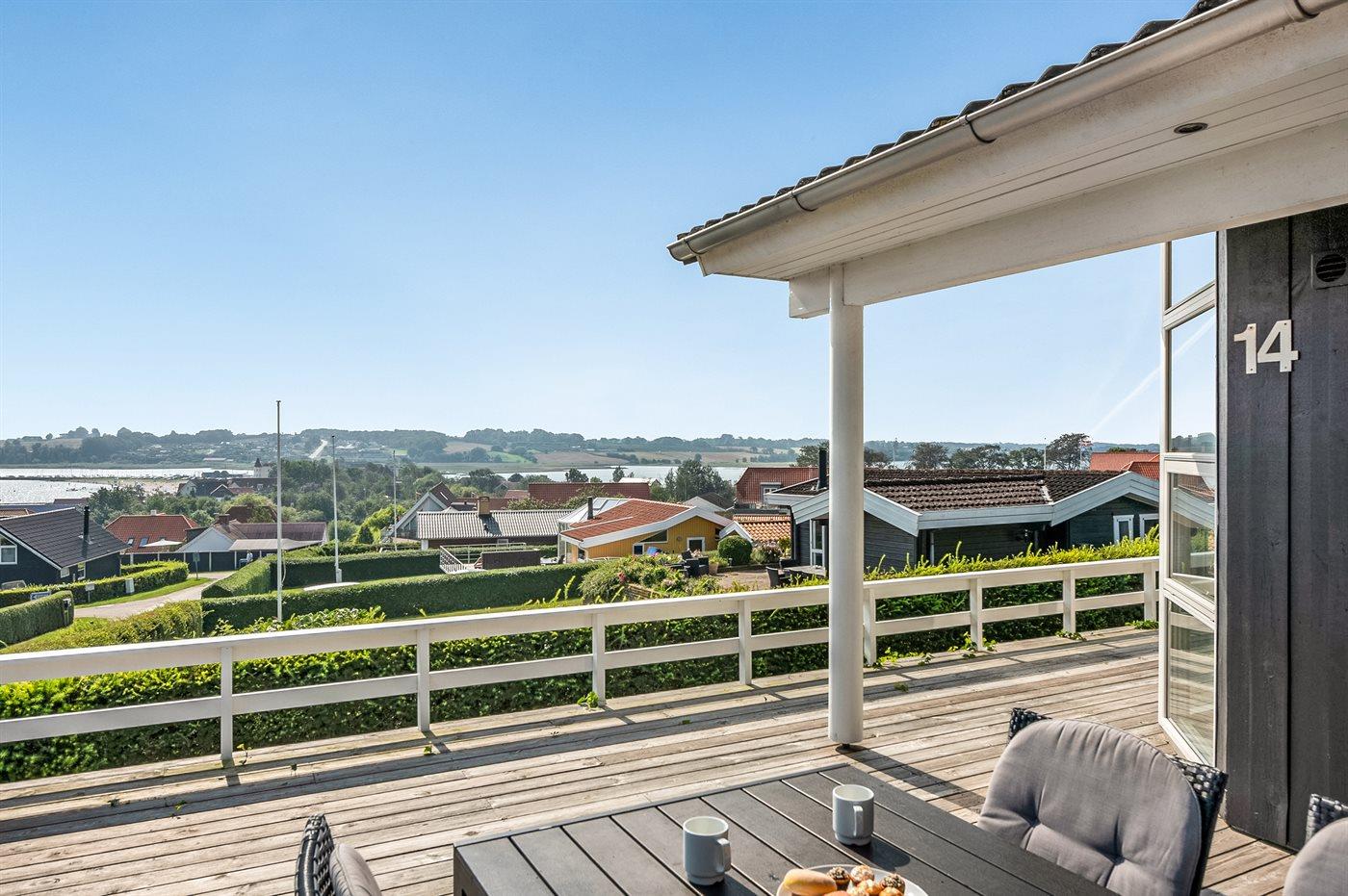 Arkitekttegnet sommerhus i Hejlsminde med panoramaudsigt over Lillebælt og lystbådehavnen.