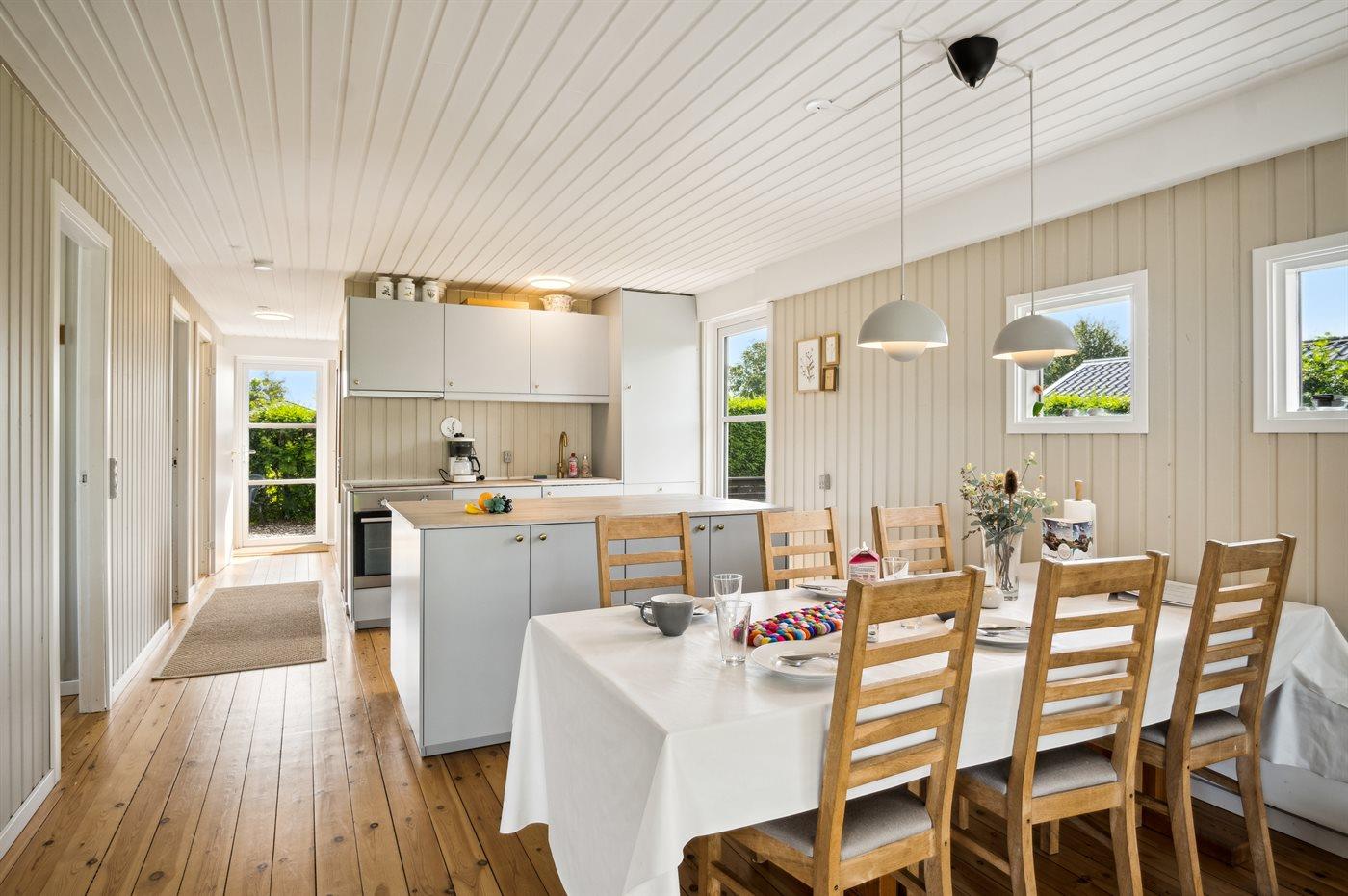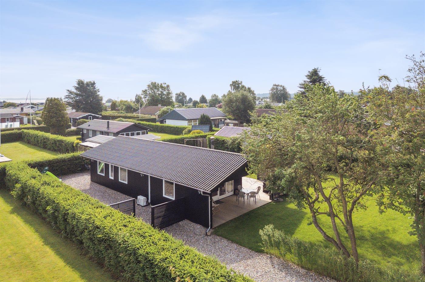 Charmerende sommerhus i Grønninghoved med åben plan, terrasse og tæt på stranden.